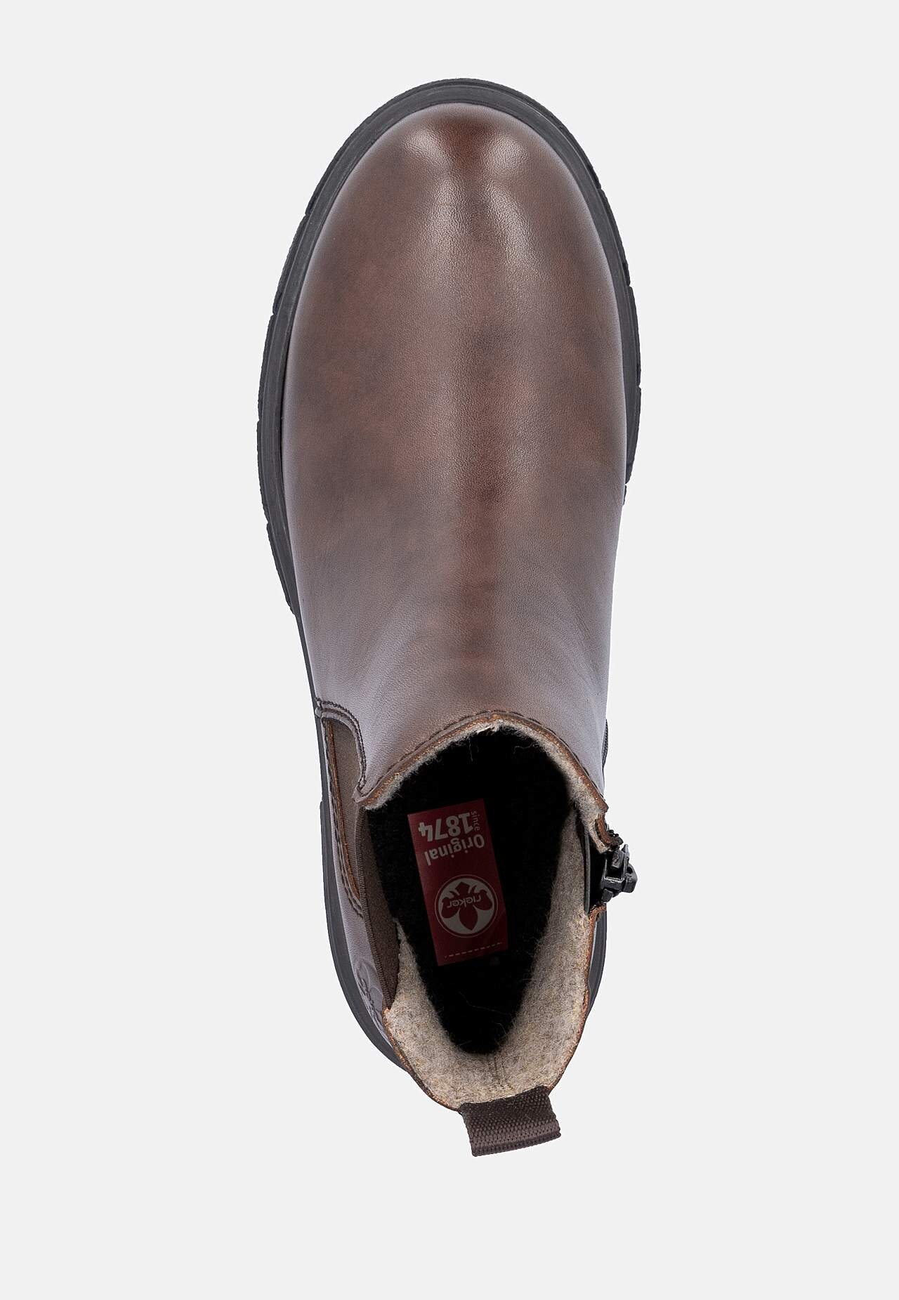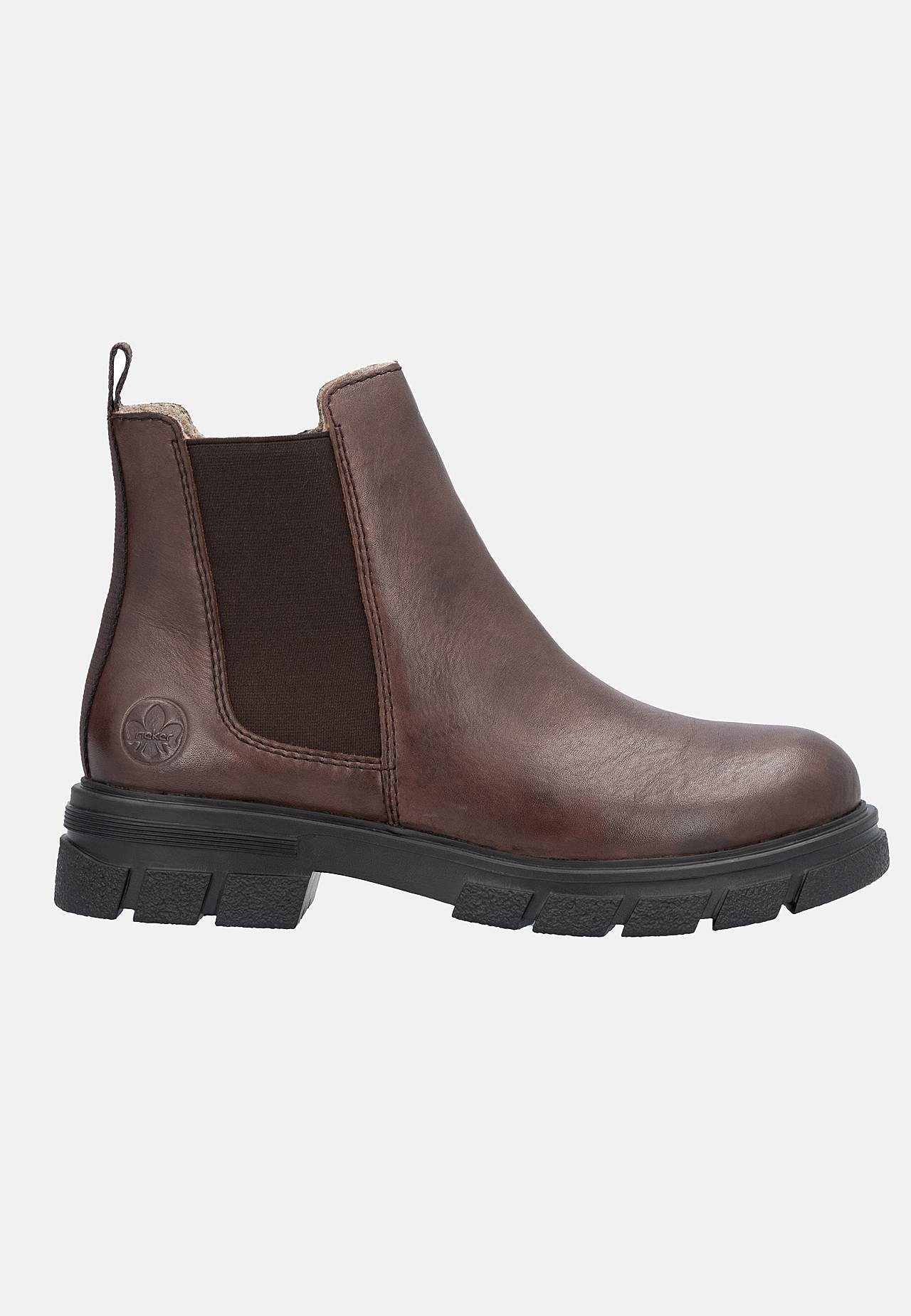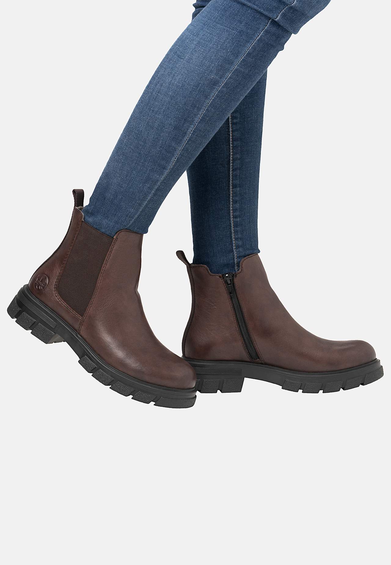Zems Čelsijas stila zābaku modelis. Silta iekšējā odere. Rāvējslēdzēja aizdare pēdas iekšpusē. Pēdas ārpusē elastīga gumija. Mugurpusē cilpiņa vieglākai apavu novilkšanai/uzvilkšanai. Mugurpusē detaļa ar reljefu. Izturīga zole labākai saķerei. Rieker ''Antistress'' skatiet turpinājumā: Ādas virspuse. Tekstila iekšpuse. Tek... Lasīt vairāk