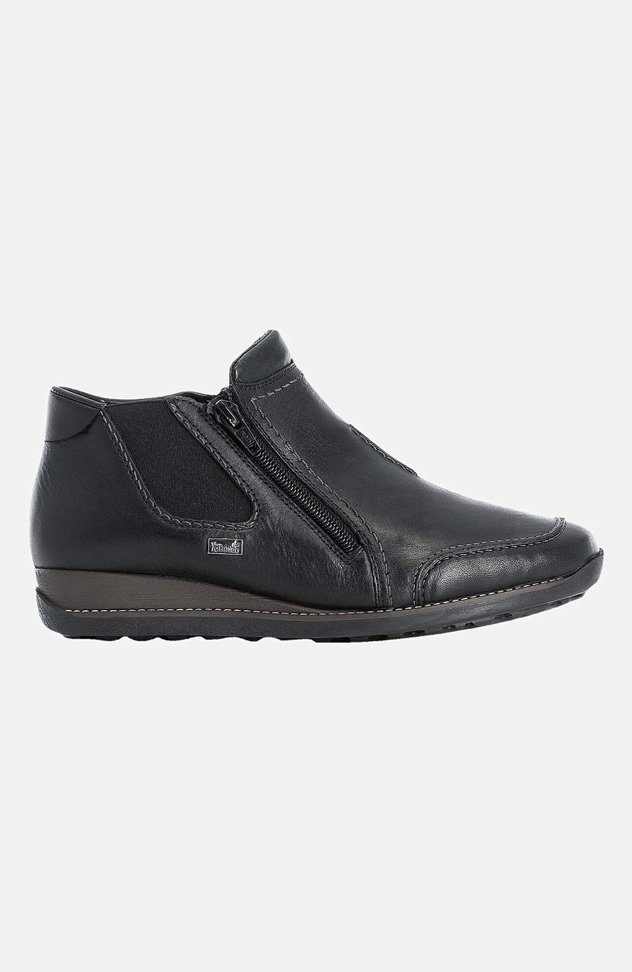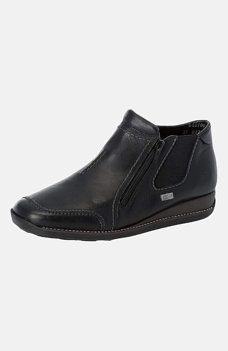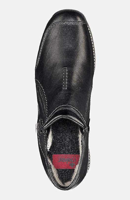 Ūdensizturīgi ziemas apavi. Silta odere. Rāvējslēdzējs iekšmalā un ārmalā vieglai uzvilkšanai/novilkšanai. Gumijas zole ar labu saķeri. Nošuves vienādā tonī ar apaviem. Logo ārmalā. ''Rieker TEX'': skatiet turpinājumā. Virspuse no ādas. Iekšpuse no tekstila. Tekstila iekšzolīte. Sintētiska materiāla zole. ''RiekerTEX''