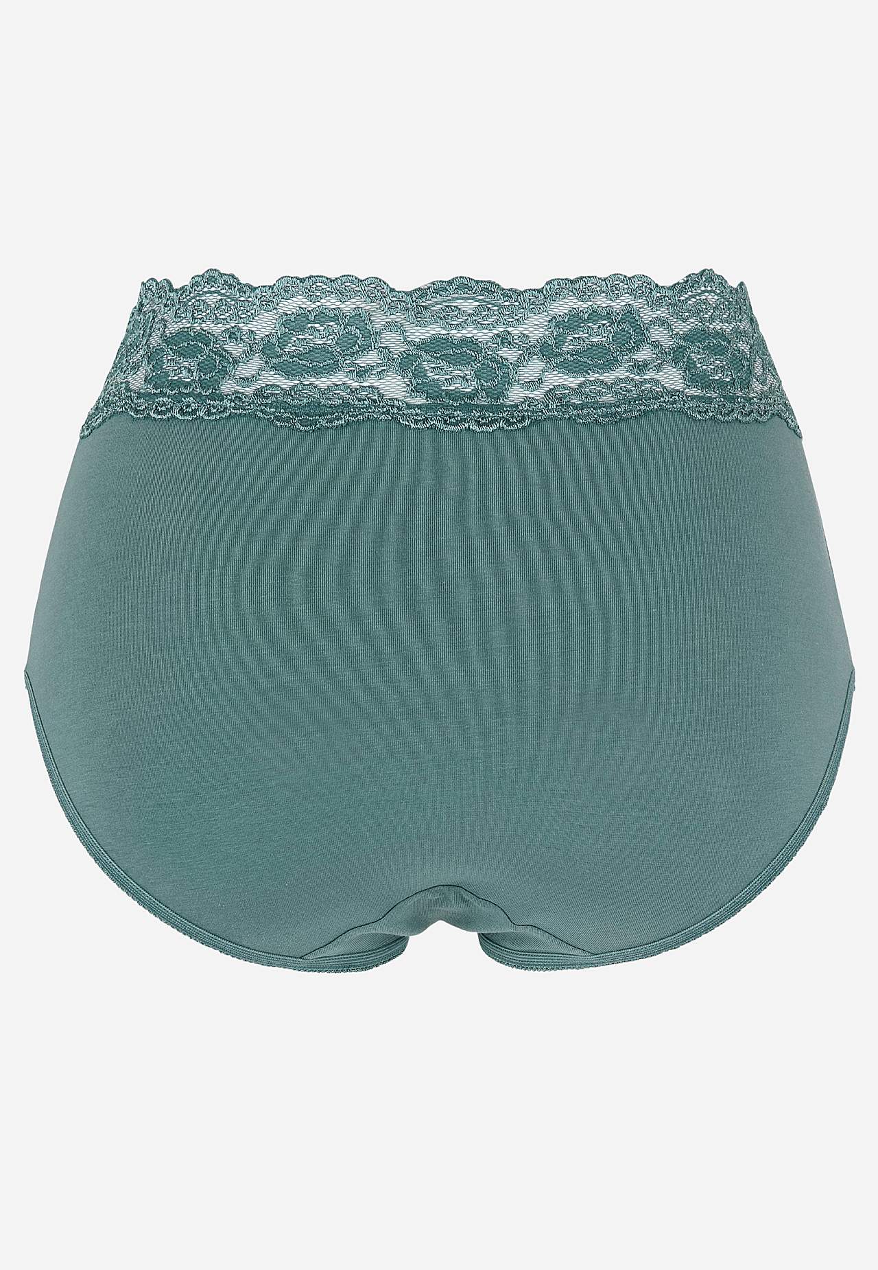 Midi biksītes no mīkstas organiskās kokvilnas ar platu, ērtu mežģīni jostasvietā. Ideālas ikdienas biksītes. 4 gab. iepakojumā. Šaura gumija staru atvērumos. Kokvilnas odere staklē.