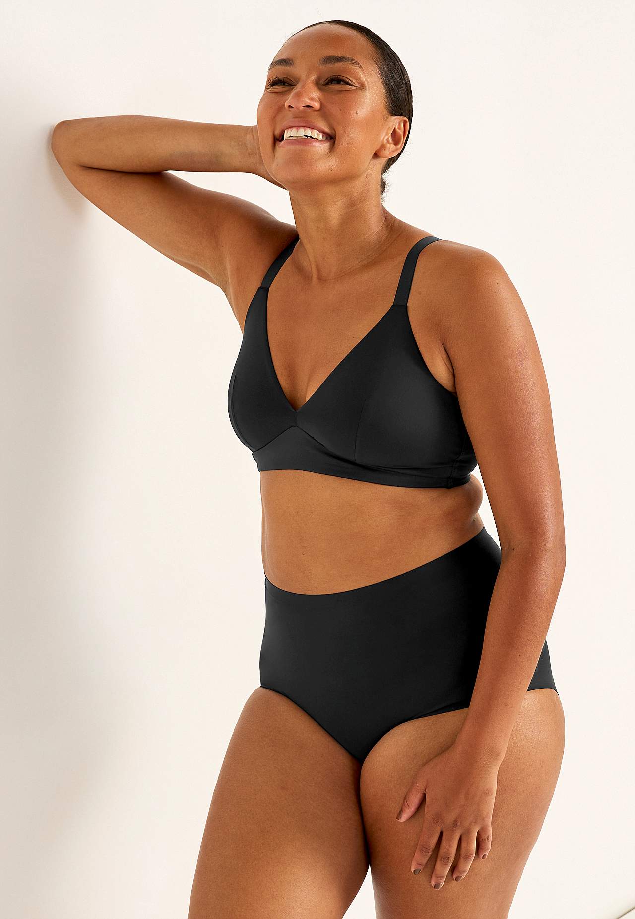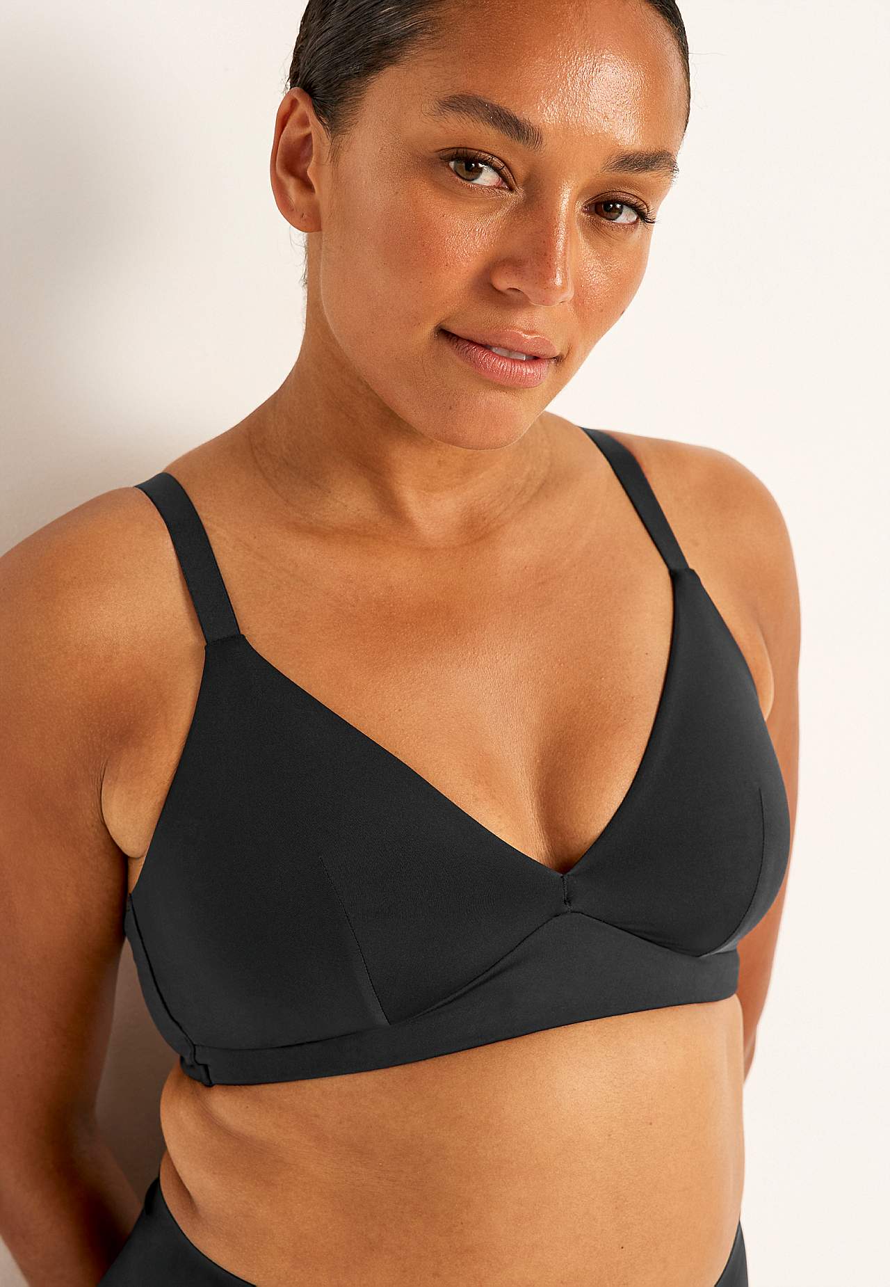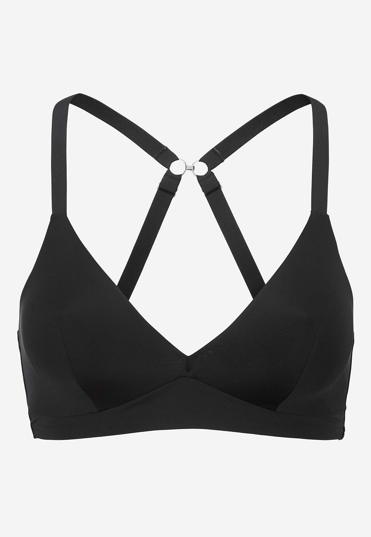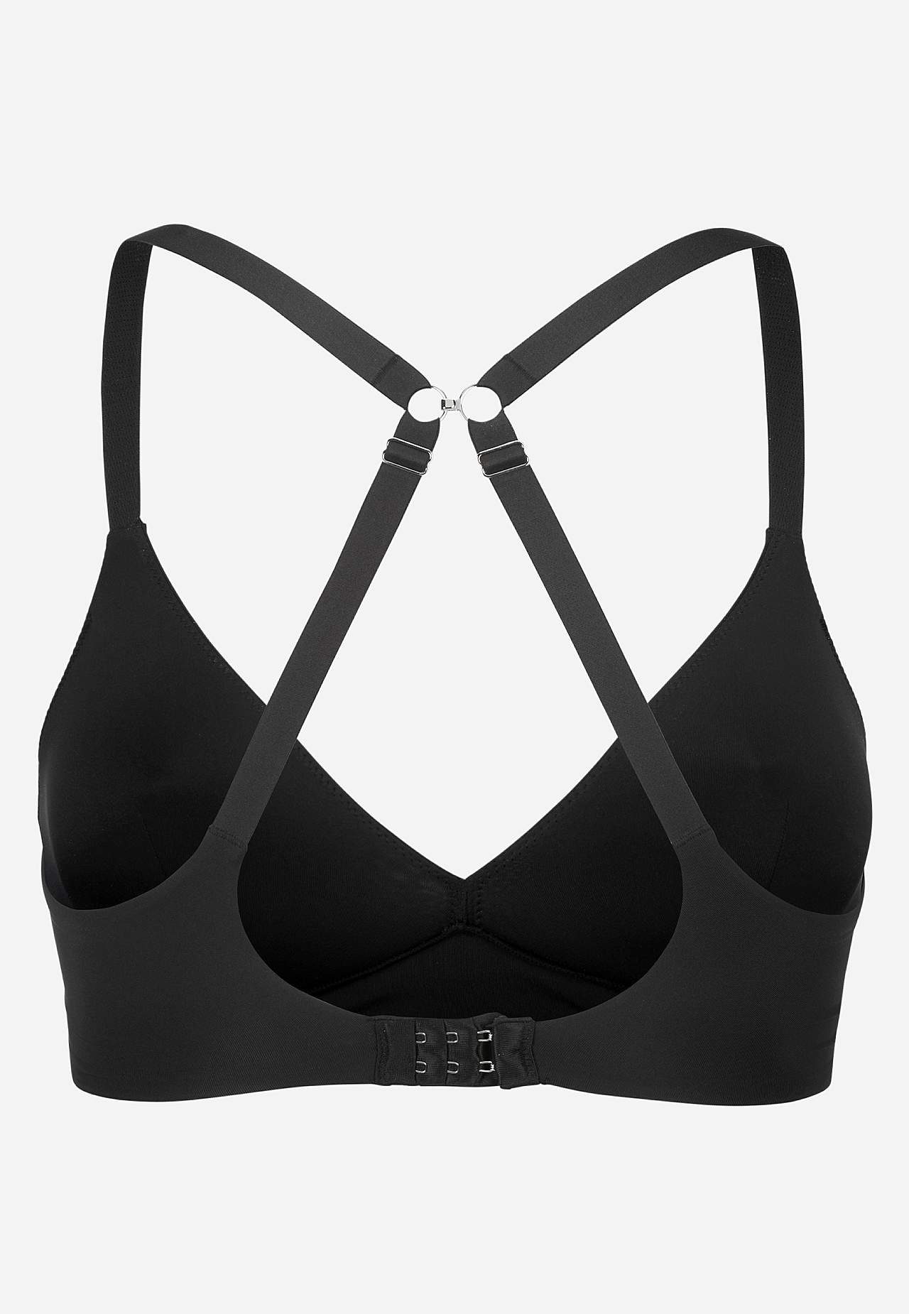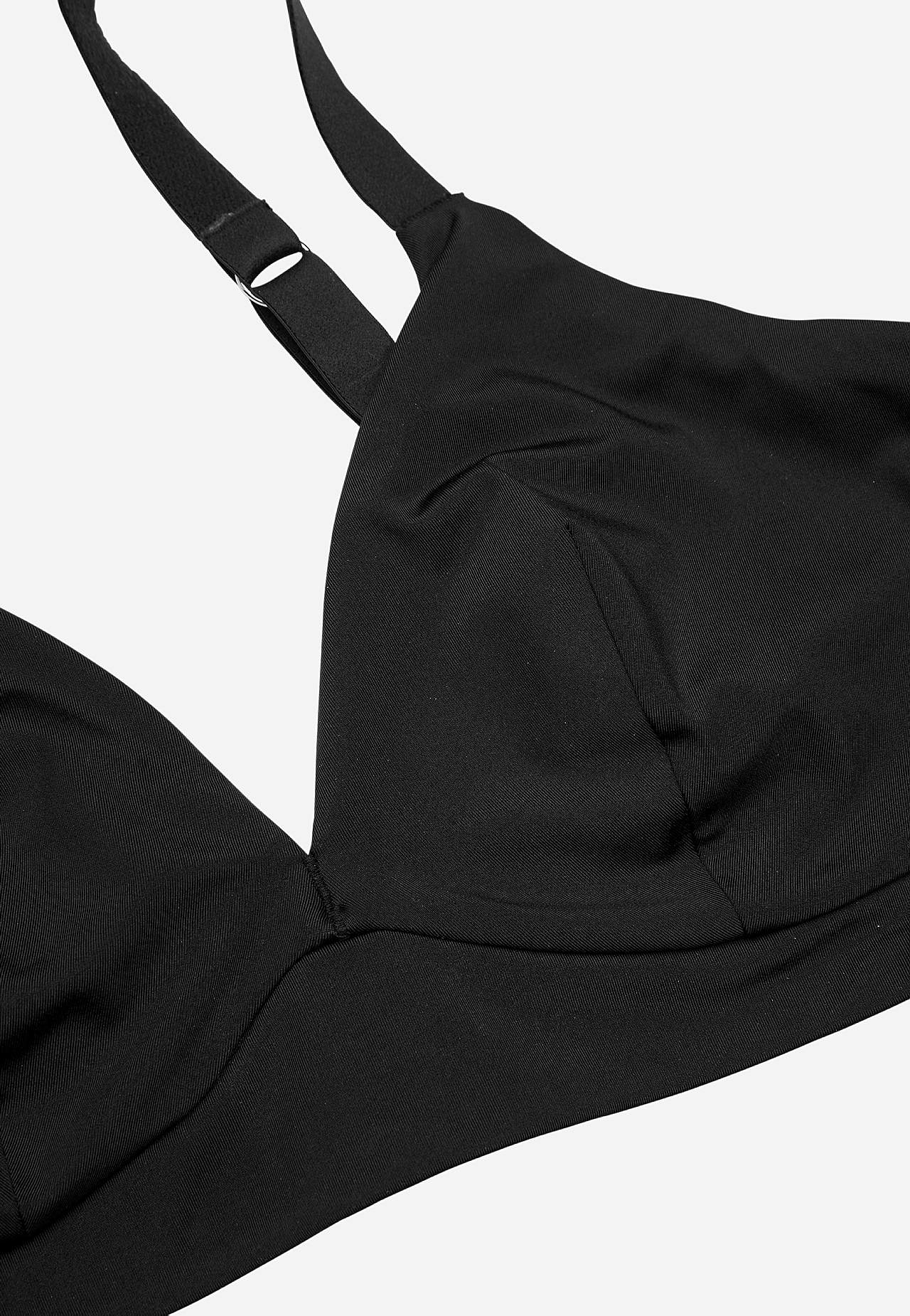Bez stīpiņām. Nepolsterēts. Mīksts un patīkams elastīgas trikotāžas krūšturis. Mugurpusē divrindu cilpiņu un āķīšu aizdare, trīsrindu aizdare lielākiem izmēriem.