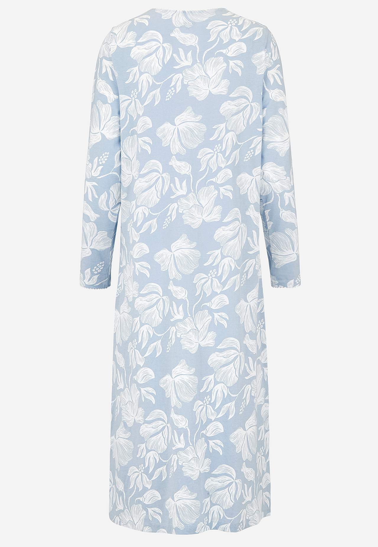Apaļš kakla izgriezums ar skaistu mežģīņu apmalīti. Garas piedurknes ar mežģīņu apmalīti galā. Taisna apakšmala. Garums no pleciem visiem izmēriem aptuveni 123 cm.