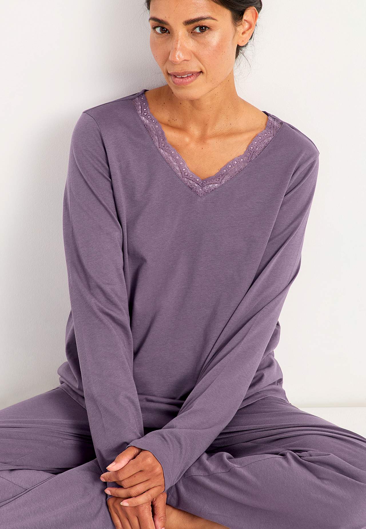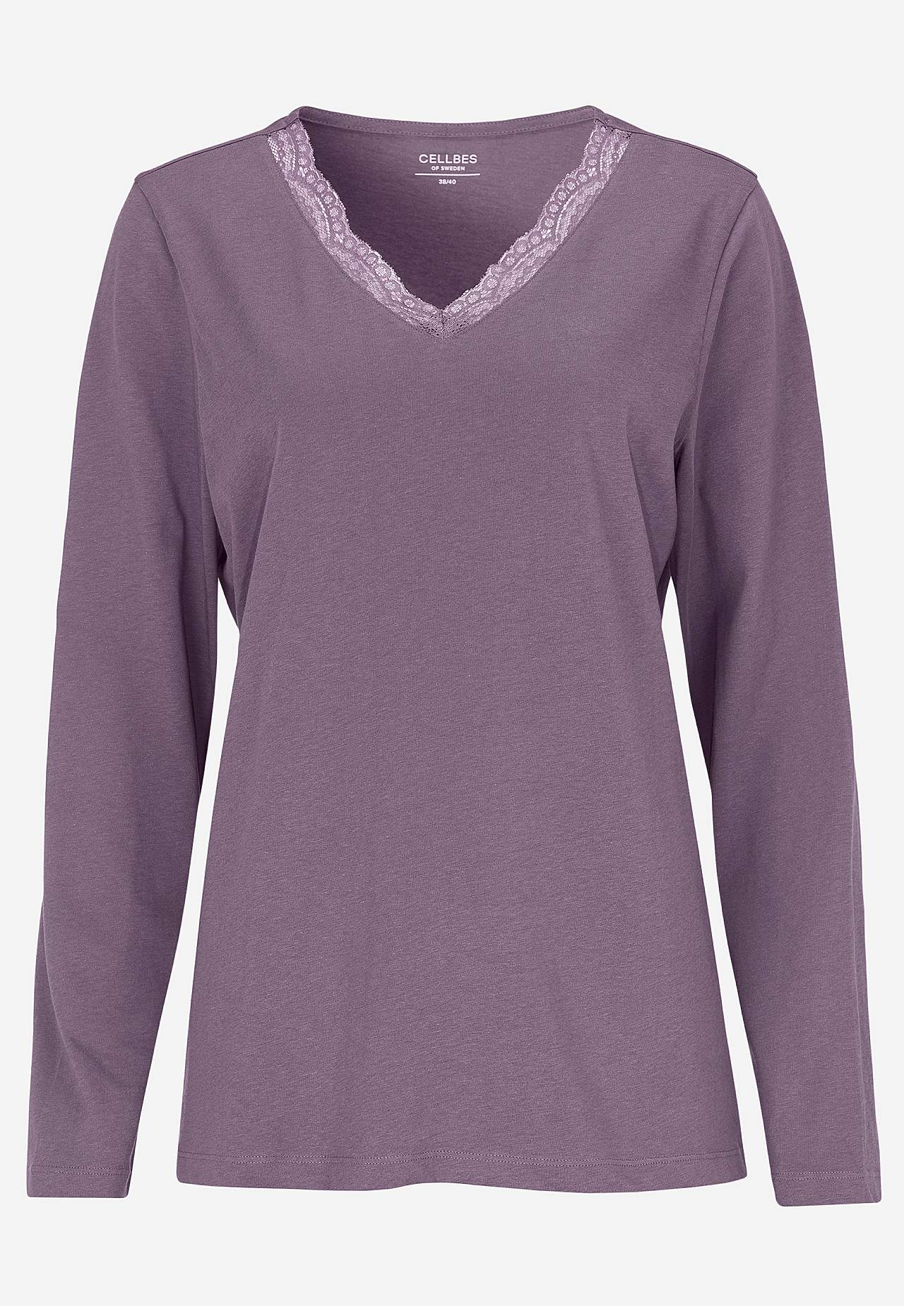 Standarta piegriezums. Augšdaļa: Vienkrāsains pidžamas tops ar V veida kakla izgriezumu un mīkstu mežģīņu maliņu. Garums no pleca atbilstīgi izmēram aptuveni 67-75 cm.