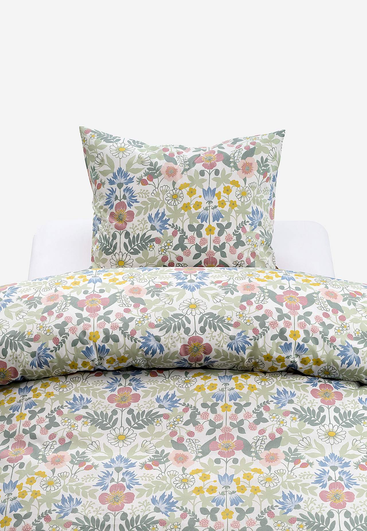 Mīksts patīkamas kokvilnas gultasveļas komplekts. Gultasveļa ar sīku ziedu raksta apdruku uz vienkrāsaina pamata. Vienāds raksts priekšpusē un mugurpusē. Divas daļas vienvietīgai gultai. Segas pārvalka izmērs 150x210 cm, spilvendrānas izmērs 50x60 cm. Pārvalks ar atvērumiem augšmalā segas satveršanai. Spilvendrāna ar aplokš... Lasīt vairāk