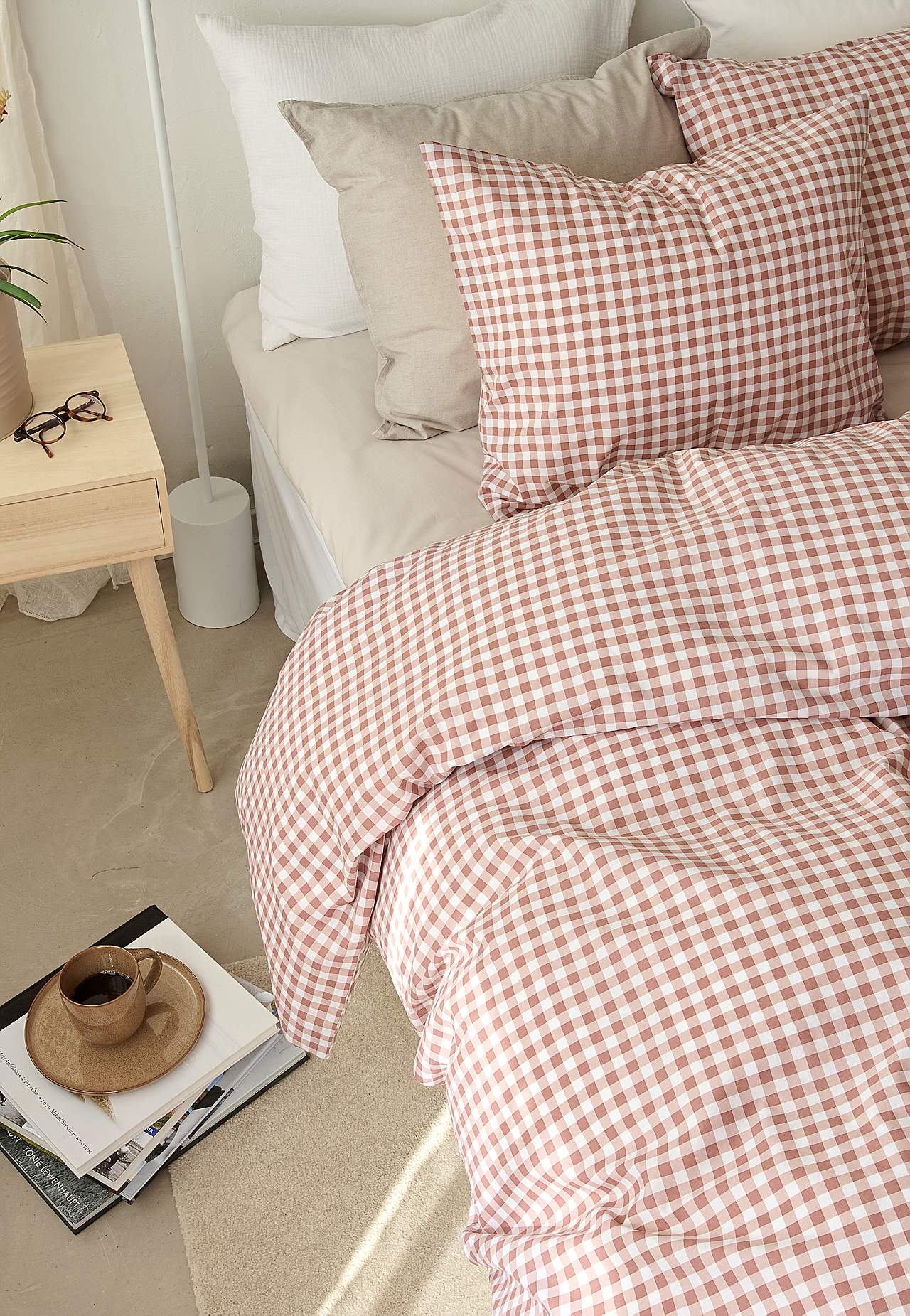 Mīkstas un patīkamas kokvilnas gultasveļas komplekts. Sīku rūtiņu apdruka. Vienāds raksts priekšpusē un mugurpusē. Divi priekšmeti vienvietīgai gultai. Segas pārvalks 150x210 cm un spilvendrāna 50x60 cm. Pārvalks ar atvērumiem segas satveršanai augšpuses stūros. Spilvendrāna ar aplokšņveida atvērumu. Pavedienu blīvums: 144... Lasīt vairāk