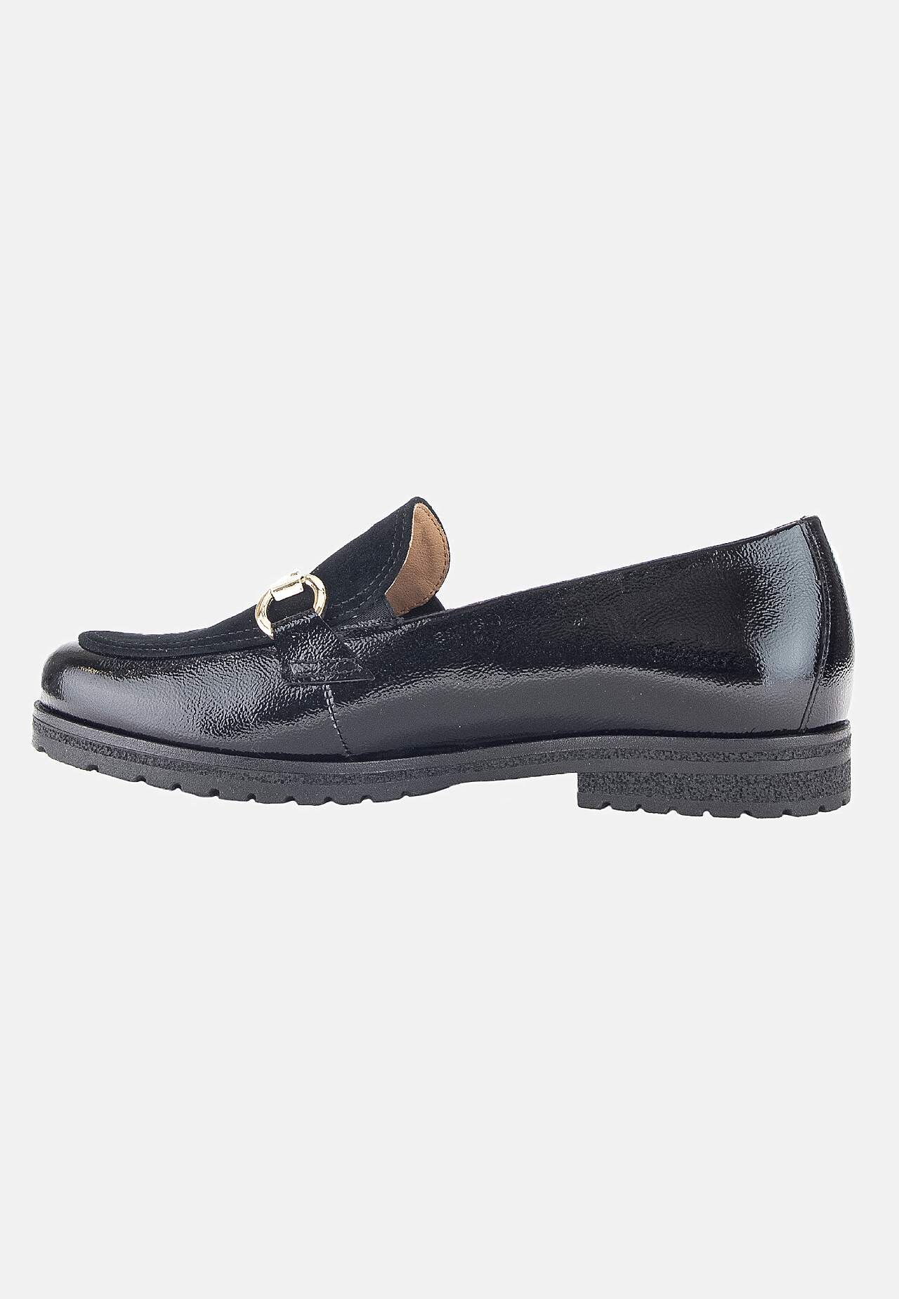 Lakādas un zamšādas slēgtās kurpes. Zelta krāsas metāla sprādze priekšpusē. Apaļš purngals. Sānos gumijas ielaidums. Mīksta, ērta iekšzolīte. Funkcionāla zole labākai saķerei. Gabor "Comfort":. Virspuse no ādas. Ādas un tekstila iekšpuse. Ādas iekšzolīte. Sintētiska materiāla zole. “Comfort” – īpašs komforts G-H platuma pēd... Lasīt vairāk