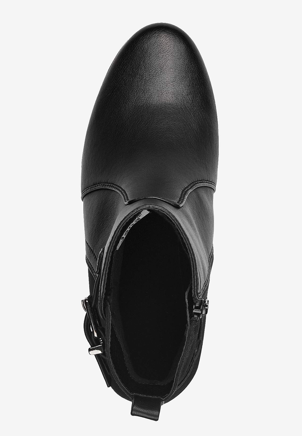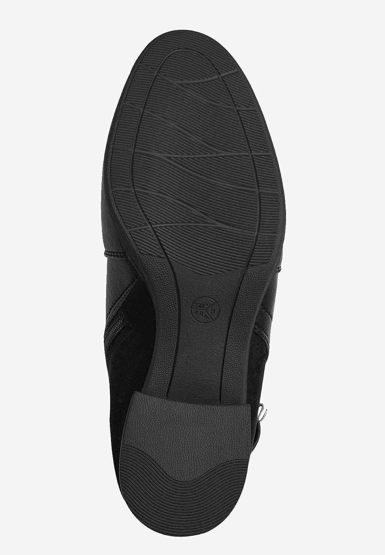 Puszābaki ar siksniņu ap potīti un metāla sprādzi. Mugurpuse no zamšādai līdzīga materiāla. Klasisks blokpapēdis. Iekšmalā rāvējslēdzējs. Dekoratīvas nošuves. Cilpiņa mugurpusē. Sintētiska materiāla virspuse. Iekšpuse no tekstila. Iekšzolīte no tekstila. Sintētiska materiāla zole.