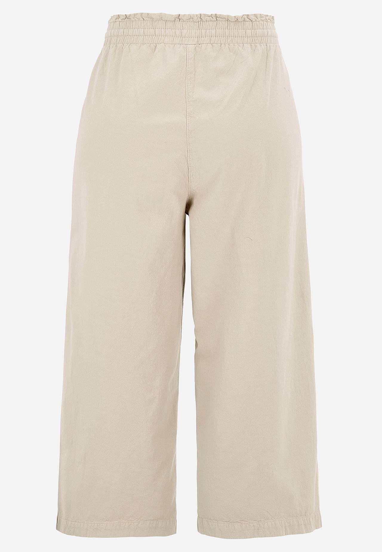 Brīvi bikšusvārki. Mazgāts, padevīgs kokvilnas audums ar dabisku tekstūru. Brīvs piegriezums. Ērta, elastīga jostasvieta ar aukliņu. Slīpas kabatas priekšpusē. Platas, taisnas staras. Staras iekšējās vīles garums aptuveni 57 cm visiem izmēriem. Stakles augstums atbilstīgi izmēram aptuveni 27-37 cm.