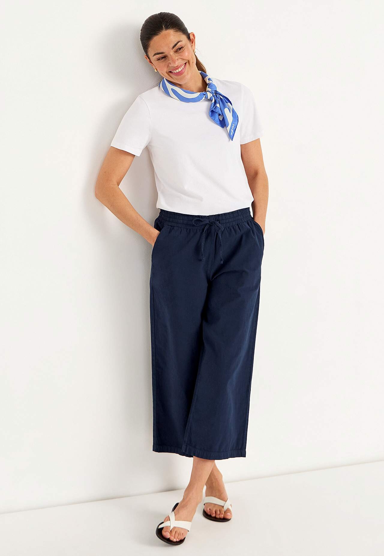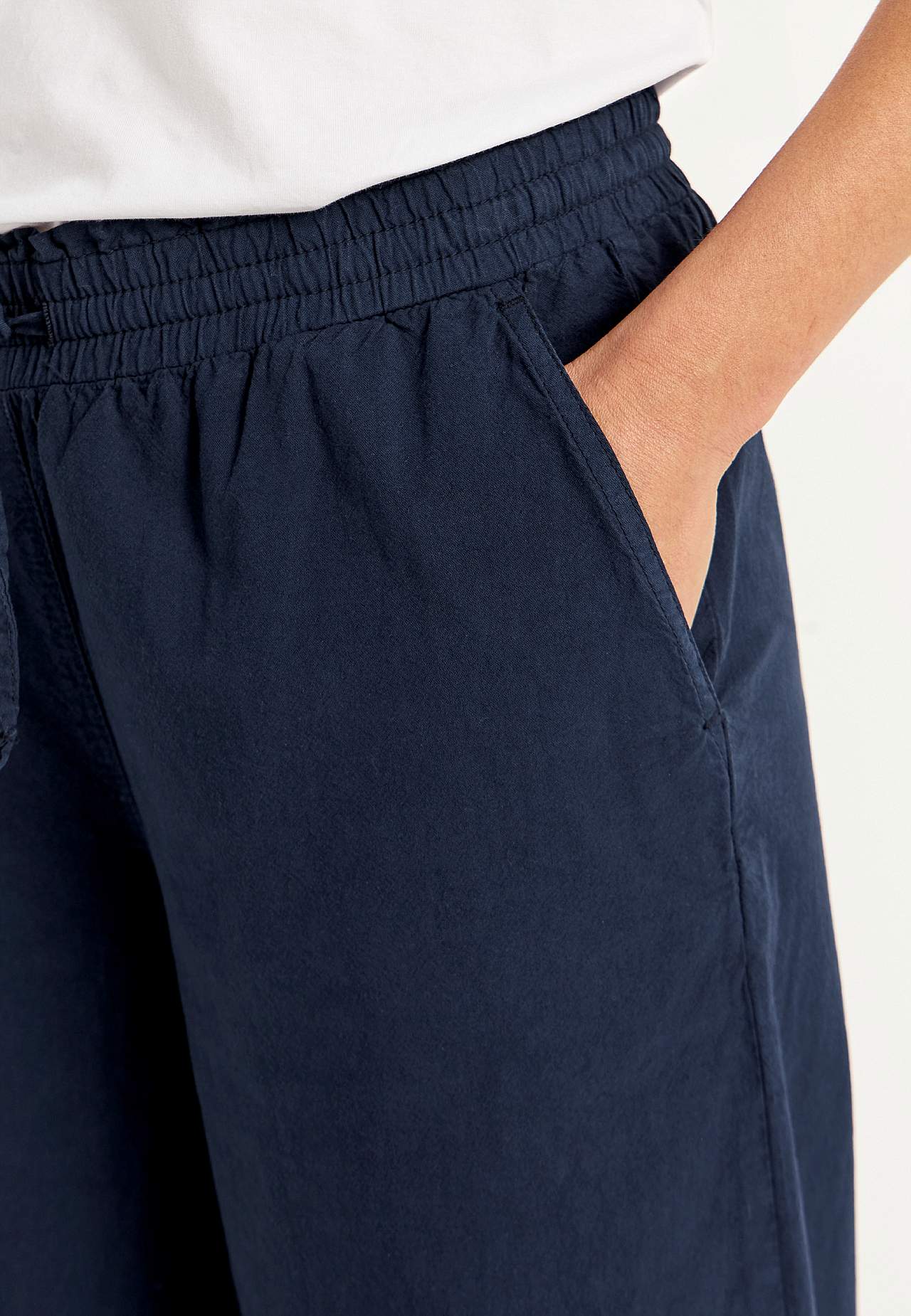 Brīvi bikšusvārki. Mazgāts, padevīgs kokvilnas audums ar dabisku tekstūru. Brīvs piegriezums. Ērta, elastīga jostasvieta ar aukliņu. Slīpas kabatas priekšpusē. Platas, taisnas staras. Staras iekšējās vīles garums aptuveni 57 cm visiem izmēriem. Stakles augstums atbilstīgi izmēram aptuveni 27-37 cm.