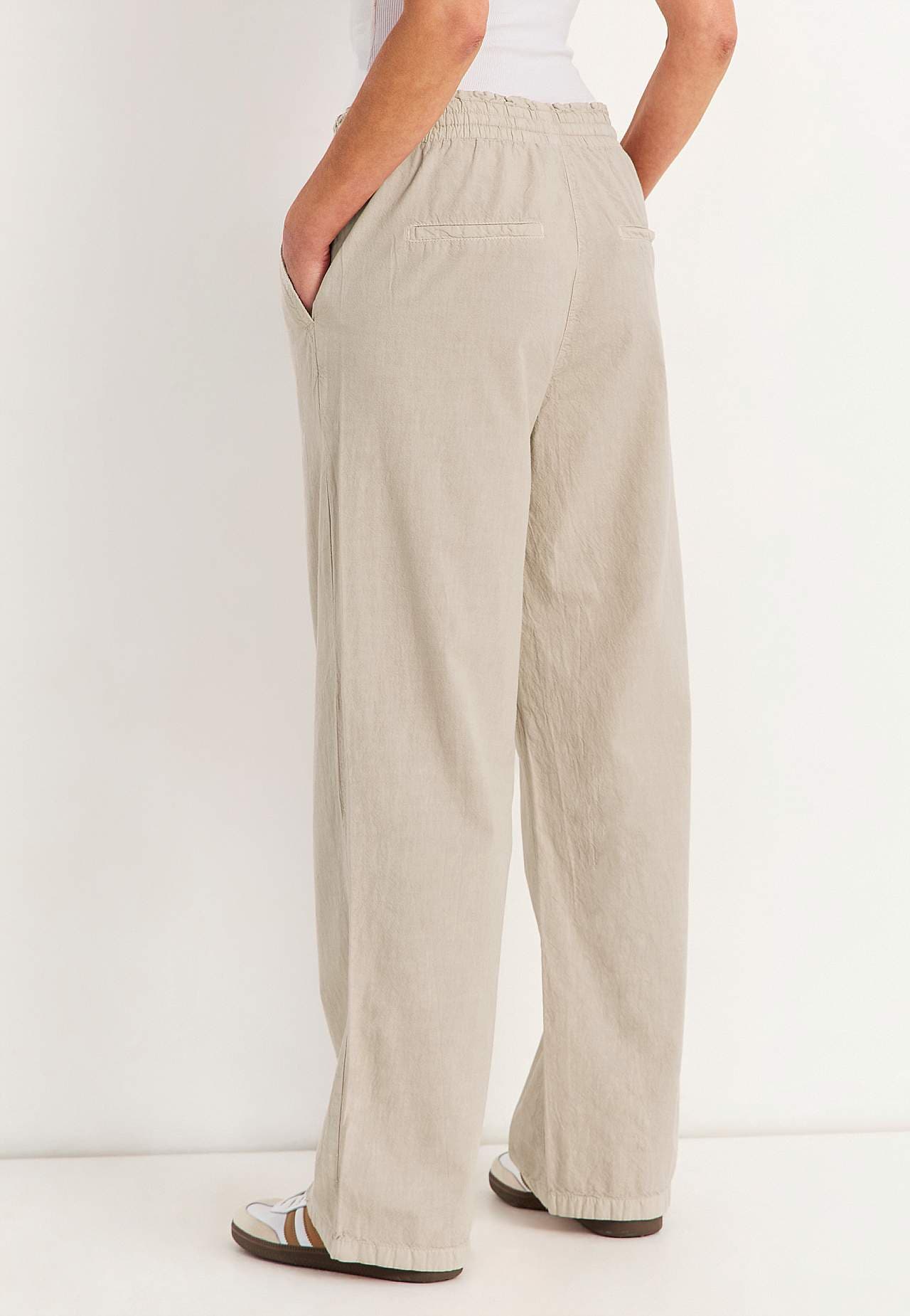Garas, brīva stila ikdienas bikses. Austs materiāls no mazgātas, gaisīgas un mīkstas kokvilnas ar dabisku tekstūru. Ikdienišķs, brīvs piegriezums. Ērta, elastīga jostasvieta ar savelkamu aukliņu.Slīpas kabatas priekšpusē. Kabatu imitācija mugurpusē. Platas, taisnas staras. Staras iekšējās vīles garums aptuveni 75 cm visiem ... Lasīt vairāk