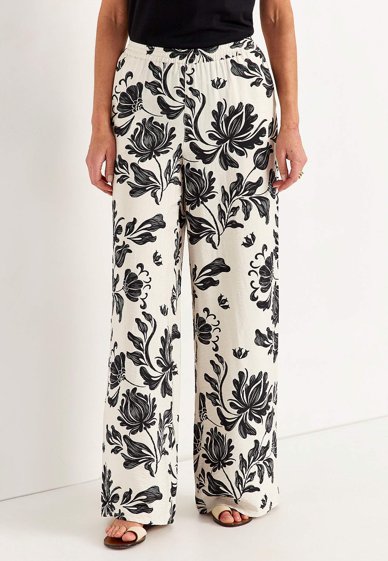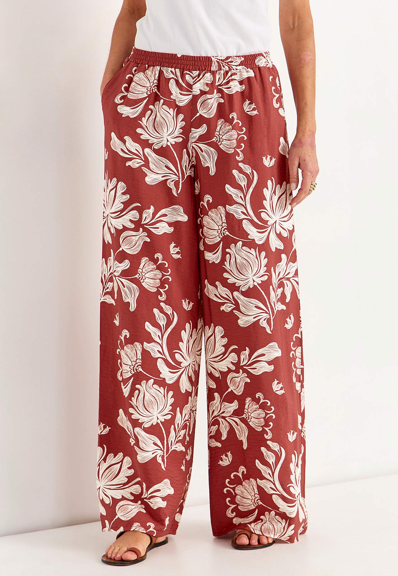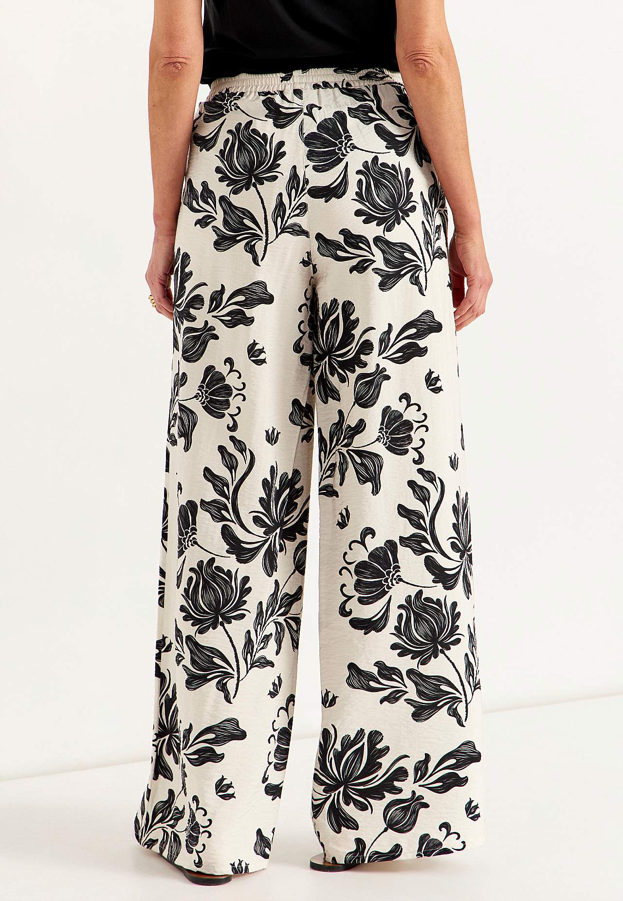 Bikses no patīkama, nedaudz spīdīga viskozes maisījuma auduma ar tekstūru. Patīkami smags kritums, atvēsinošs materiāls. Brīvs piegriezums; platas, taisnas staras. Standarta augstuma jostasvieta ar ērtu gumiju. Slīpas kabatas. Staras iekšējās vīles garums aptuveni 78 cm visiem izmēriem. Stakles augstums atbilstīgi izmēram a... Lasīt vairāk