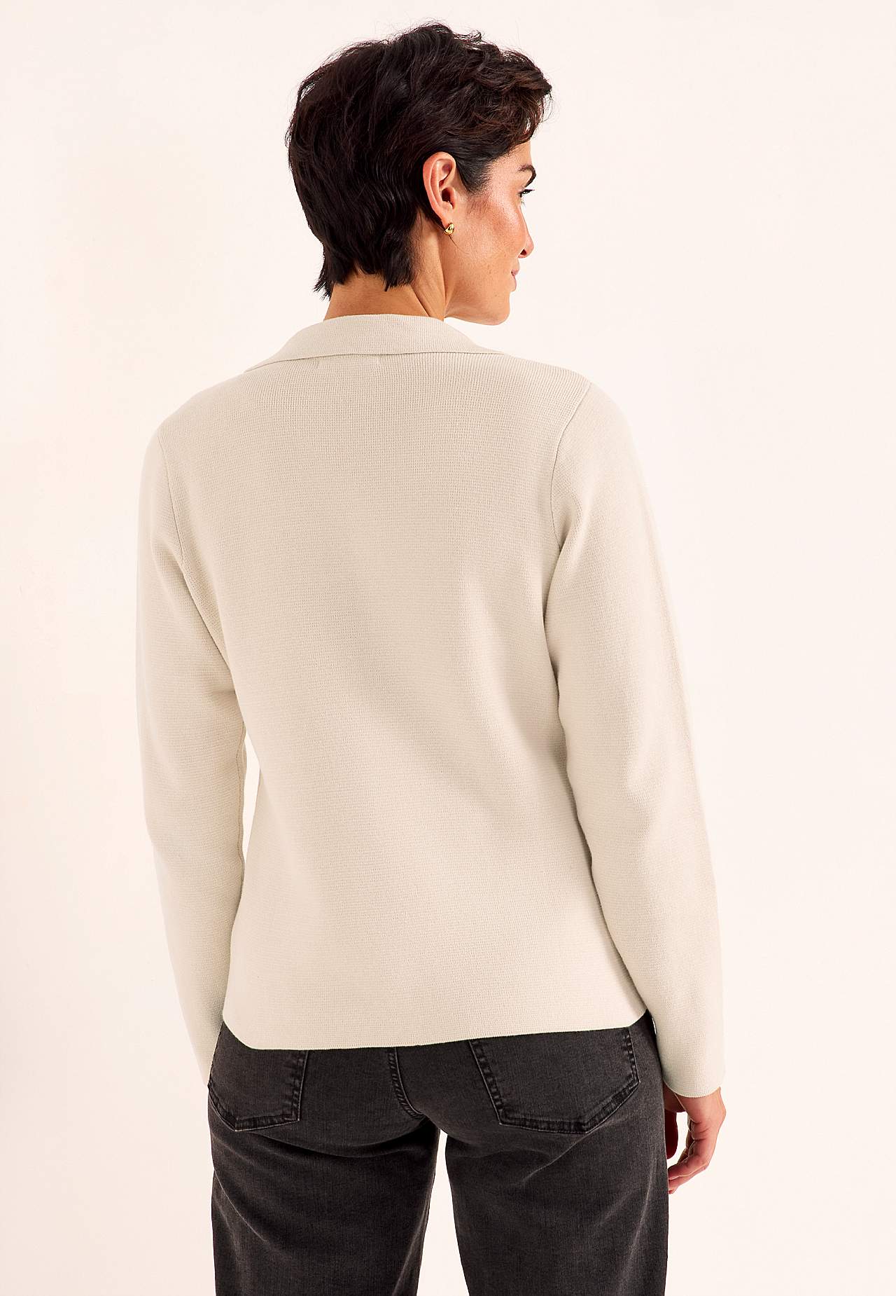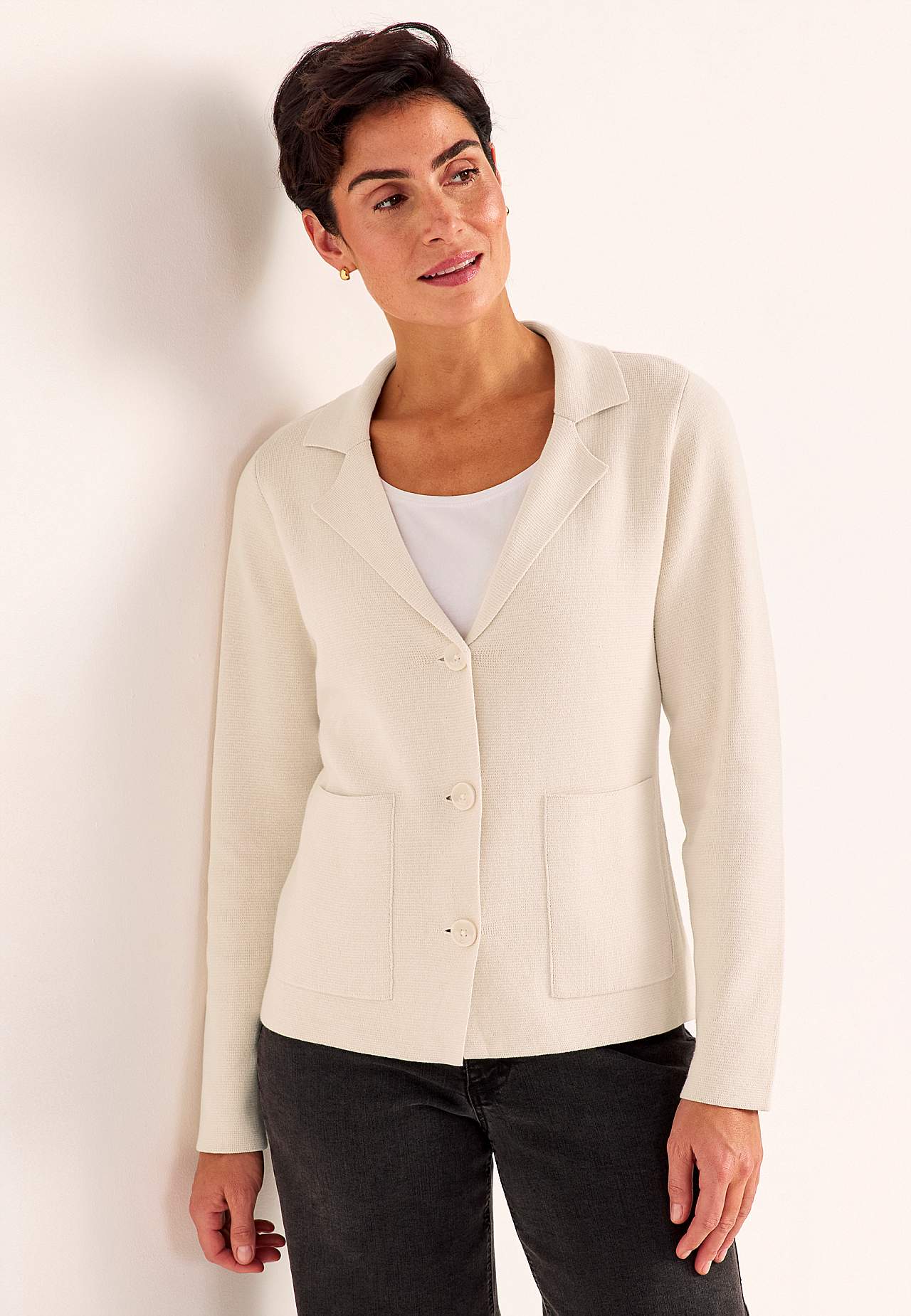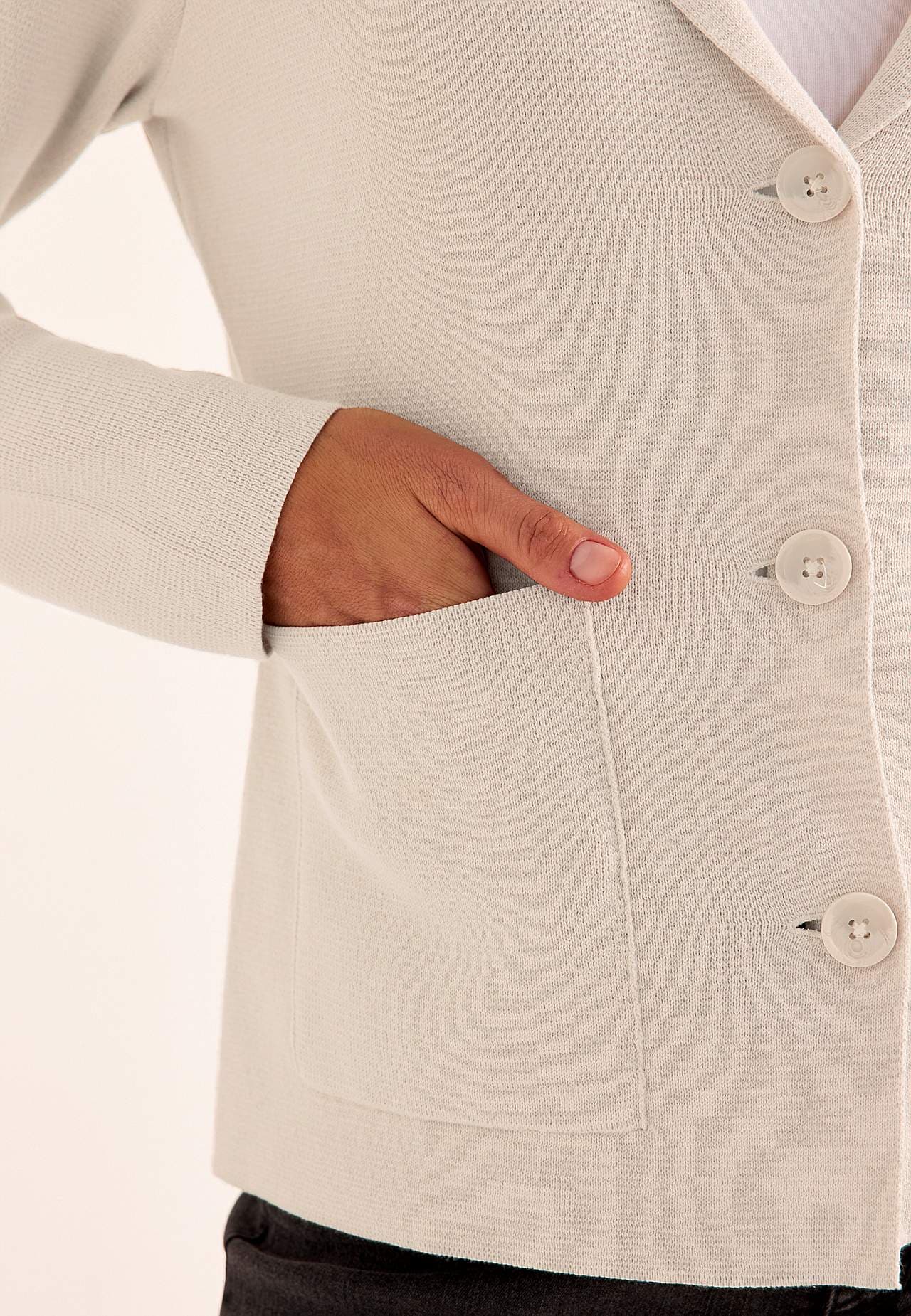 Smalka adījuma jaka, kas izgatavota no biezāka, mīksta, kvalitatīva materiāla. Augumam viegli pieguļošs modelis. Stilīgs dizains, kas lieliski piemērots valkāšanai visu gadu. Trīs lielas pogas. Priekšpusē kabatas. Garas piedurknes. Garums no pleca atbilstoši izmēram apmēram 61-70 cm.