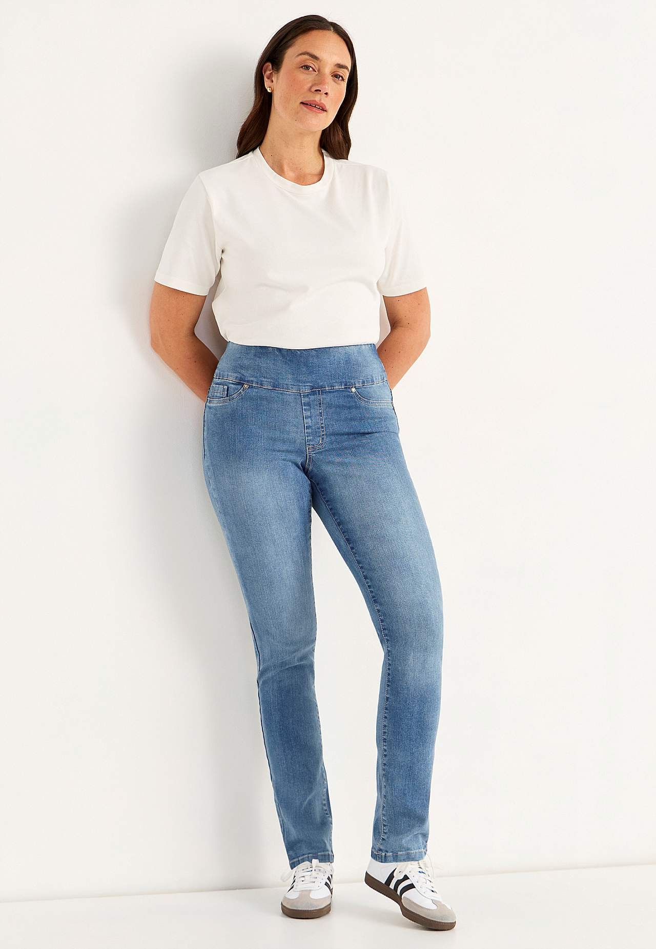 Elastīgi džegingi ar augstu, elastīgu jostasvietu Elin