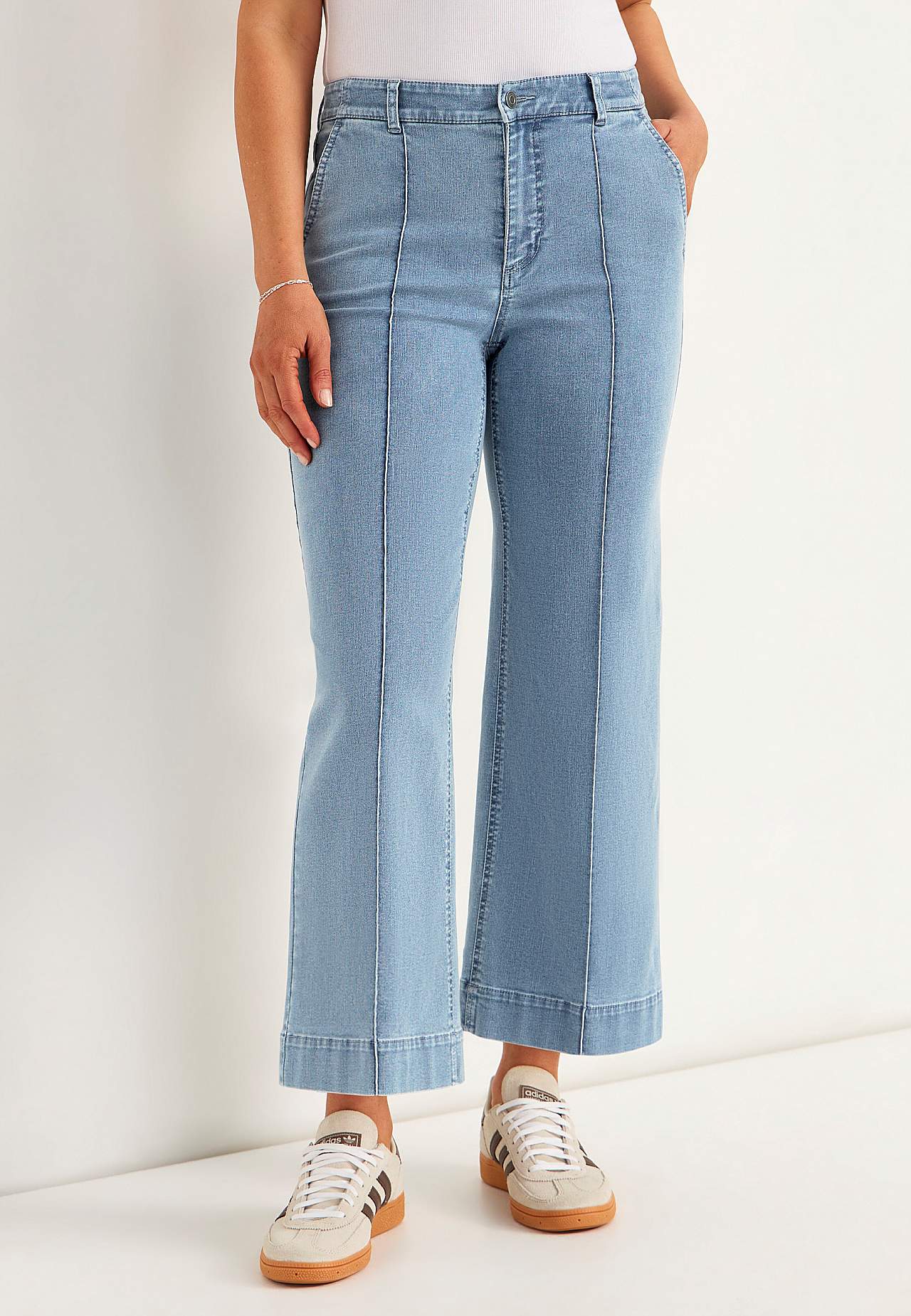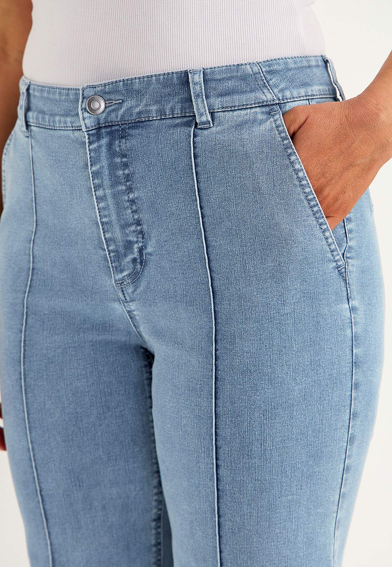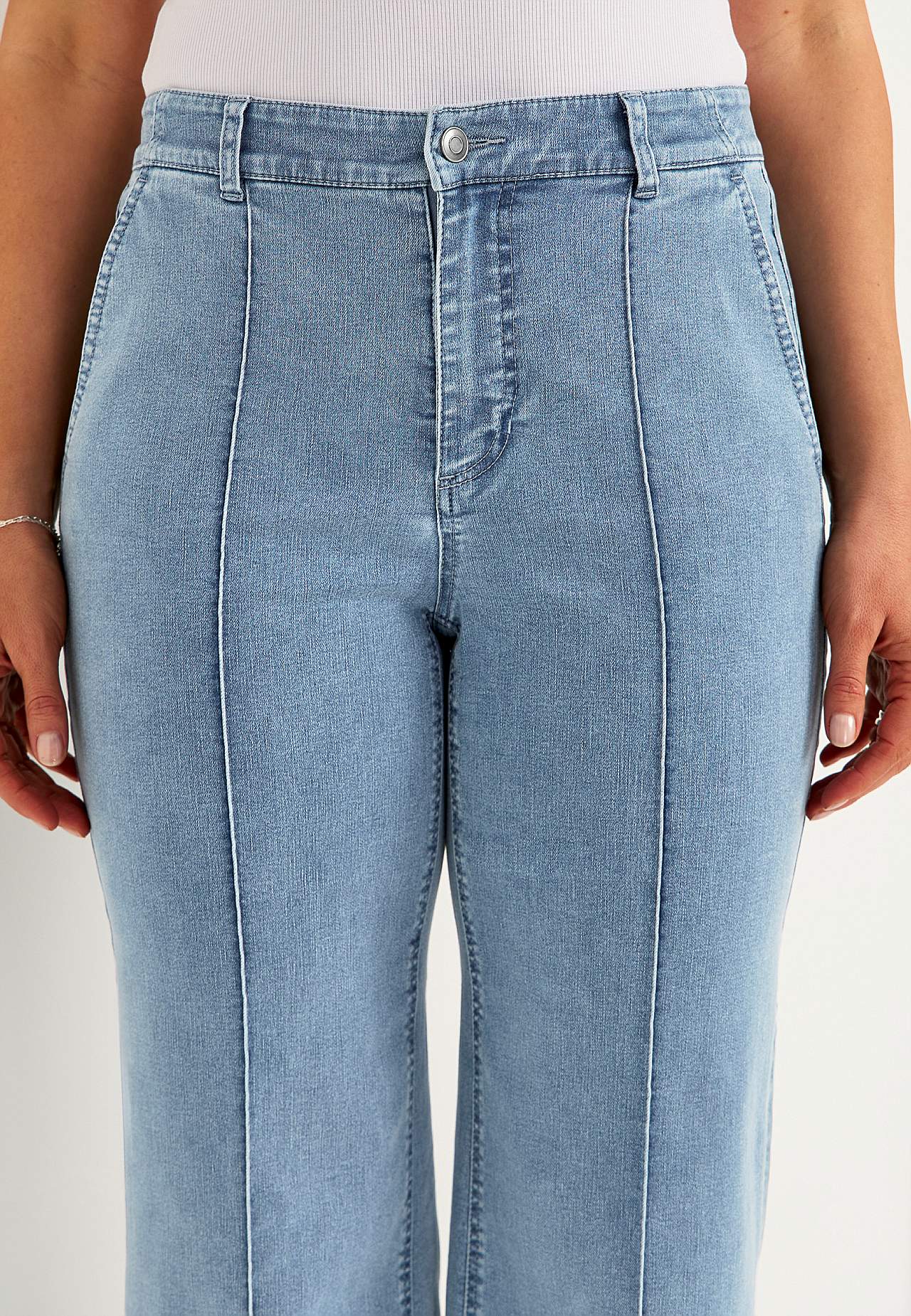 Plati potīšu garuma džinsi ar nošūtām buktēm