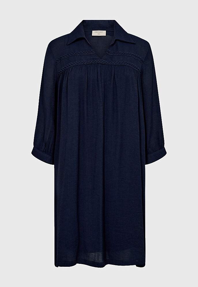 Viegla krepa auduma kleita. Elastīga apakškleita ar regulējamām, šaurām plecu lencītēm. Brīvs piegriezums. Modelis ar smalku izšuvumu uz krūtīm un vīli priekšpuses vidū. V veida kakla izgriezums ar apkakli. ¾ garuma platas piedurknes ar šauru aproci un vienu pogu. Taisna apakšējā mala. Garums no pleca M (40.) izmēram apmēra... Lasīt vairāk
