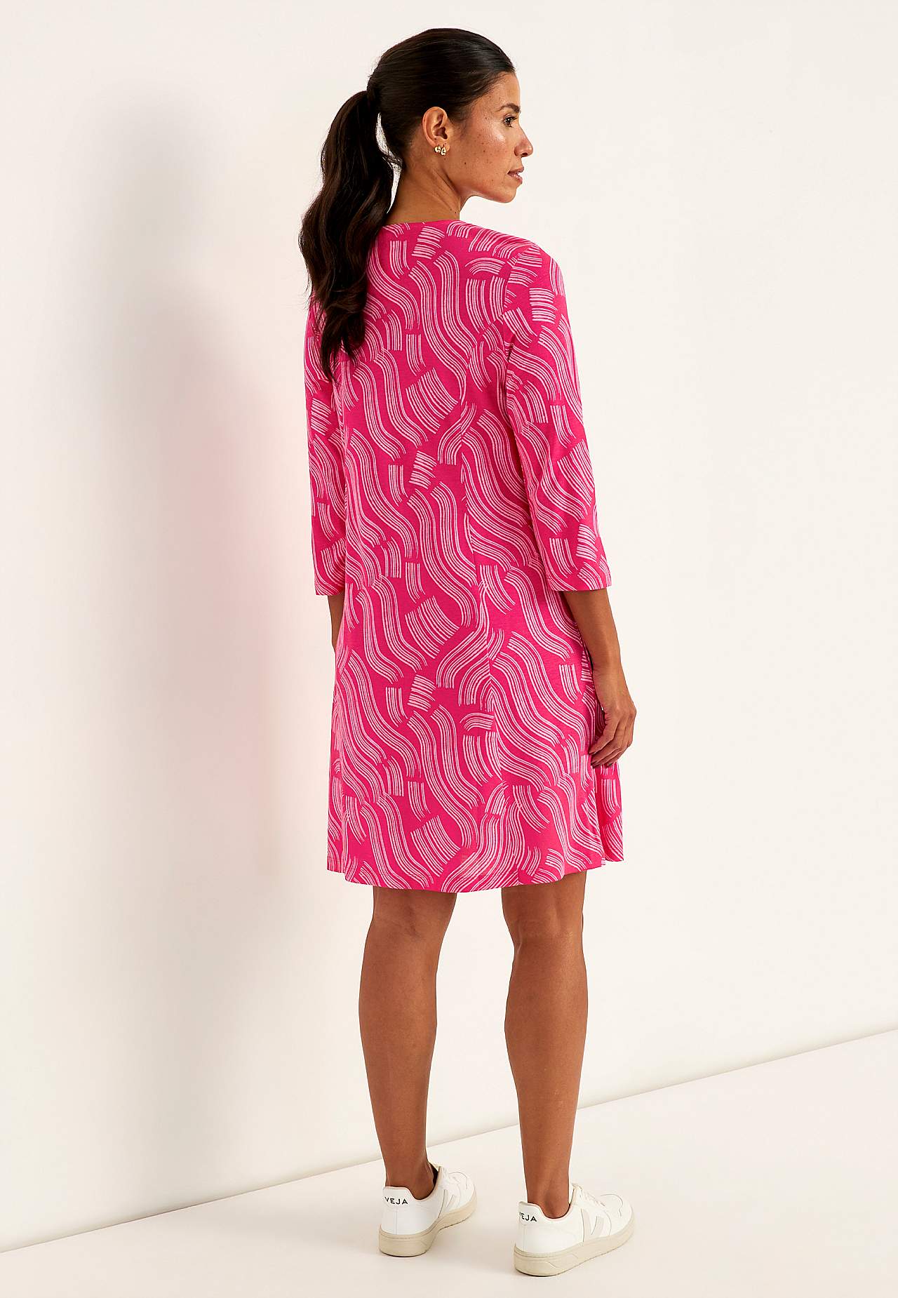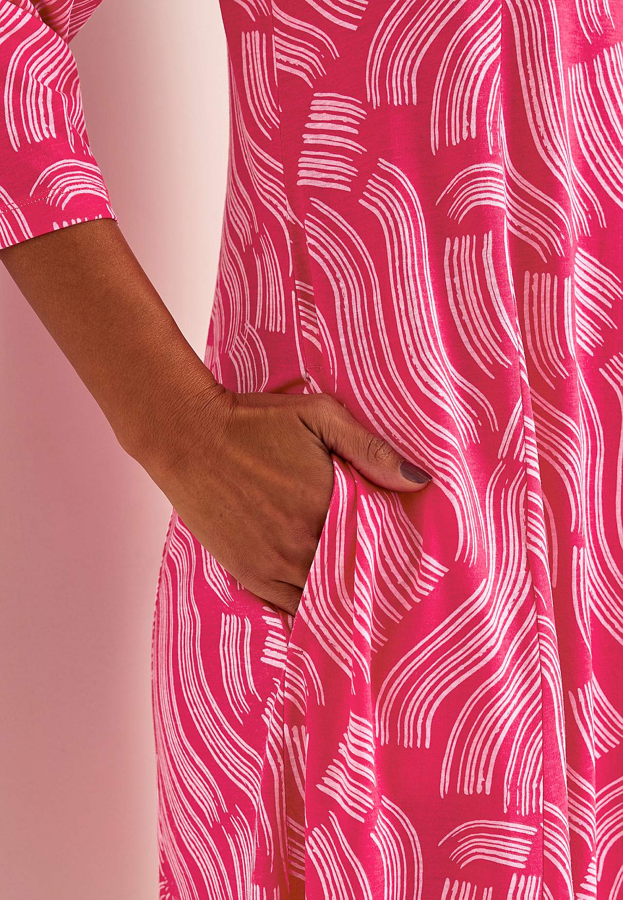 Rakstaina trikotāžas kleita ar kabatām