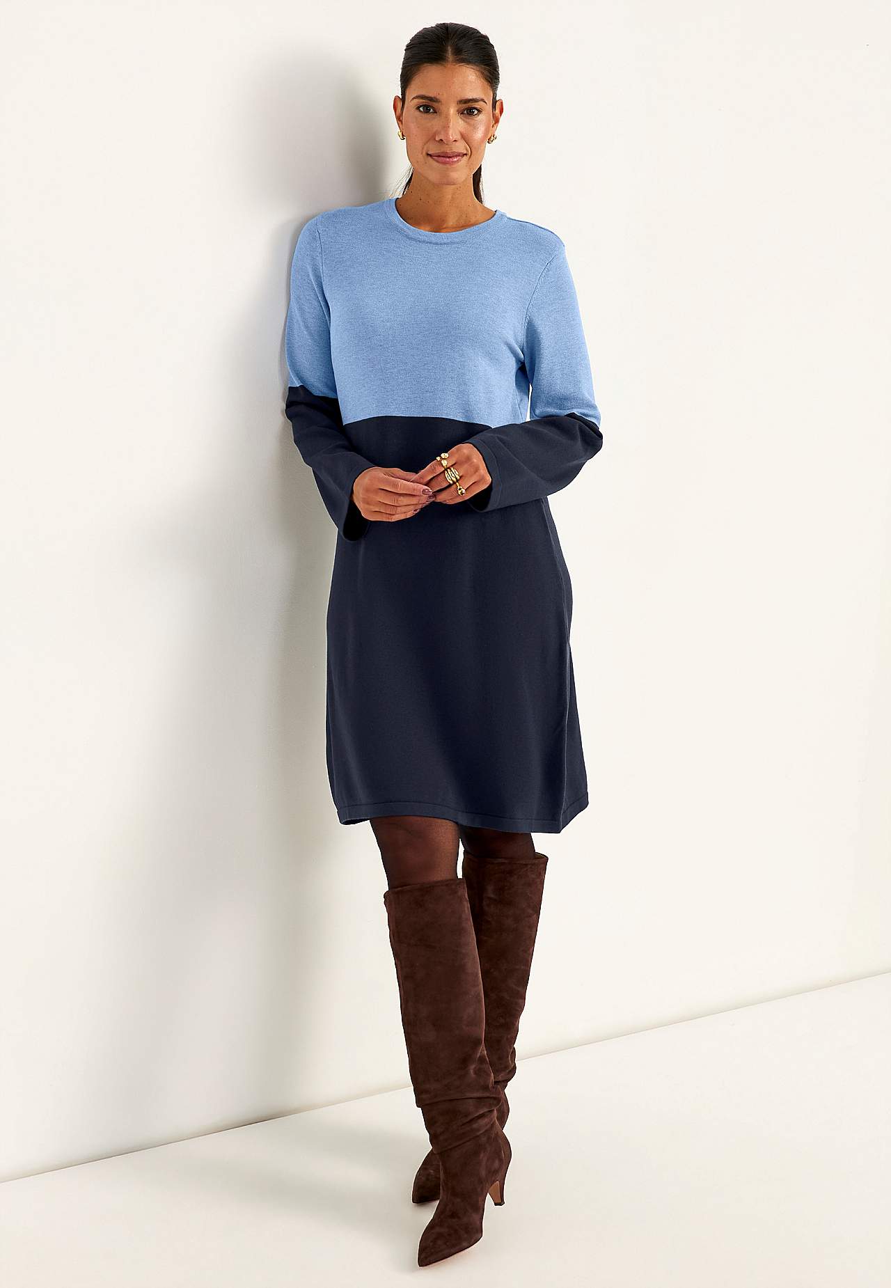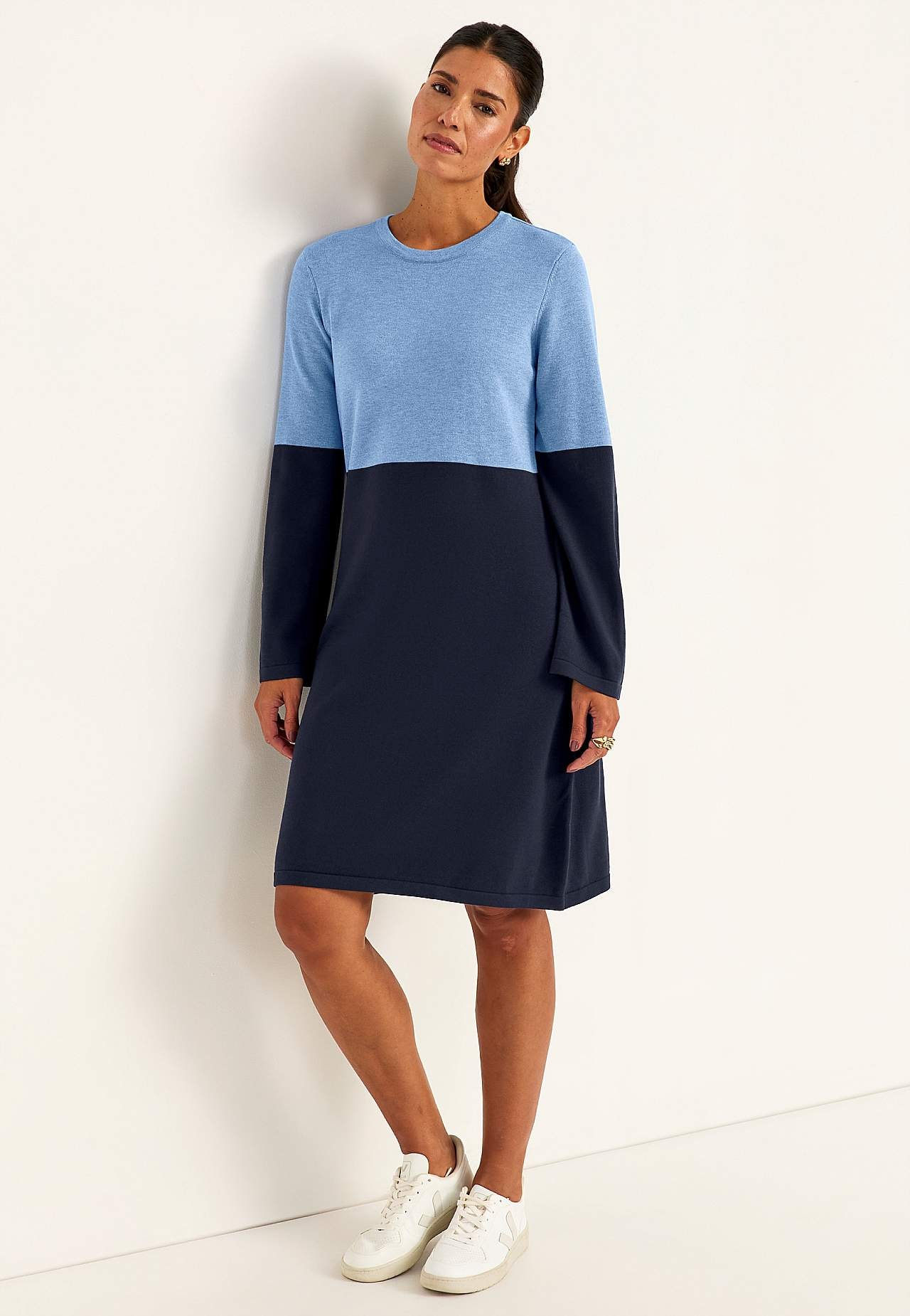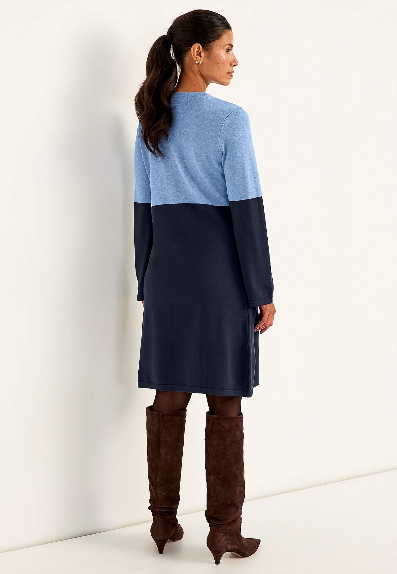 Smalka adījuma kleita no mīksta viskozes maisījuma. Stingrs, elastīgs materiāls. Taisns piegriezums. Apaļš kakla izgriezums ar šauru valnīša raksta apmali. Garas, platas piedurknes ar šauru valnīti. Rokriņķi veidoti tieši adījuma procesā un precīzi pielāgoti apģērba formai. Taisna apakšmala ar šauru valnīša raksta apmali. G... Lasīt vairāk