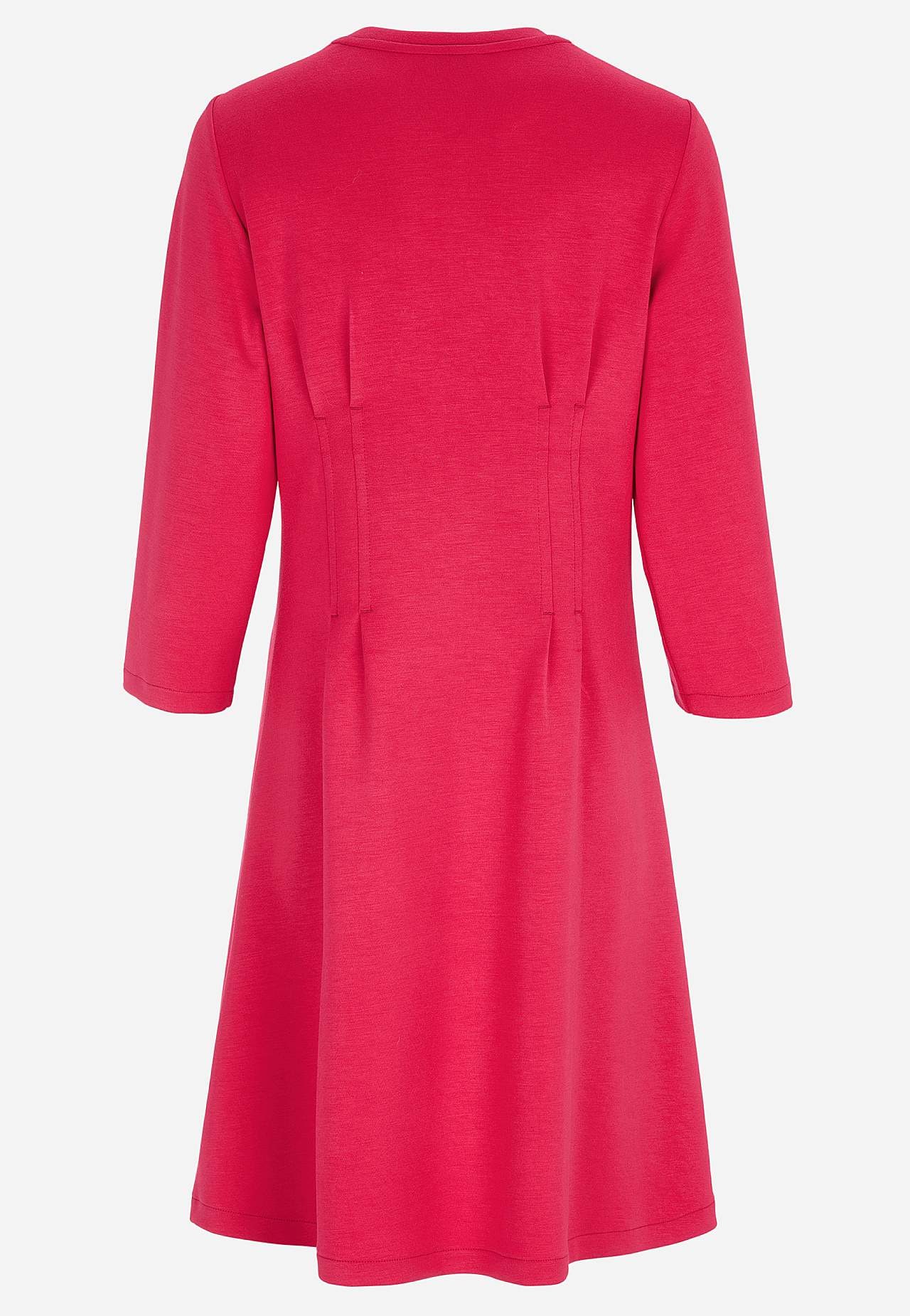 Zīdaini mīksta pabiezas trikotāžas kleita. Elastīgs, ērts materiāls. Standarta piegriezums ar figūru izceļošām iešuvēm gan priekšpusē, gan mugurpusē. Apaļš kakla izgriezums. Nedaudz paplatinātas 3/4 garuma piedurknes. Paplatināta kleitas apakšdaļa. Taisna apakšmala. Garums no pleca atbilstīgi izmēram apmēram 94-105 cm.
