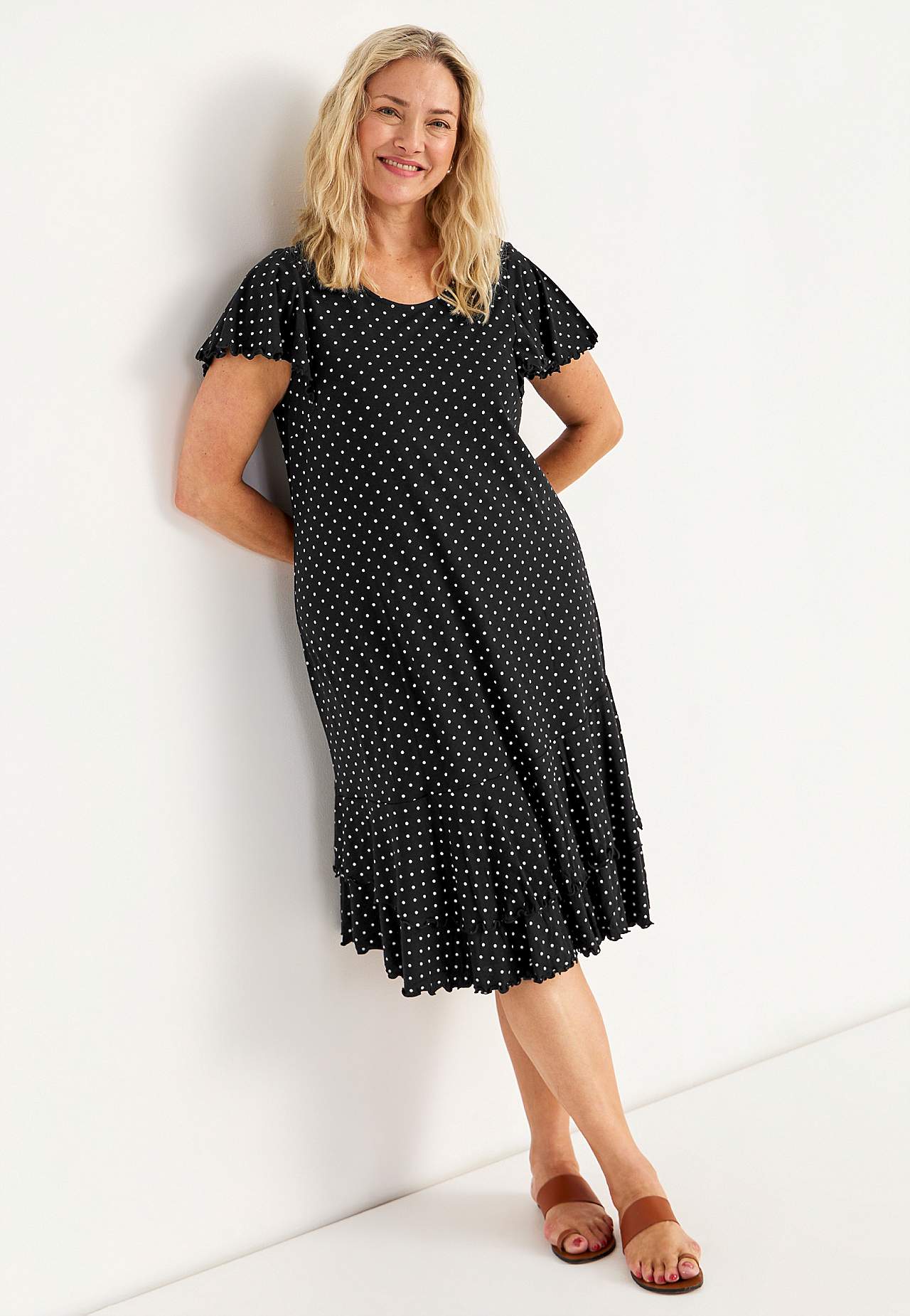 Trikotāžas kleita ar volāniem