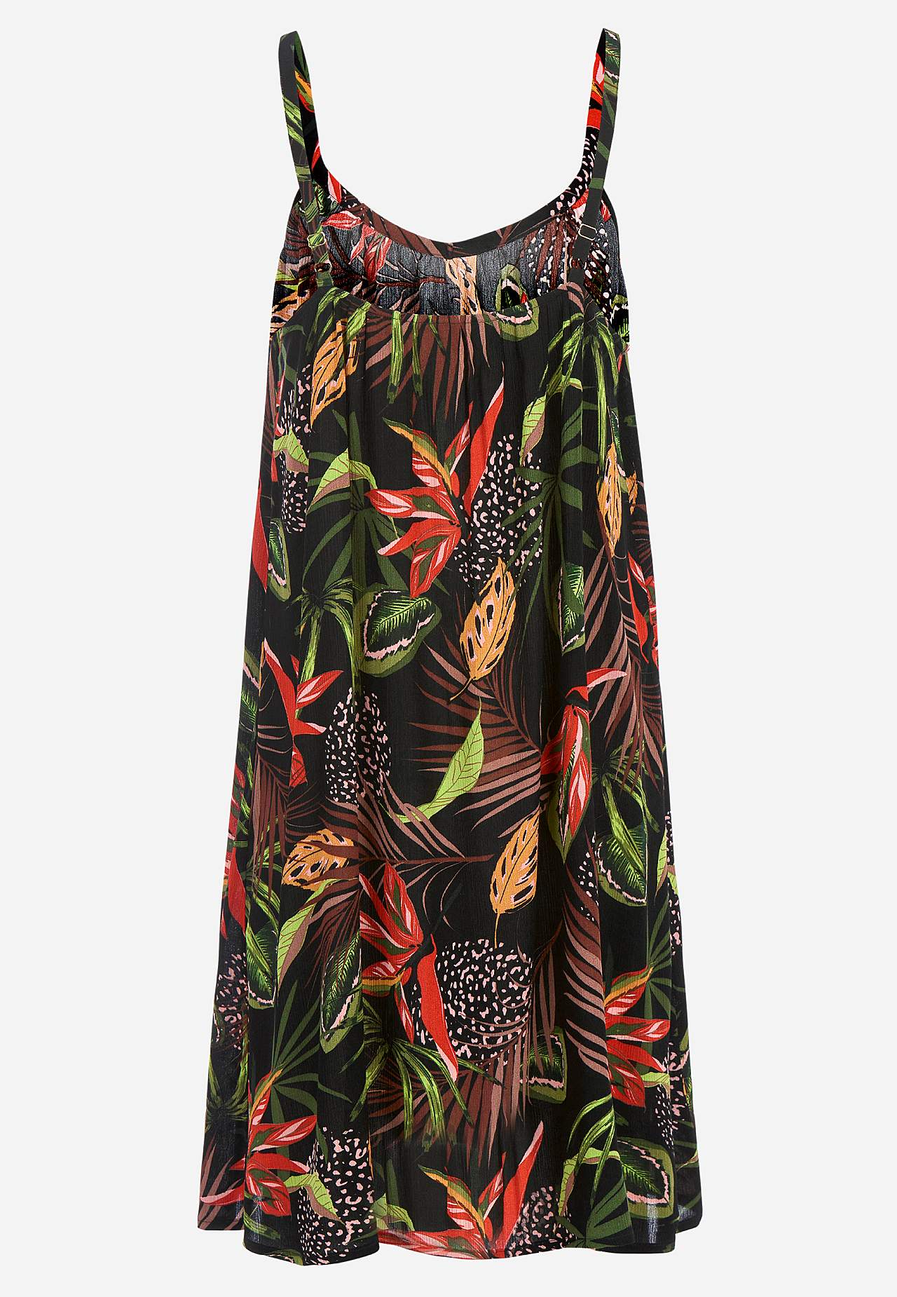 Viskozes krepa auduma kleita ar plecu lencītēm. Gaisīgs, mīksts materiāls. Brīvs piegriezums, ērts platums. Regulējamas plecu lencītes. Garums mugurpusē atbilstīgi izmēram aptuveni 69-76 cm.