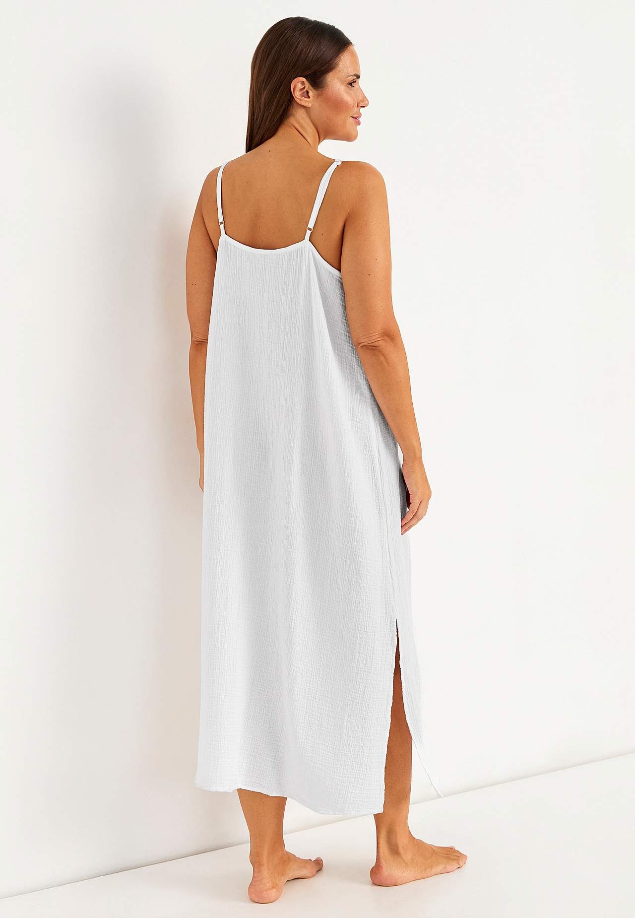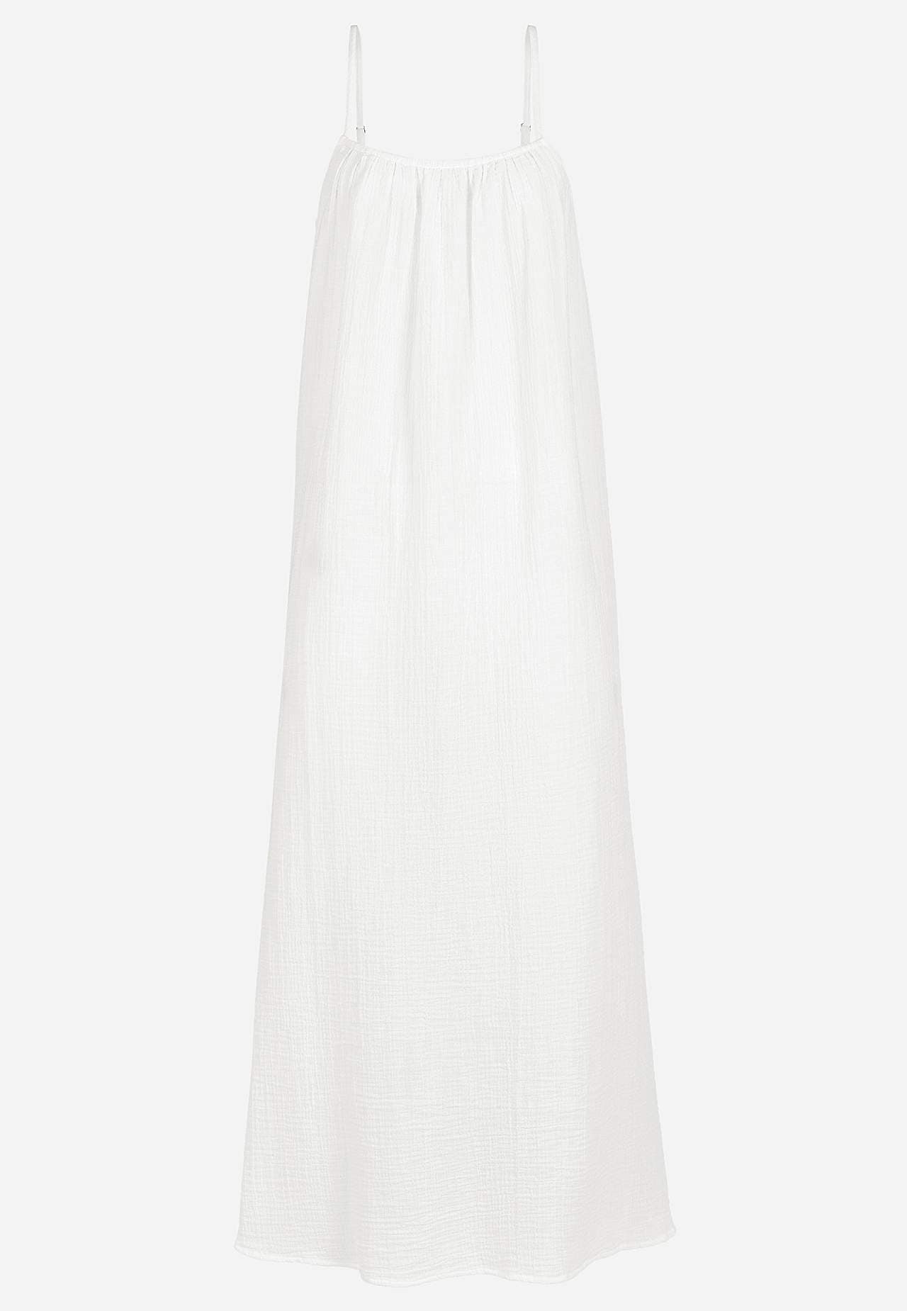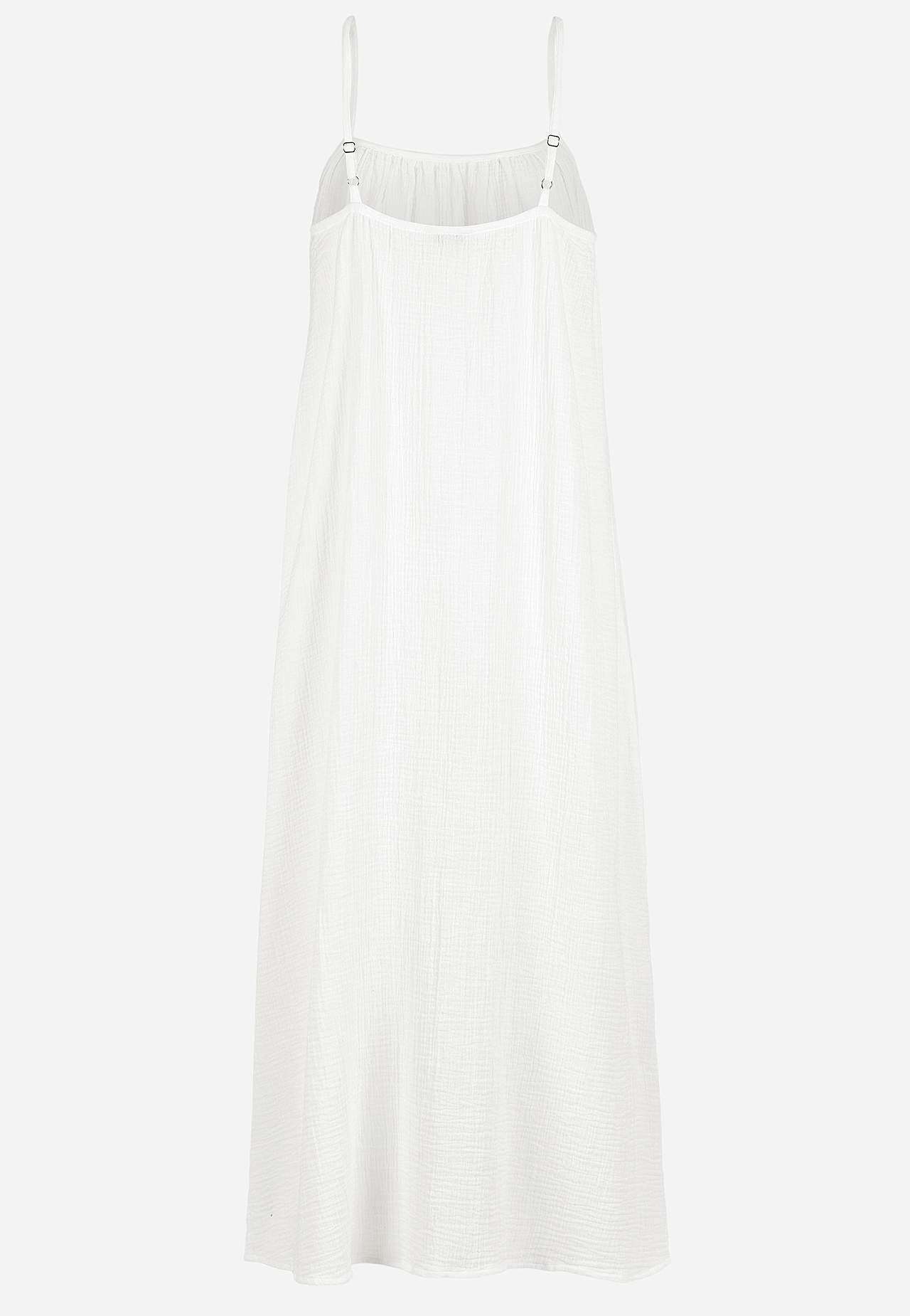 Viskozes krepauduma kleita ar skaistu tekstūru. Gaisīgs, mīksts materiāls. Brīvs piegriezums, ērts platums. Regulējamas plecu lencītes. Garums priekšpuses vidū atbilstīgi izmēram aptuveni 114-121 cm.