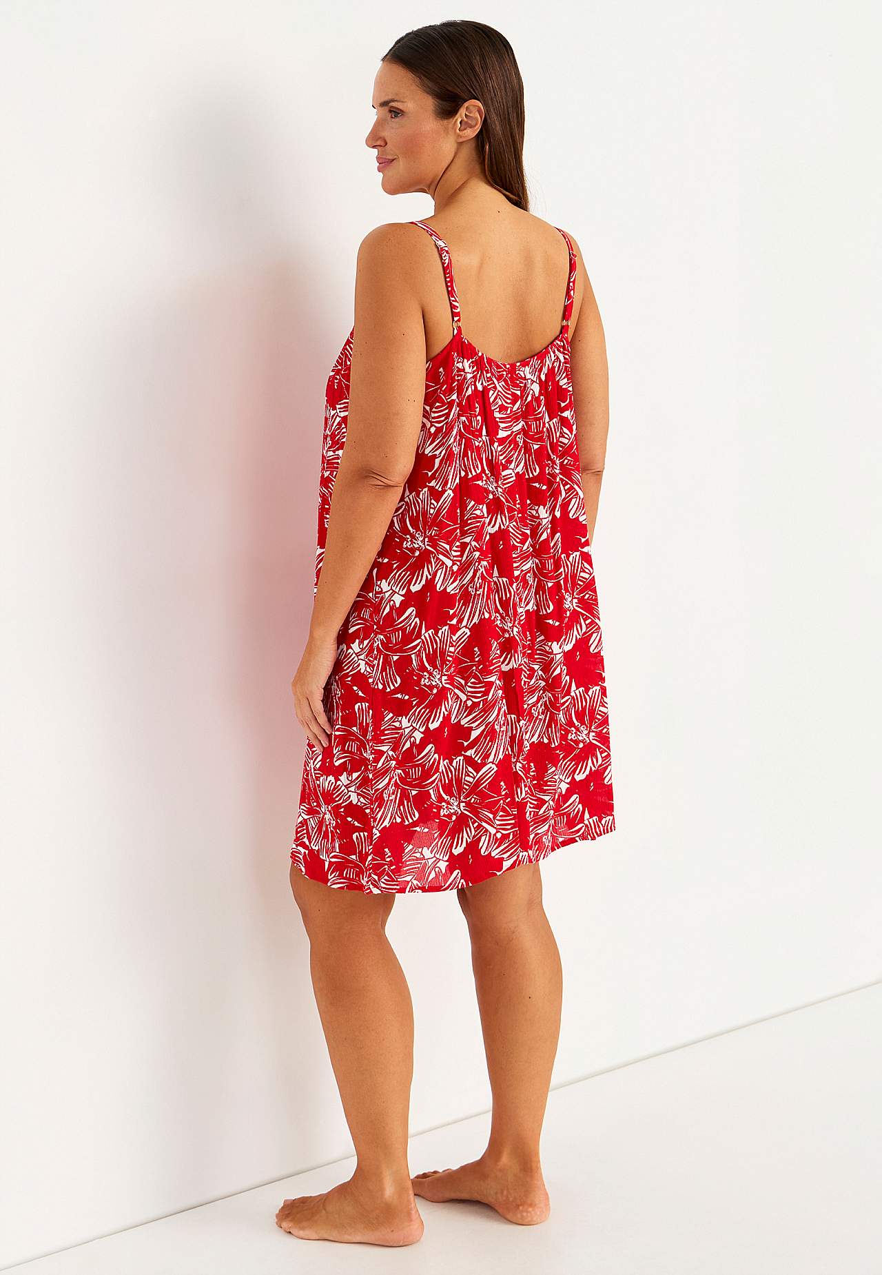 Viskozes krepa auduma kleita ar plecu lencītēm. Gaisīgs, mīksts materiāls. Brīvs piegriezums, ērts platums. Regulējamas plecu lencītes. Garums mugurpusē atbilstīgi izmēram aptuveni 69-76 cm.