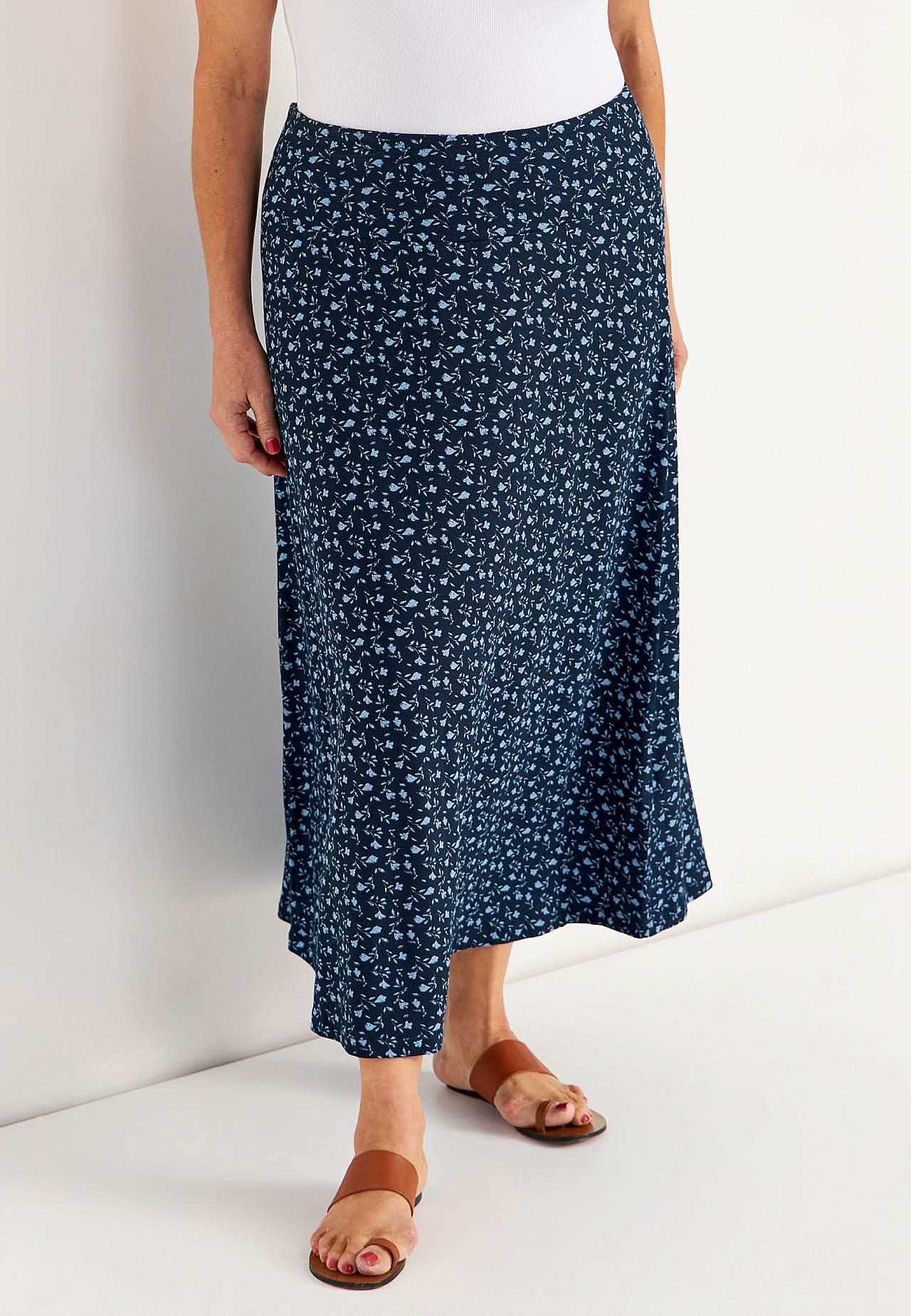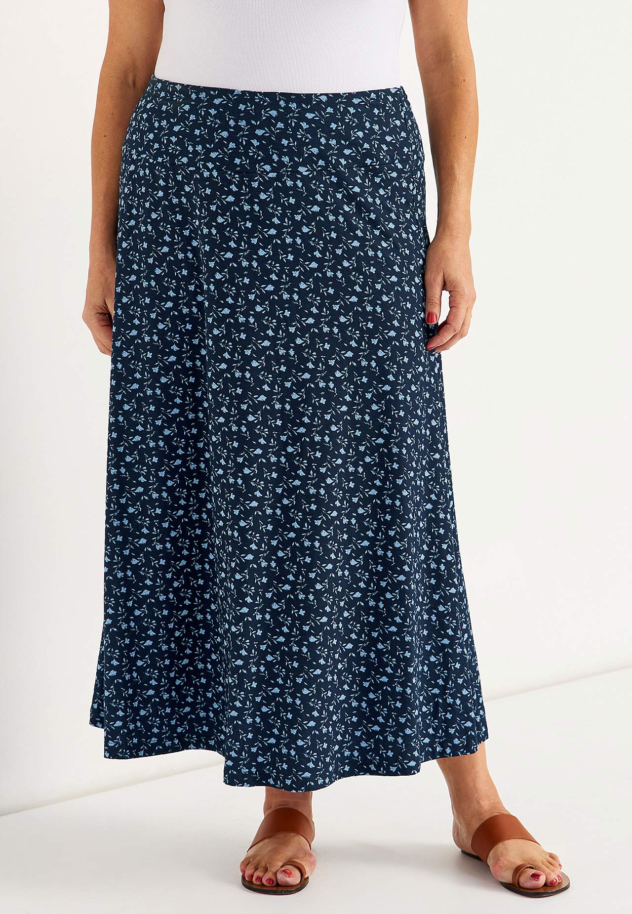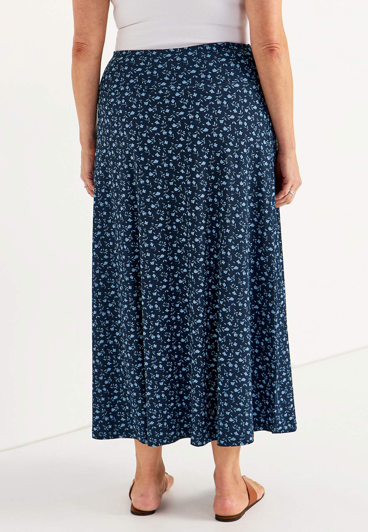 Gari mīkstas viskozes svārki ar smagu, skaistu kritumu un elastānu. Plats A silueta piegriezums. Viduklī atdaļa un ērta gumija. Viegli noapaļota apakšmala. Garums: 90 cm.