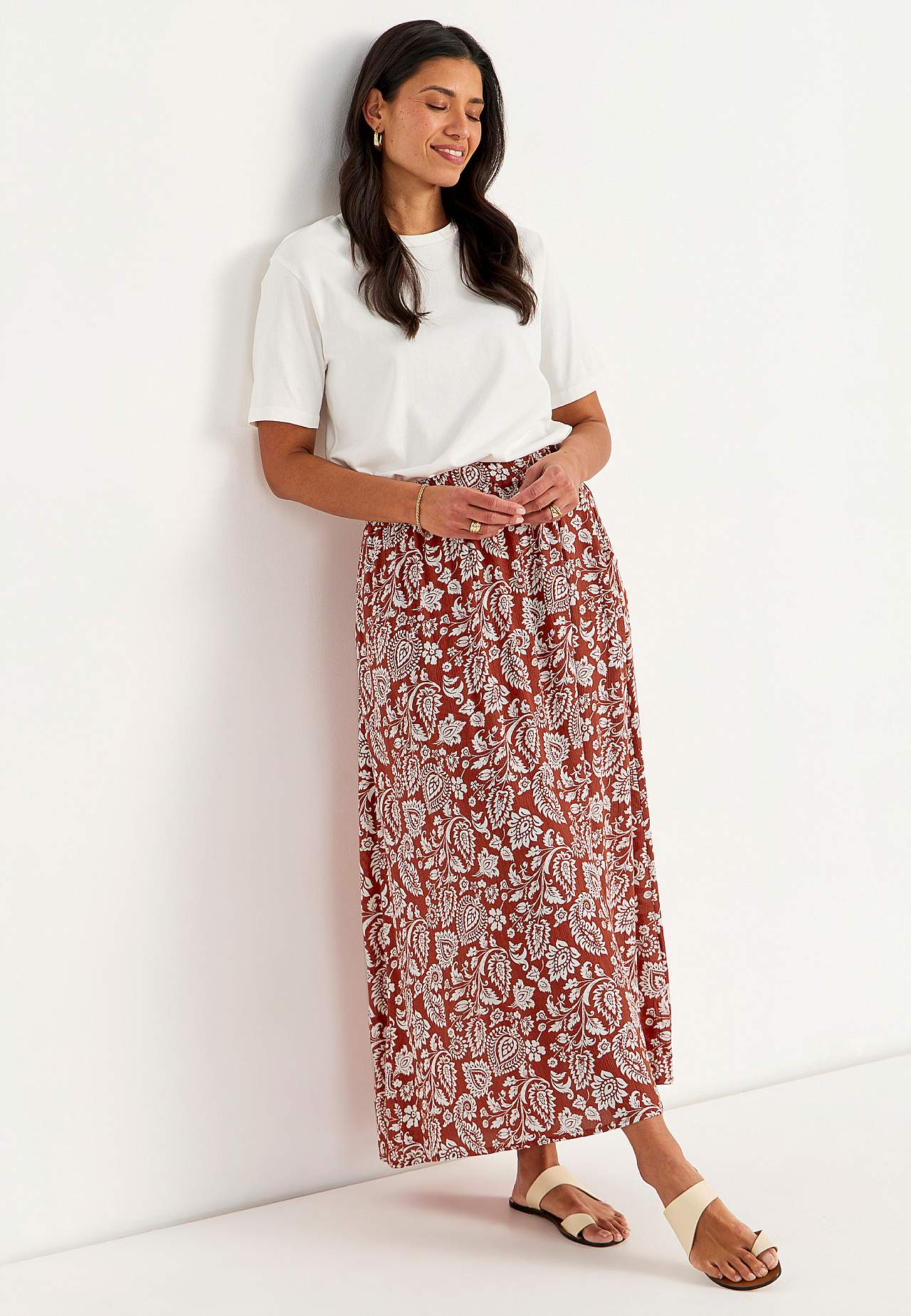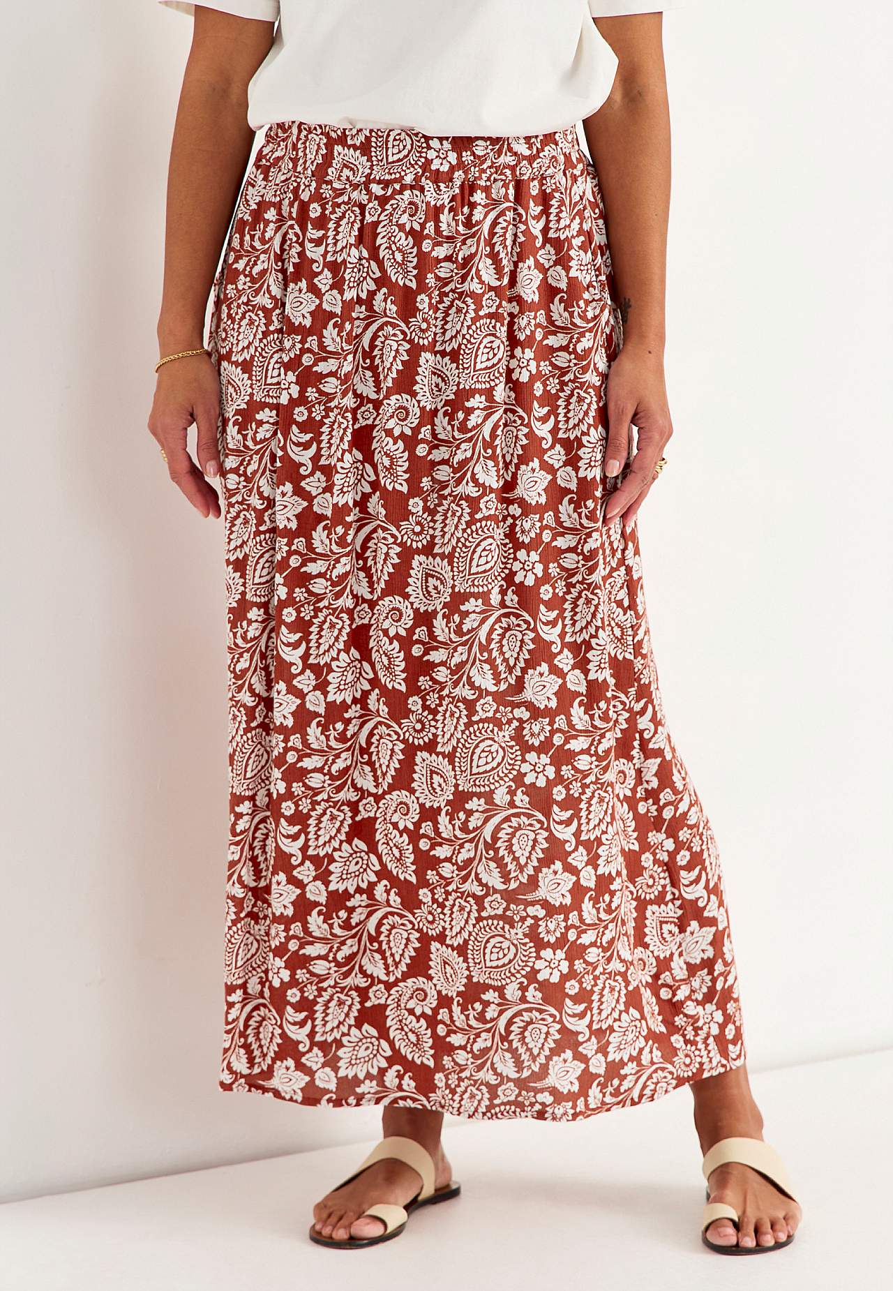 Gari viskozes auduma svārki ar kabatām. Krepa materiāls ar matētu virsmu un smalku tekstūru. Mīksts un krītošs materiāls, kas rada atvēsinošu sajūtu. Plata, mīksta gumija jostasvietā. Slīpas kabatas priekšpusē. Taisna apakšmala. Lieliski saskaņojami ar 702443. Garums: 95 cm.