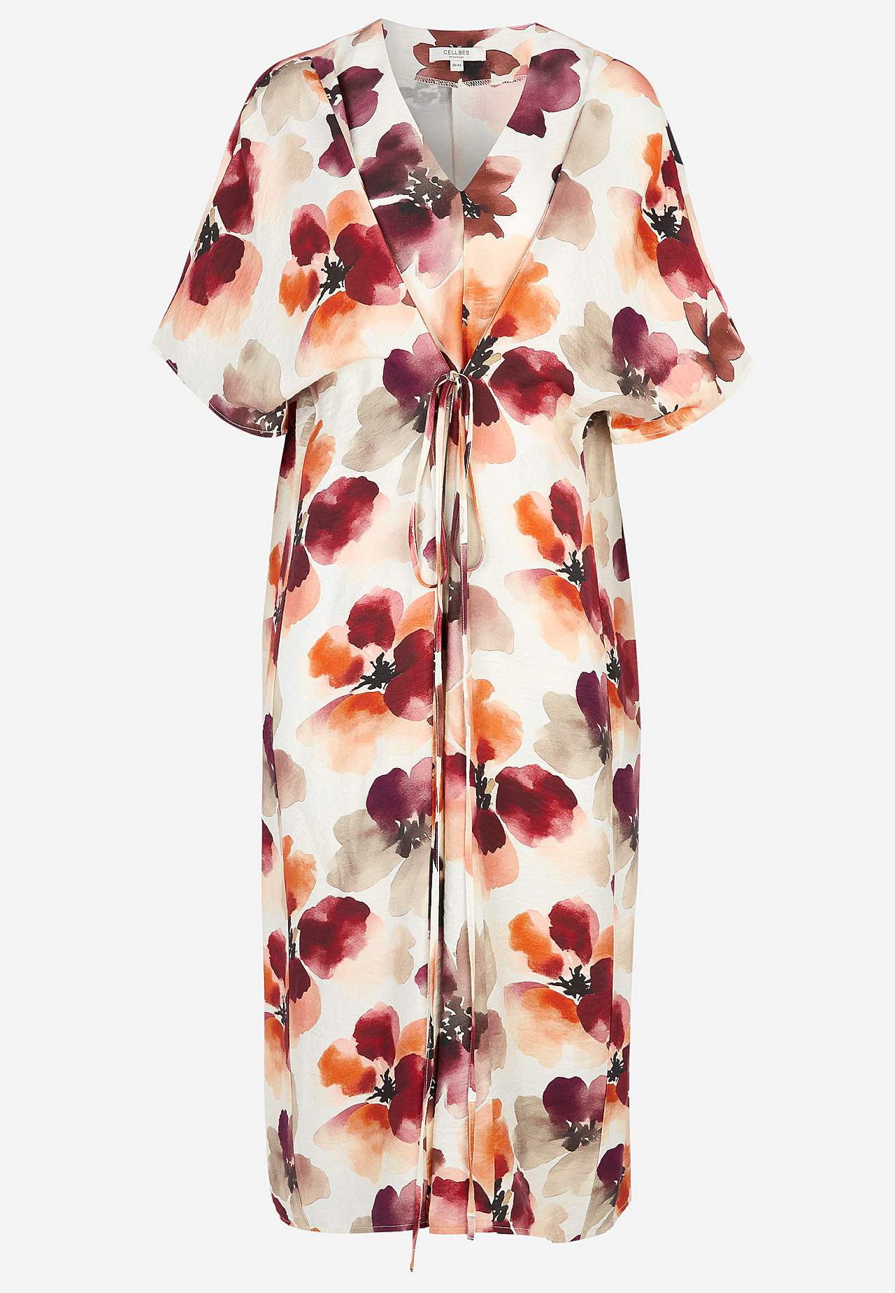 Taisna, brīva gaisīgas viskozes kimono kleita. Ideāli piemērota vasaras ballītēm. Audums ar nedaudz spīdīgu tekstūru. Plats, taisns piegriezums. V veida kakla izgriezums. Īsas, platas piedurknes. Viduklī iešūtas saitītes, kuras var sasiet gan priekšpusē, gan mugurpusē. Taisna apakšmala. Garums no pleca visiem izmēriem apm. ... Lasīt vairāk