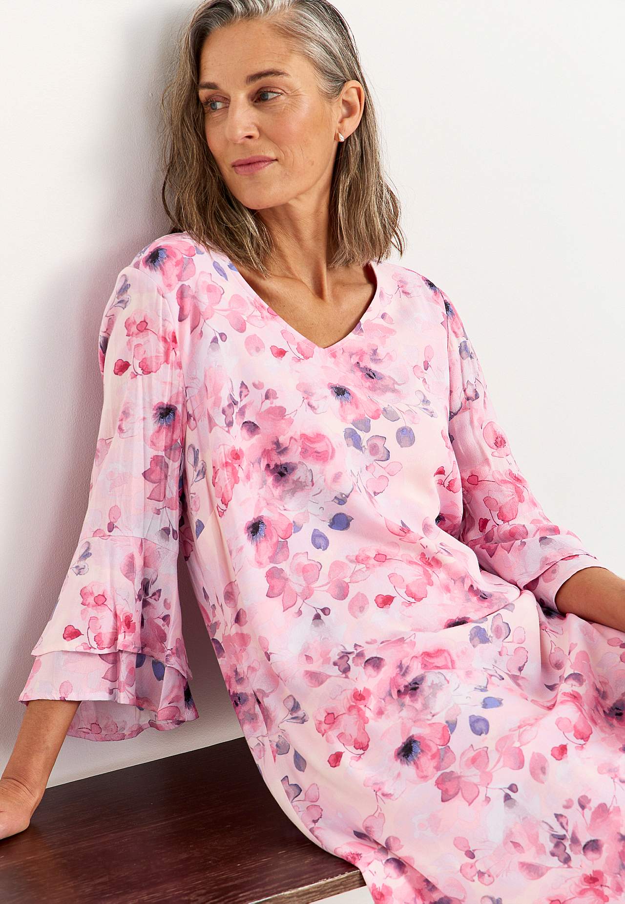 Atvēsinošas viskozes svētku kleita ar oderi un jauku kritumu. A siluets. V veida kakla izgriezums, atvērums un zelta krāsas poga skausta daļā. Mīksta, elastīga odere. Garums no pleca atbilstīgi izmēram apmēram 98-114 cm.