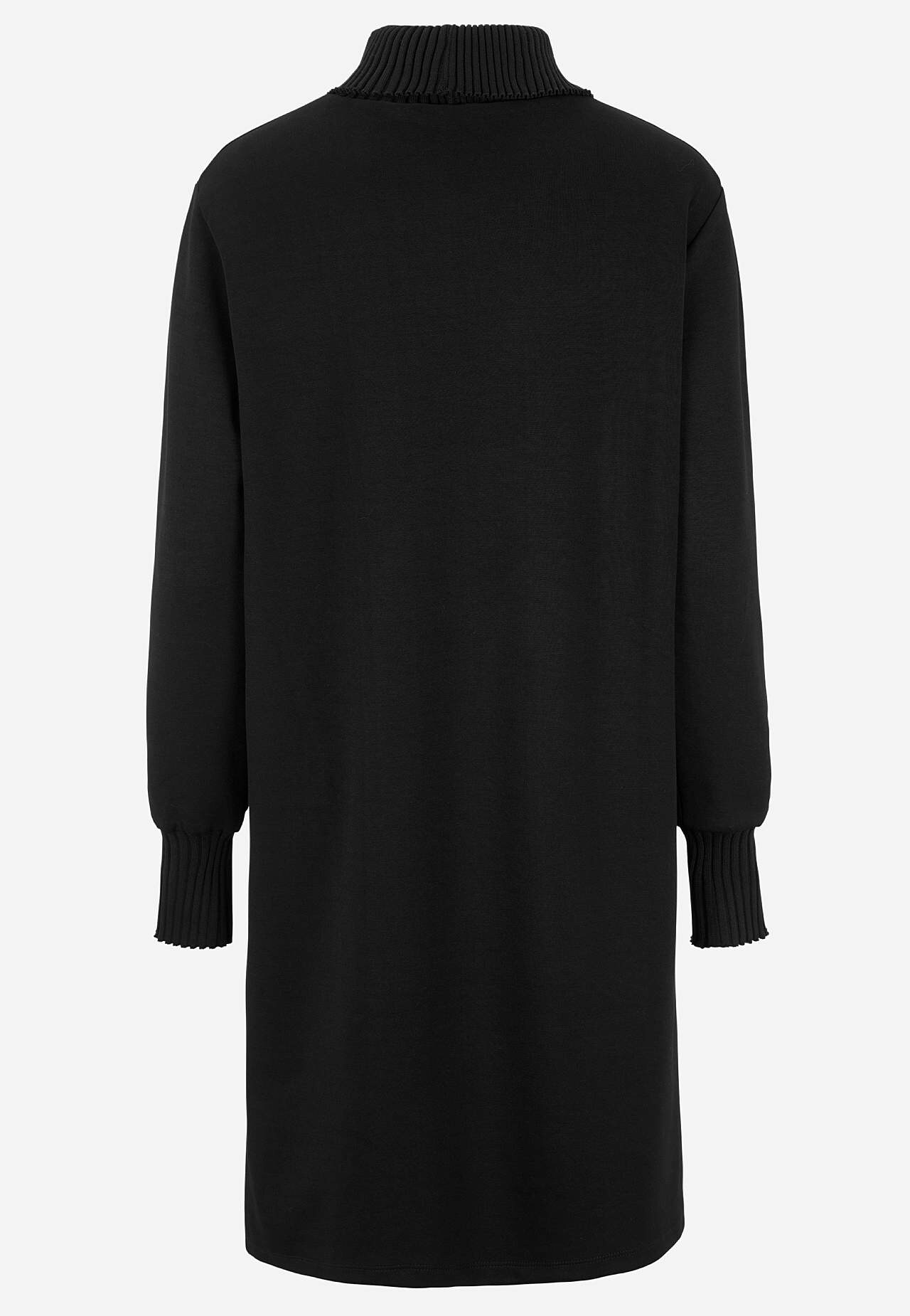 Ļoti mīksta pabiezas trikotāžas kleita. Taisns piegriezums. Valnīša raksta adījuma polo apkakle. Garas piedurknes ar valnīti galā. Taisna apakšmala. Garums no pleca S (38.) izmēram apm. 94 cm.