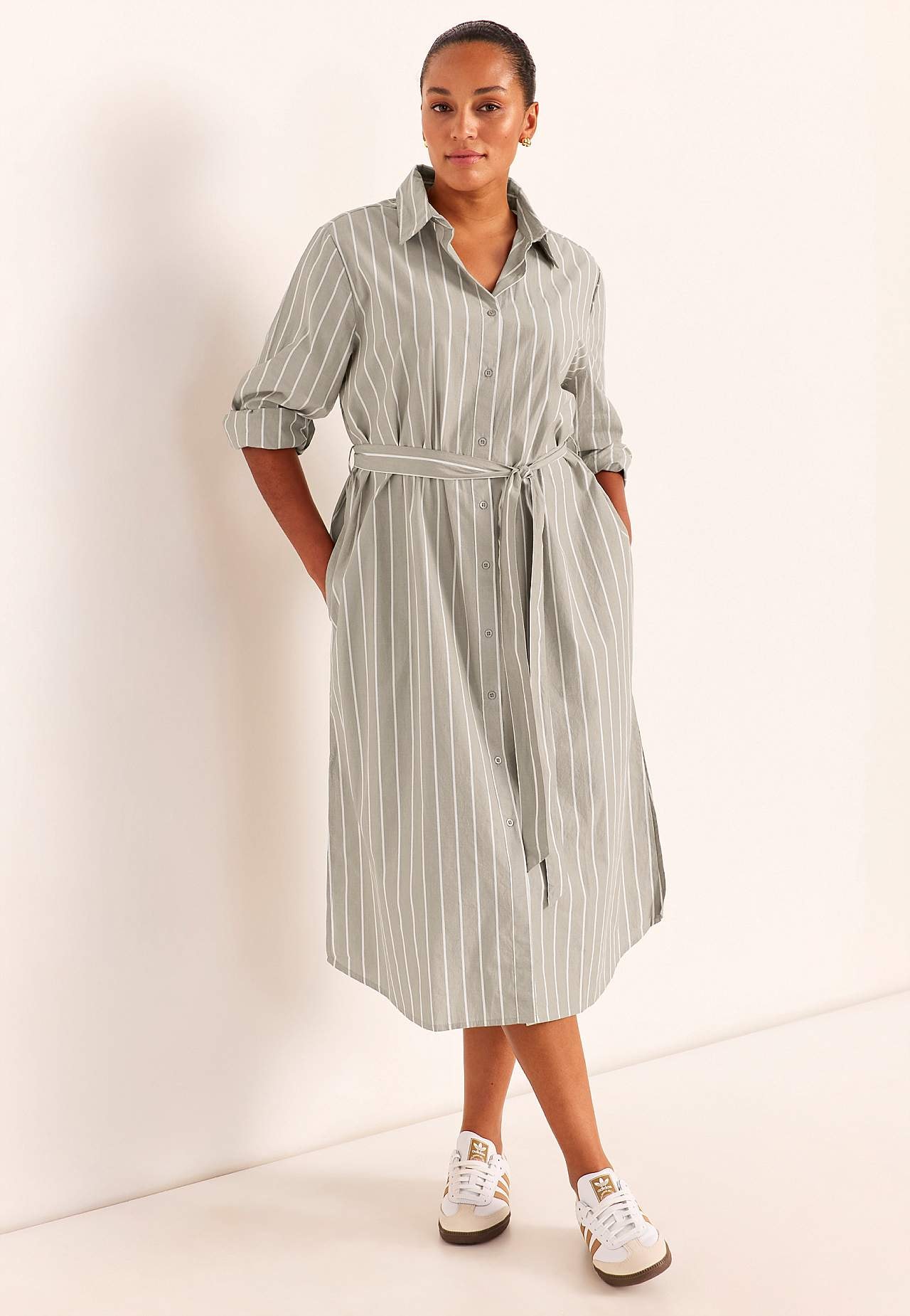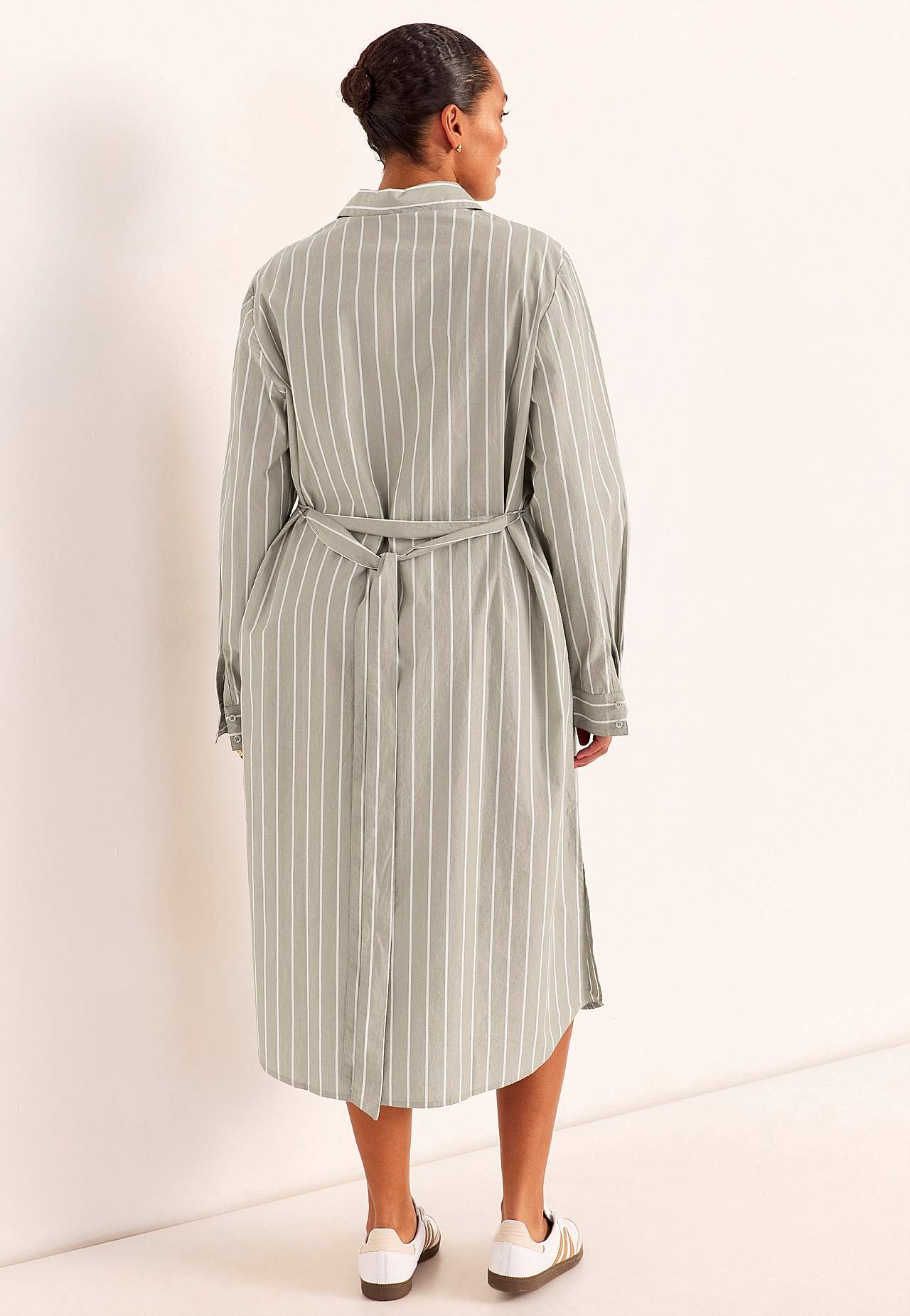 Kreklkleita ar klasisku apkakli un noņemamu sienamu jostu. Mīksts audums, kas rada svaiguma sajūtu. Krāsotu pavedienu svītras. Brīvs un ikdienišķs piegriezums. Klasiska apkakle. Modelis ar pogām. Garas piedurknes ar aproci un pogu. Noņemama sienama josta. Var valkāt ar jostu vai bez tās. Kabatas sānu vīlēs. Noapaļota apakšm... Lasīt vairāk