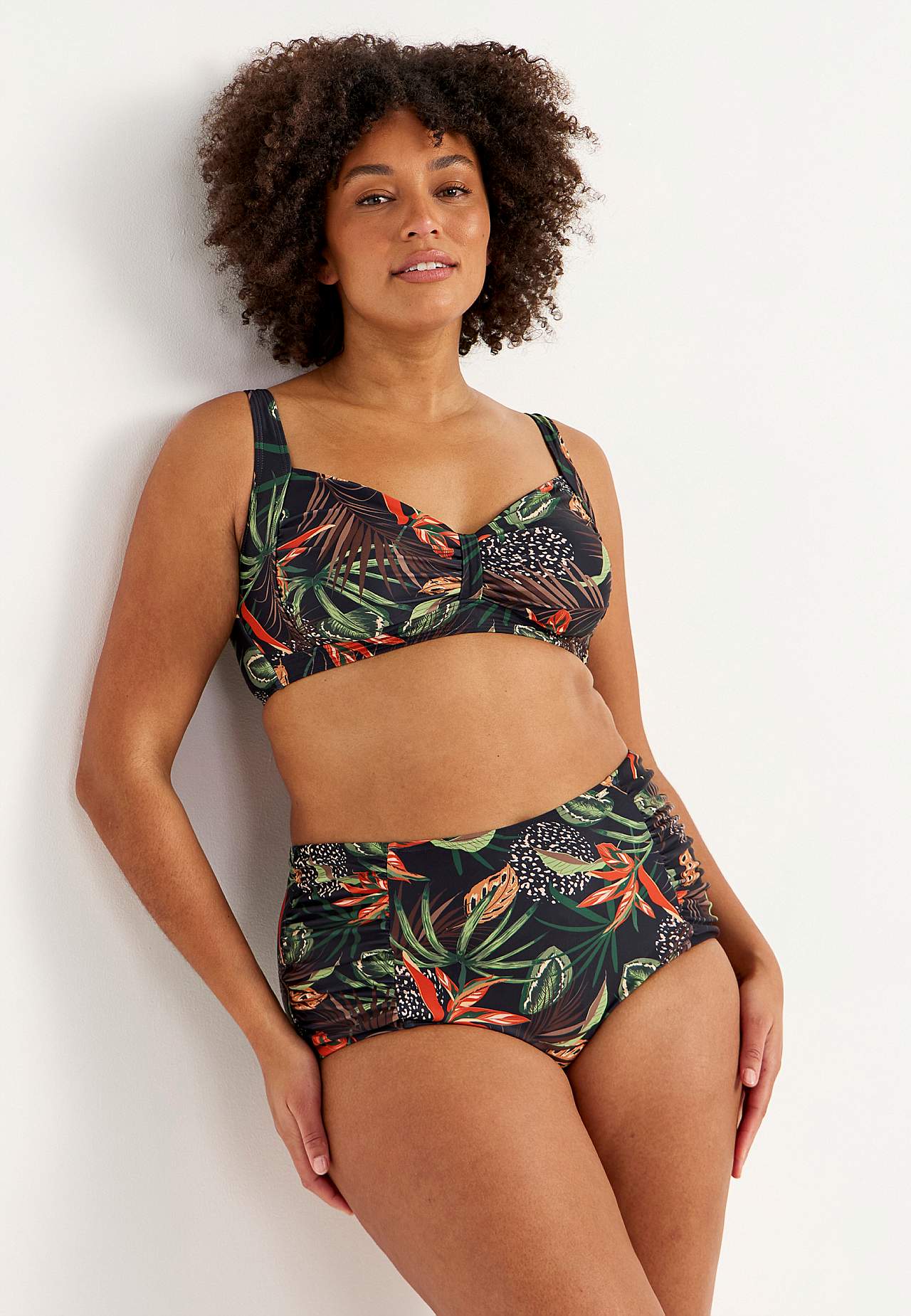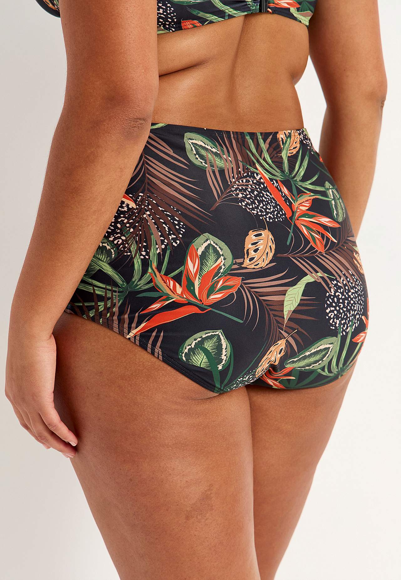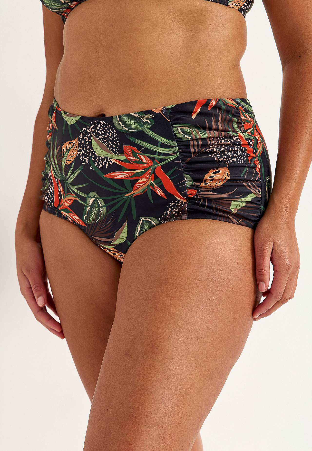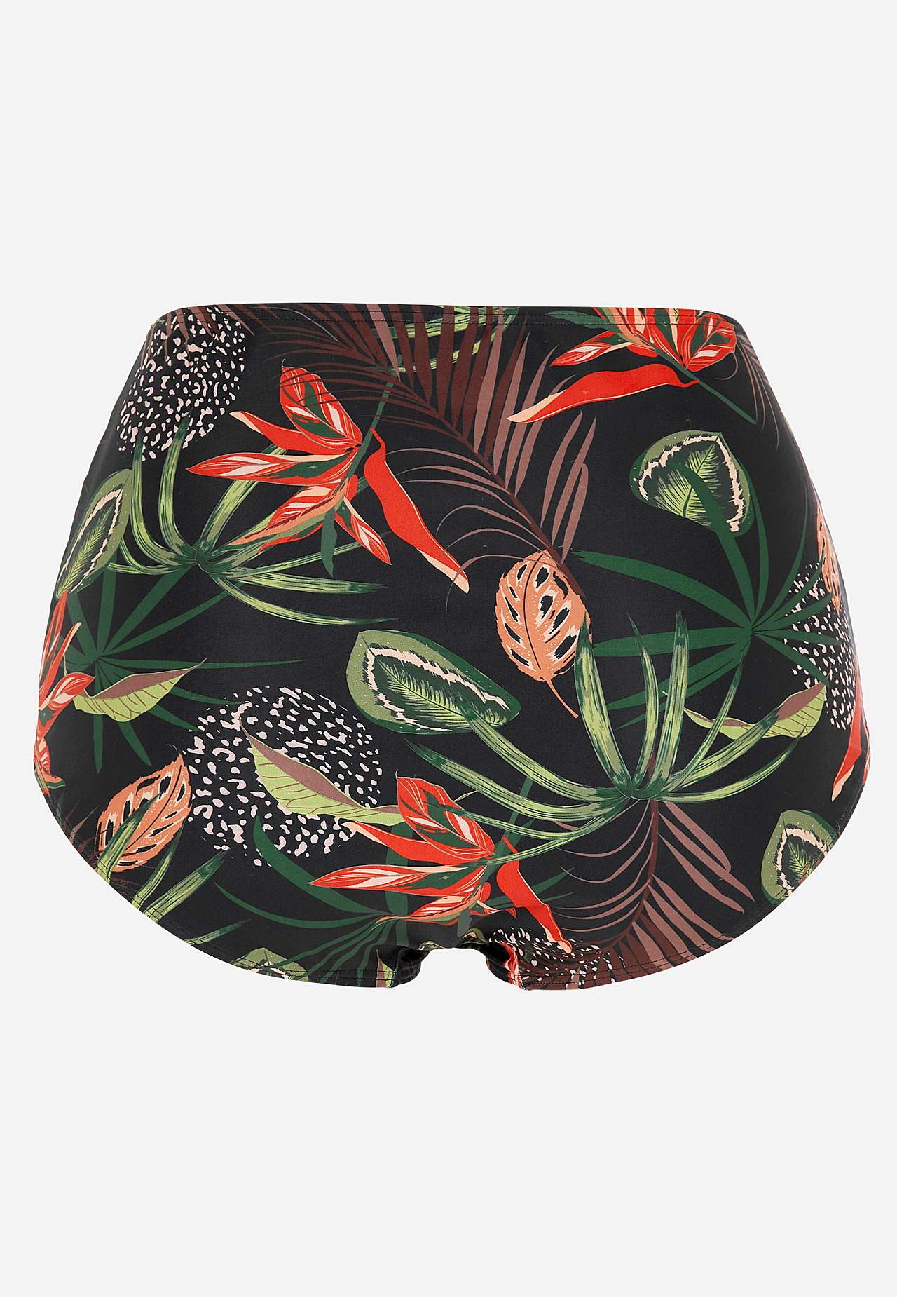 Bikini biksītes no pārstrādāta poliestera. Augsta jostasvieta. Skaists raksts gan priekšpusē, gan mugurpusē. Dekoratīvs krokojums sānos. Pilnībā oderēta iekšpuse.