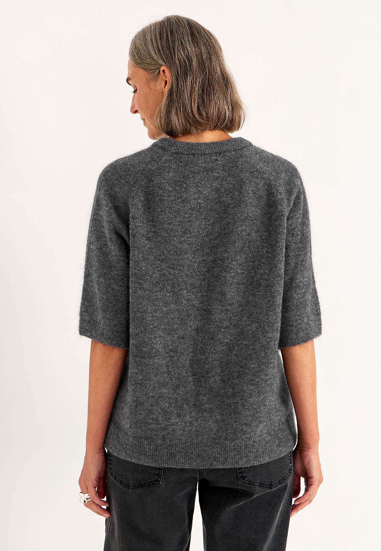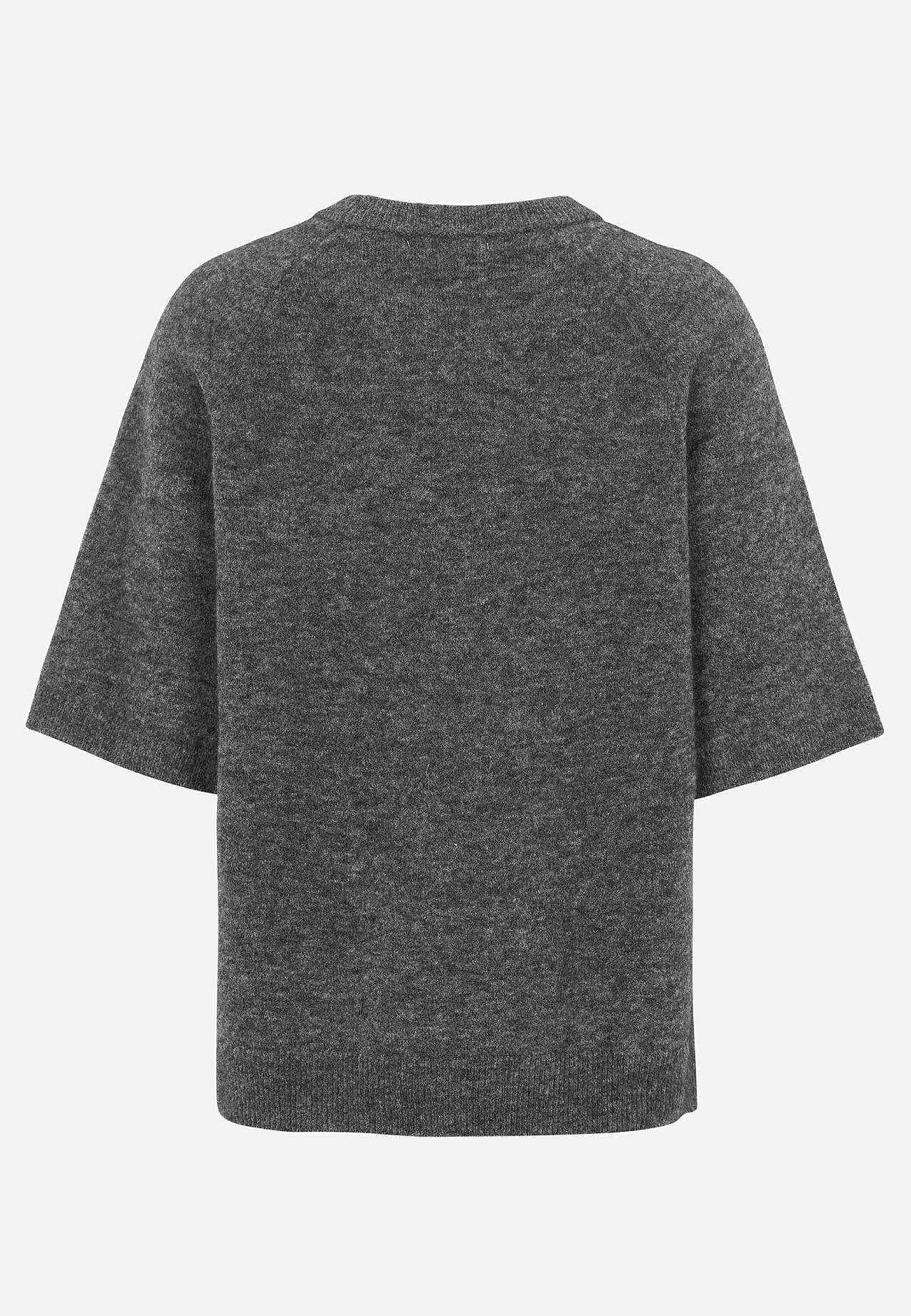 Grezns adīts tops ar īsām piedurknēm. Ādai patīkams mīksts vilnas maisījums. Nav ass. Silts, omulību raisošs, pūkains materiāls. Oversize piegriezums. Apaļš kakla izgriezums ar valnīša raksta apmali. Rokriņķi formēti adīšanas procesā, nodrošinot kvalitatīvu piegriezumu. Īsas, platas un taisnas reglāna piedurknes ar valnīti ... Lasīt vairāk