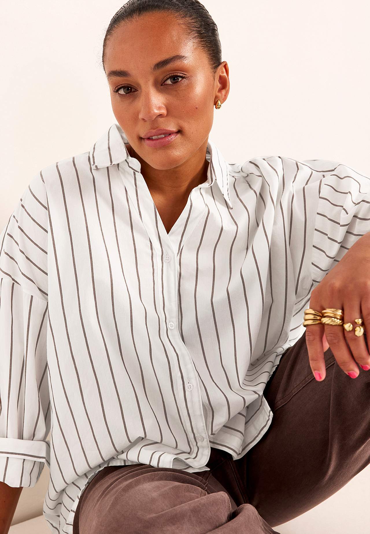Pagarš krekls ar klasisku apkakli un elegantām svītrām. Mīksts audums, rada svaiguma sajūtu. Brīvs un ikdienišķs piegriezums. Klasiska apkakle un elegants V veida kakla izgriezums. Pazemināta plecu līnija. Modelis ar pogām. Atdaļa mugurpusē. Garas piedurknes ar aproci un pogu. Noapaļota apakšmala, nedaudz garāka mugurpusē. ... Lasīt vairāk