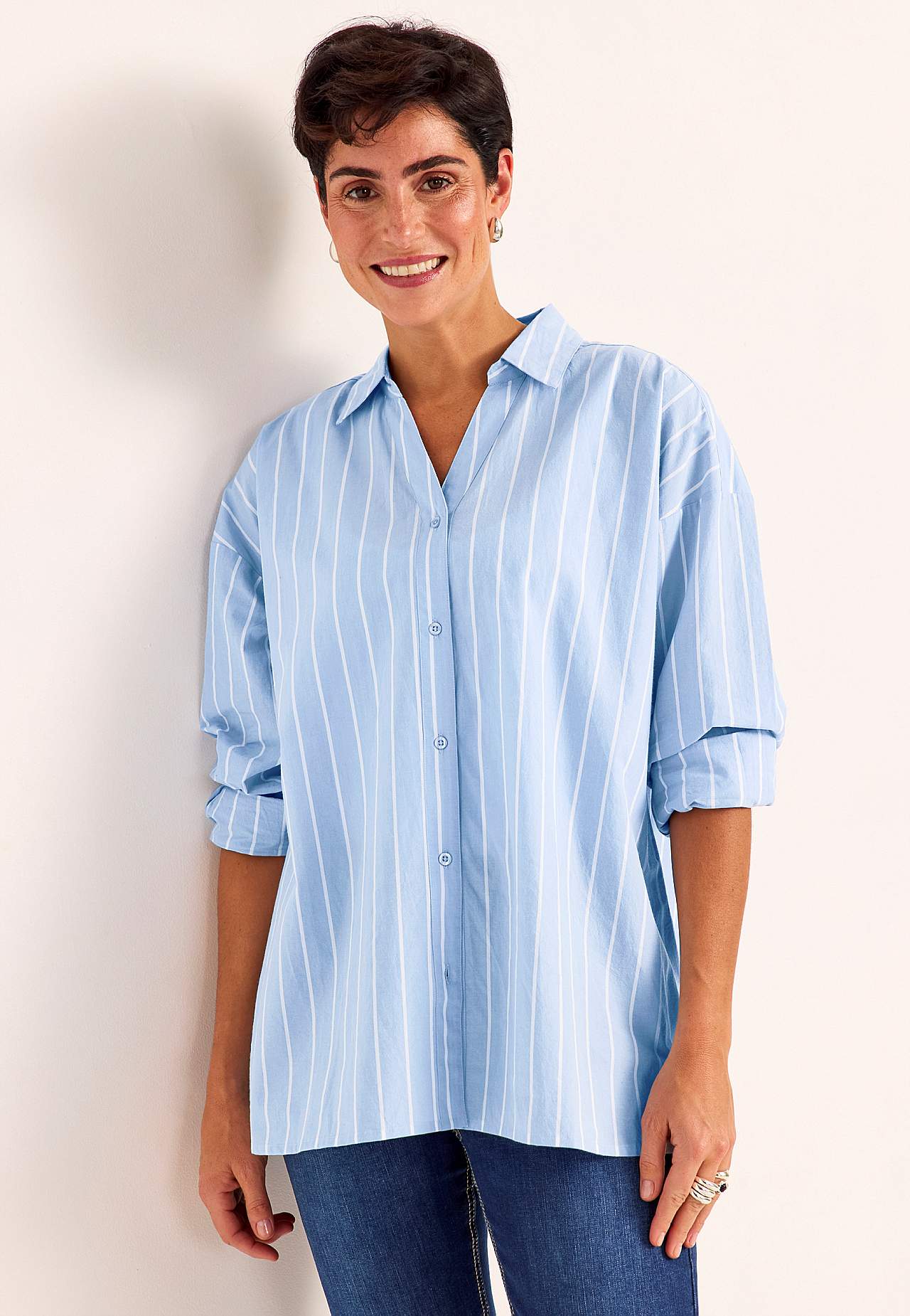 Pagarš krekls ar klasisku apkakli un elegantām svītrām. Mīksts audums, rada svaiguma sajūtu. Brīvs un ikdienišķs piegriezums. Klasiska apkakle un elegants V veida kakla izgriezums. Pazemināta plecu līnija. Modelis ar pogām. Atdaļa mugurpusē. Garas piedurknes ar aproci un pogu. Noapaļota apakšmala, nedaudz garāka mugurpusē. ... Lasīt vairāk