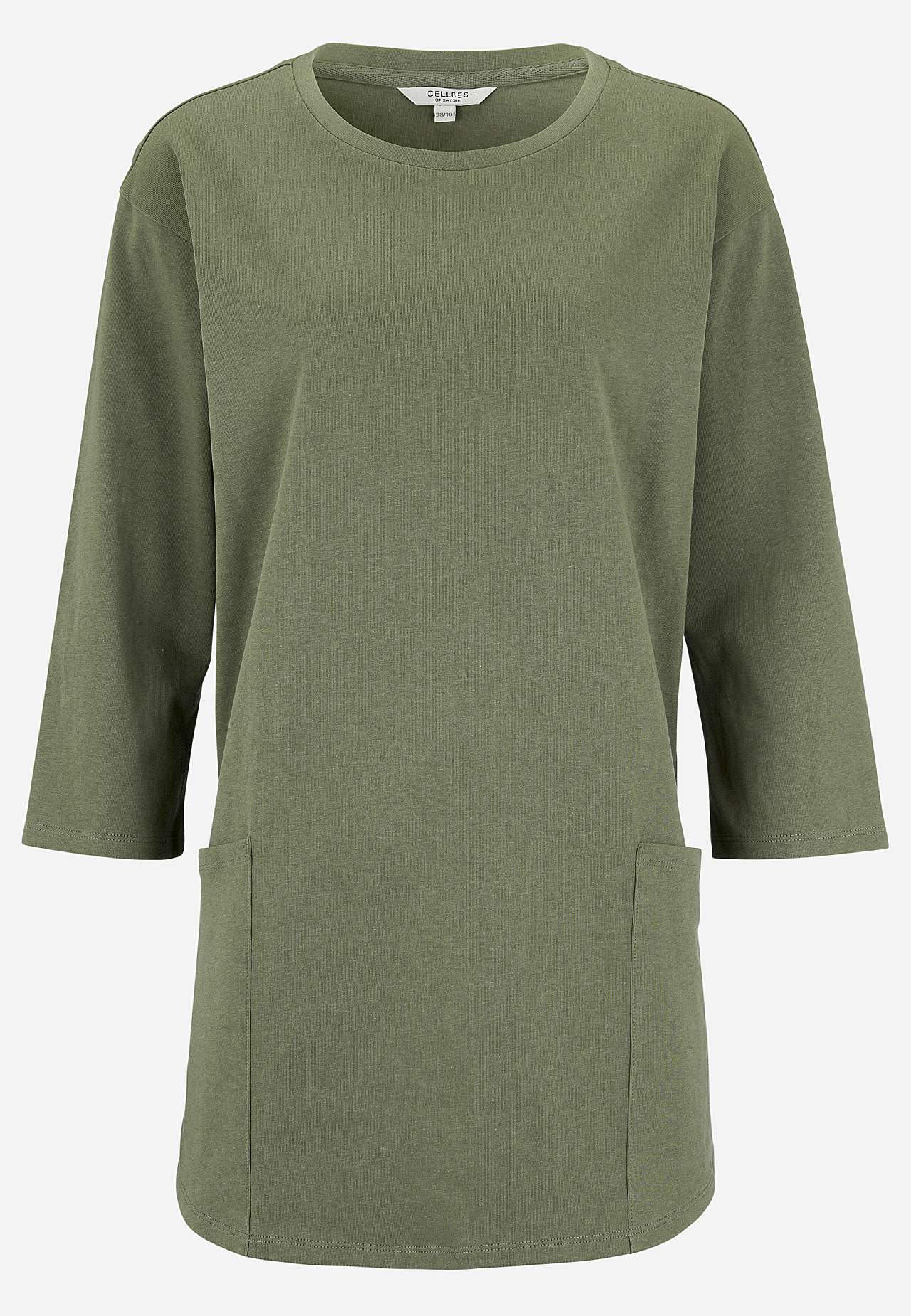 Organiskās kokvilnas trikotāžas tunika ar kabatām