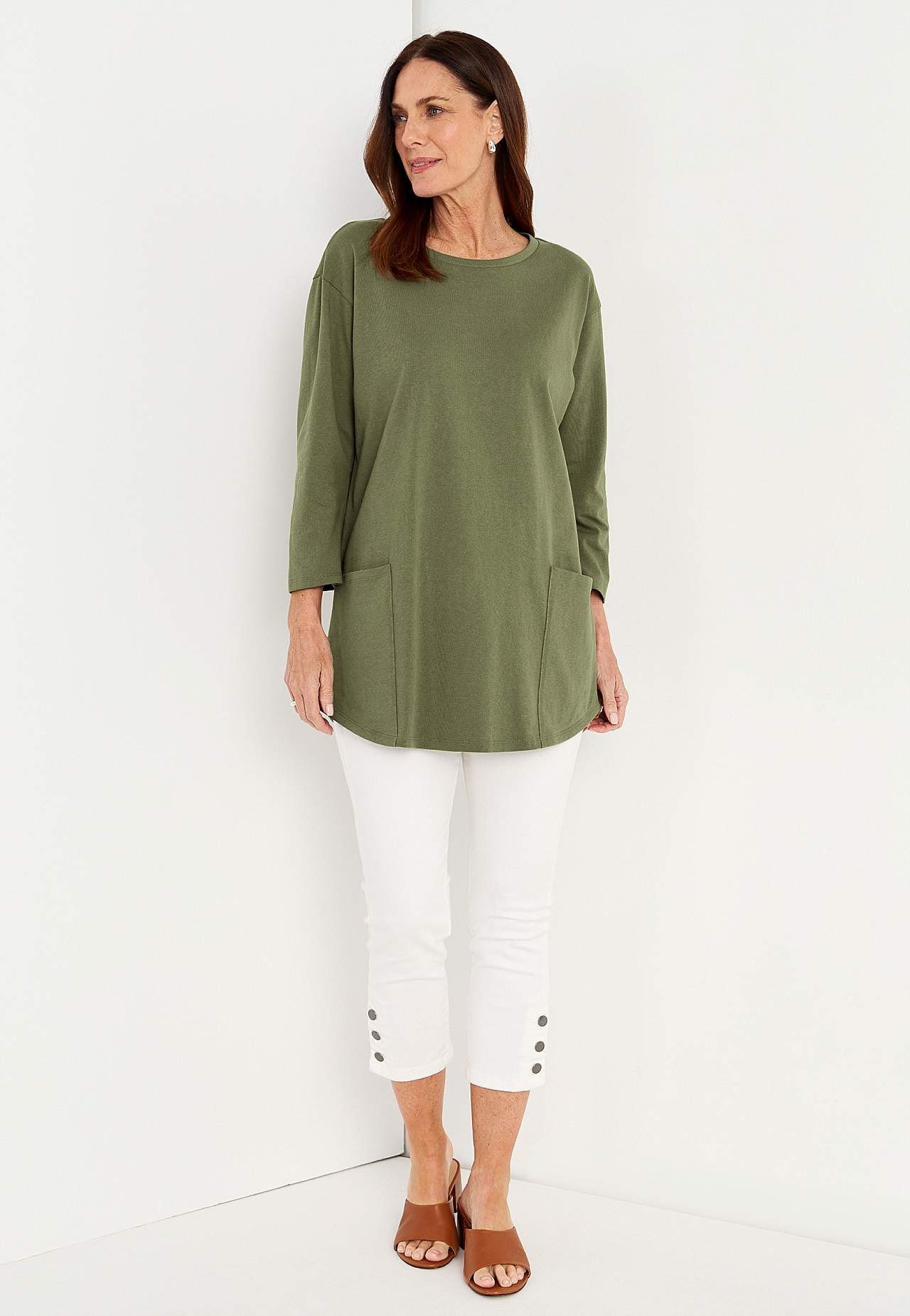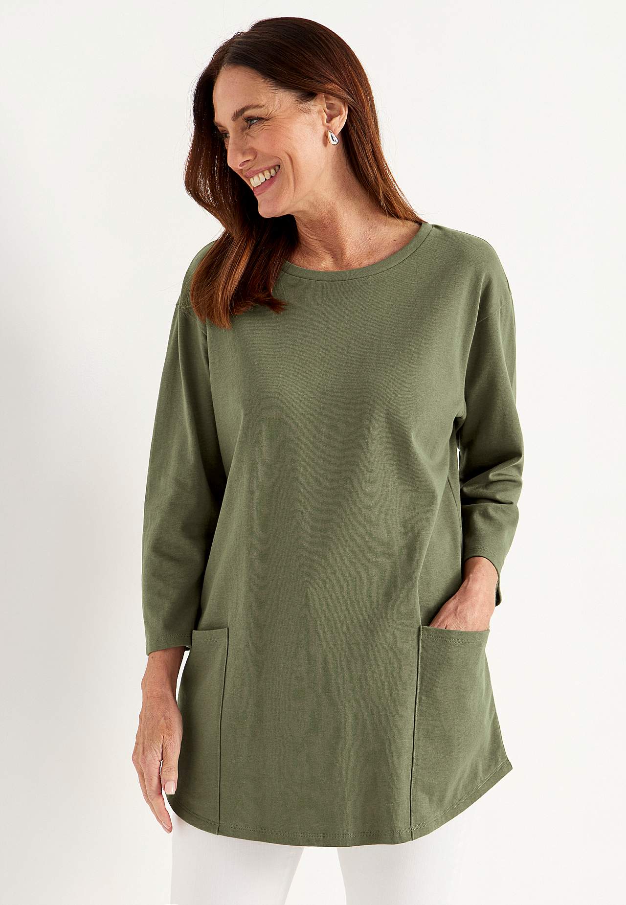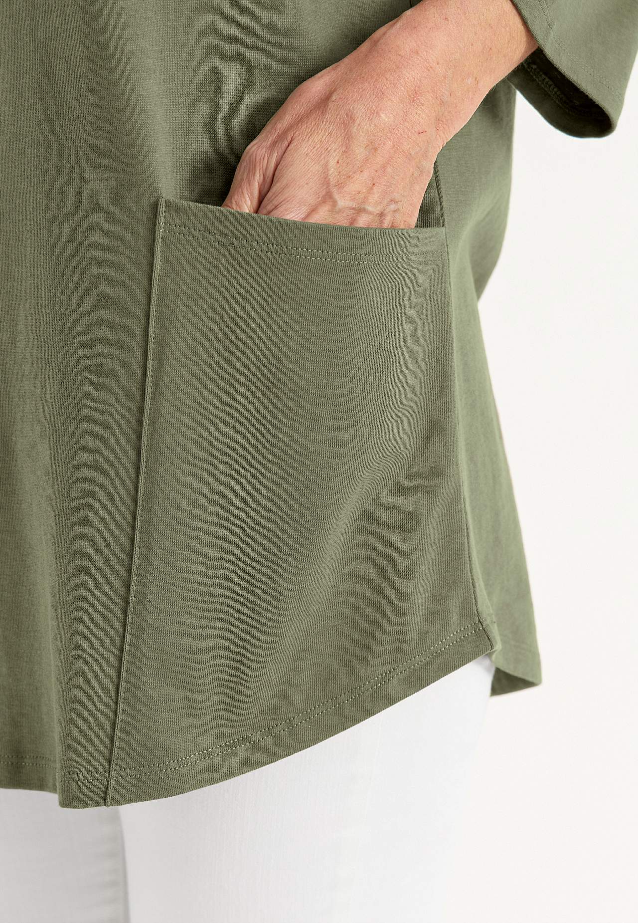 Organiskās kokvilnas trikotāžas tunika ar kabatām