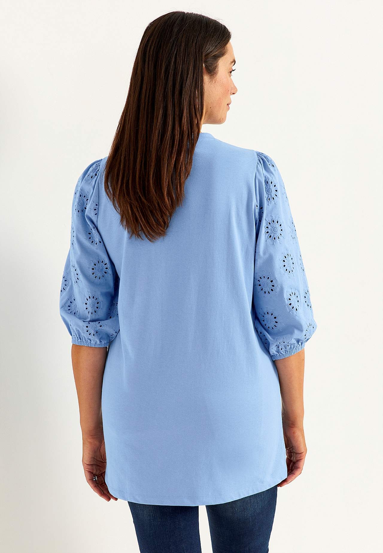 Trikotāžas tunika ar izšūtām piedurknēm