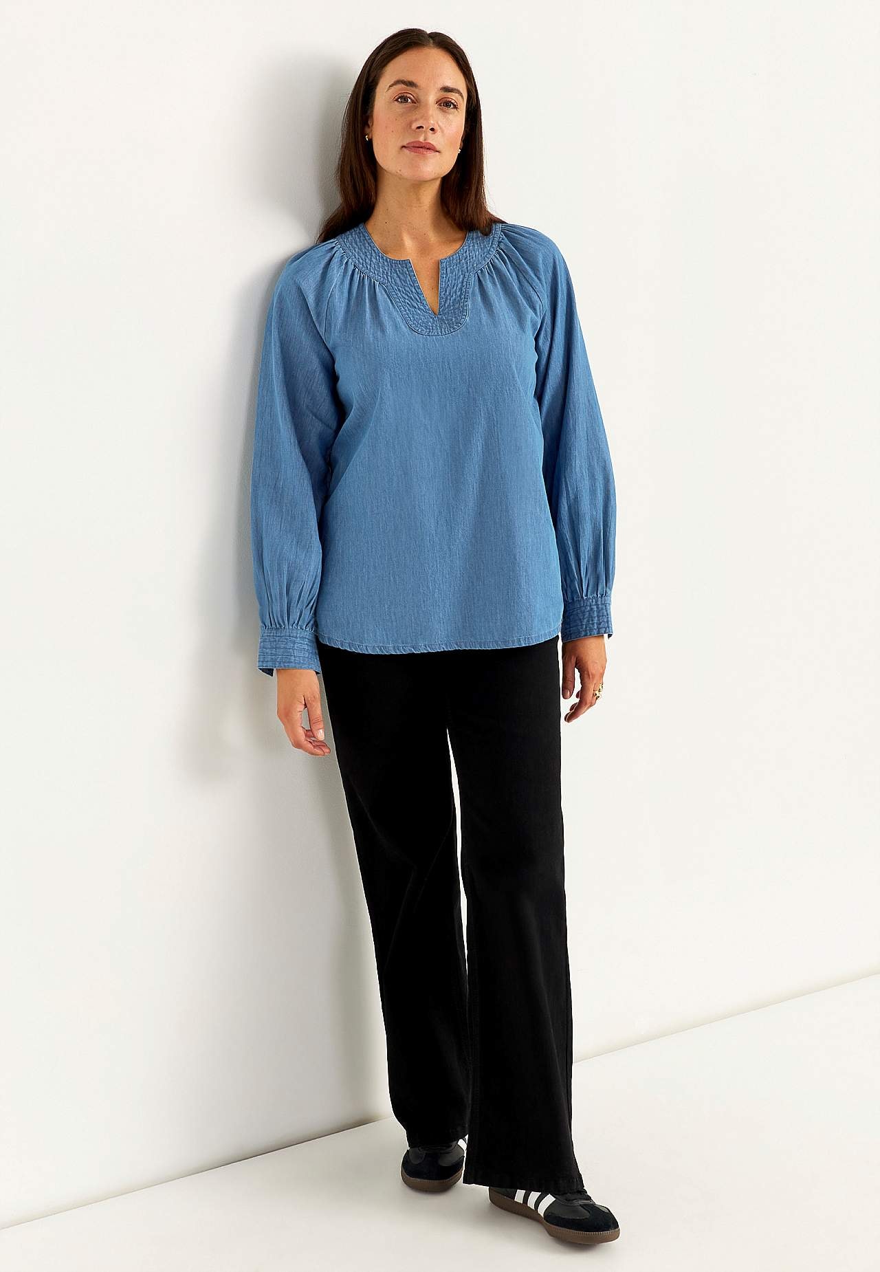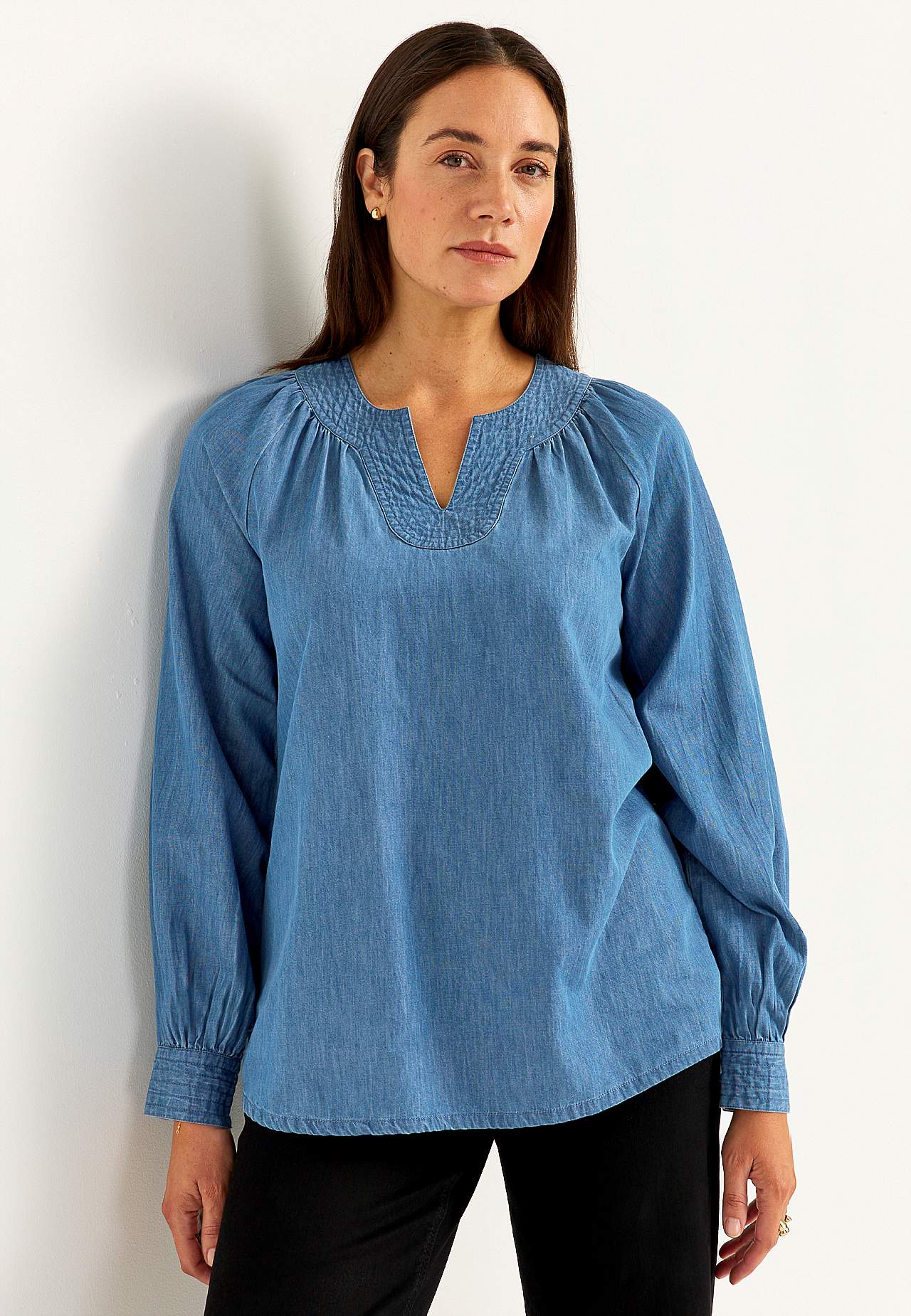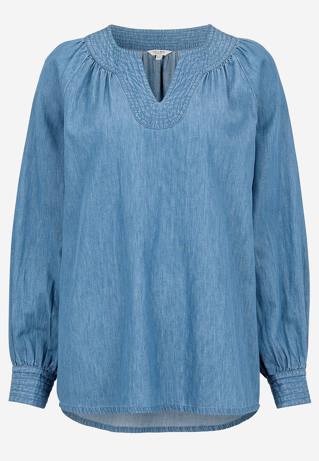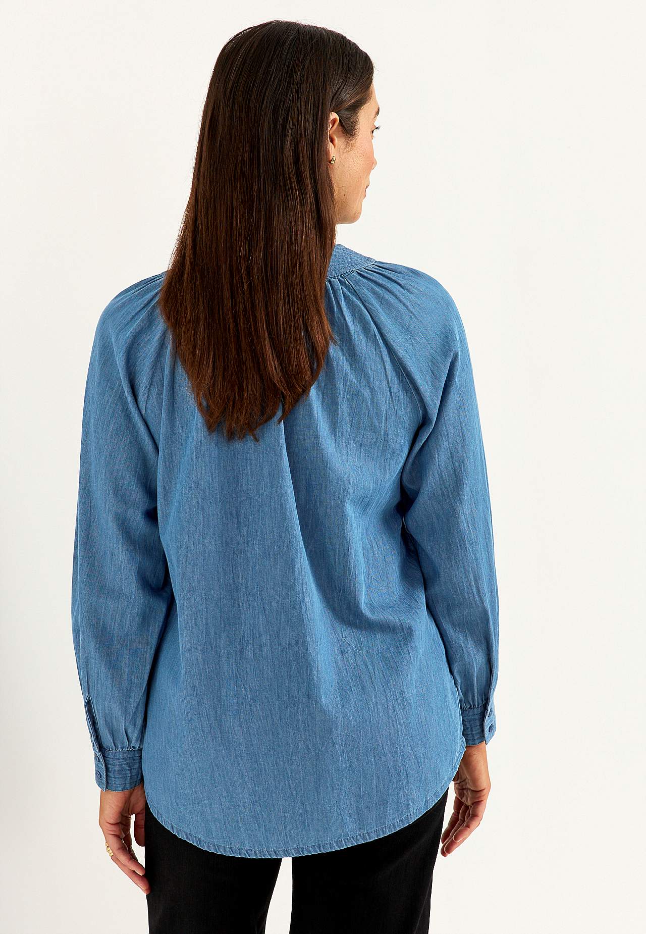 Viegla un brīnišķīgi mīksta džinsa auduma tunika. Dabisks kritums un gaisīgums. Brīvs viegla A silueta piegriezums. Apaļš kakla izgriezums ar V veida atvērumu un dekoratīvām nošuvēm visapkārt. Garas, platas reglāna piedurknes, aproces ar dekoratīvām nošuvēm un divām pogām. Noapaļota apakšmala, nedaudz garāka mugurpusē. Garu... Lasīt vairāk