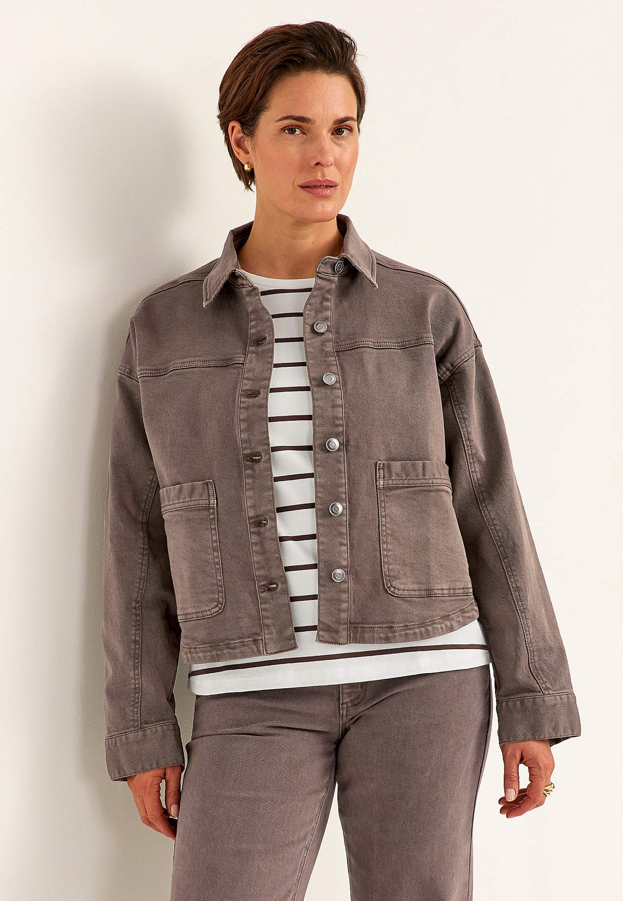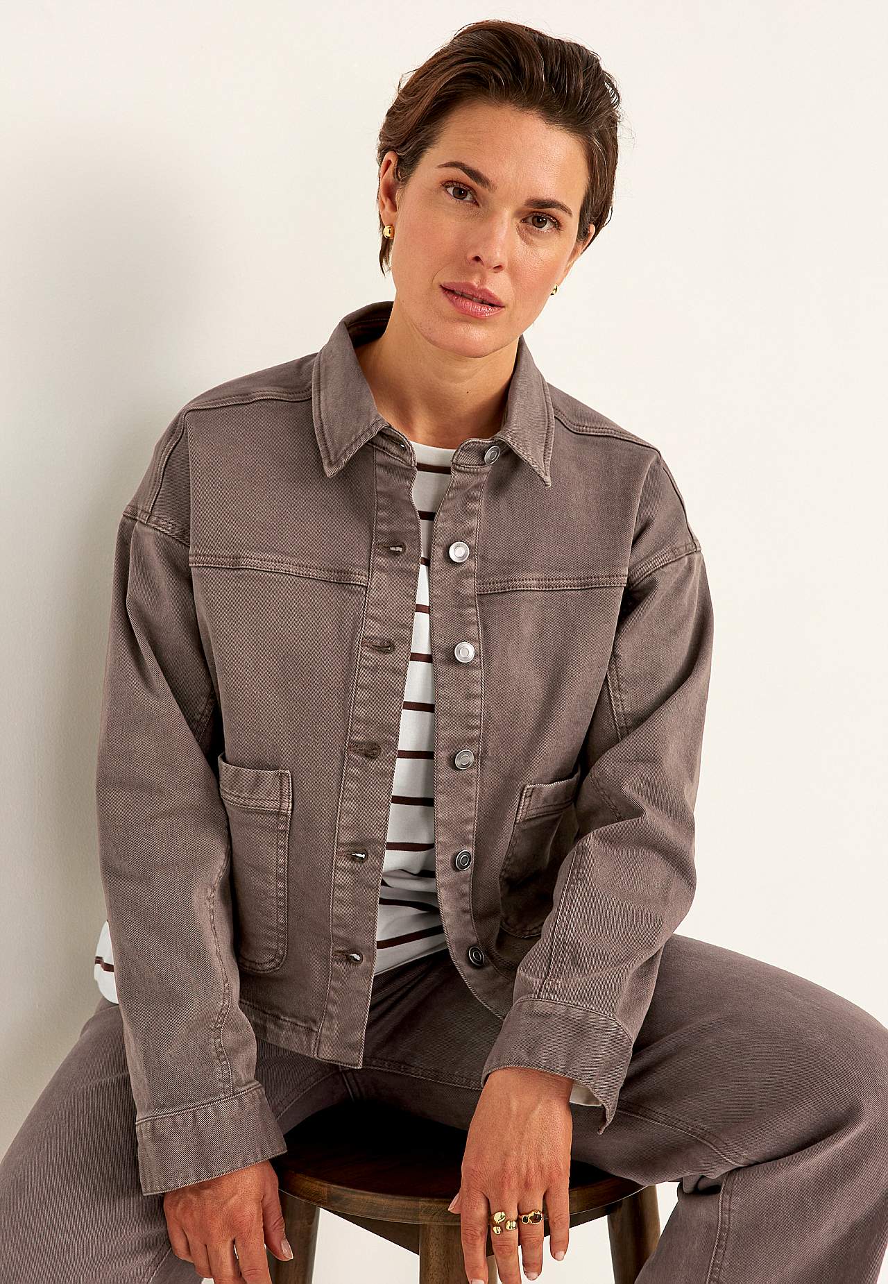 Mīksta, pabieza kokvilnas tvilla auduma jaka, kas krāsota jau sašūta. Stilīgs nomazgājuma efekts ar dabiskām krāsu pārejām. Paplats standarta piegriezums. Pogājams modelis ar klasisku apkakli. Nedaudz pazemināta plecu līnija. Atdaļa priekšpusē un mugurpusē. Garas piedurknes ar aproci un pogu. Priekšpusē lielas uzšūtas kabat... Lasīt vairāk
