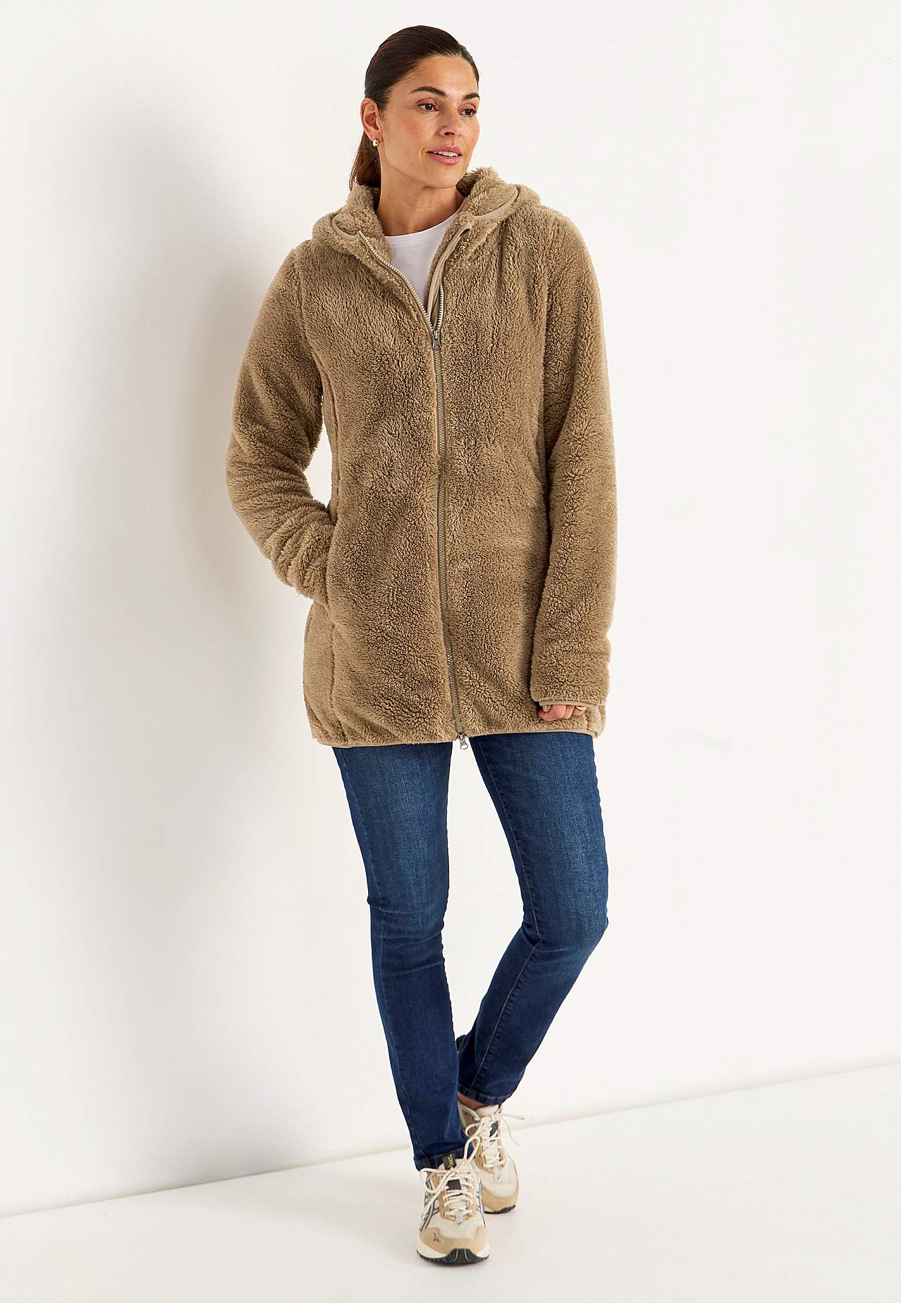 Gara, supermīksta flīsa jaka. Fiksēta kapuce ar elastīgu, pieskaņotu apmalīti. Priekšpusē mīksti oderētas kabatas ar rāvējslēdzēja aizdari. Garas piedurknes ar elastīgu apmali piedurkņu galos. Praktisks divvirzienu rāvējslēdzējs. Taisna apakšmala ar elastīgu apmali. Garums mugurpusē atkarībā no izmēra: apm. 81-89 cm.