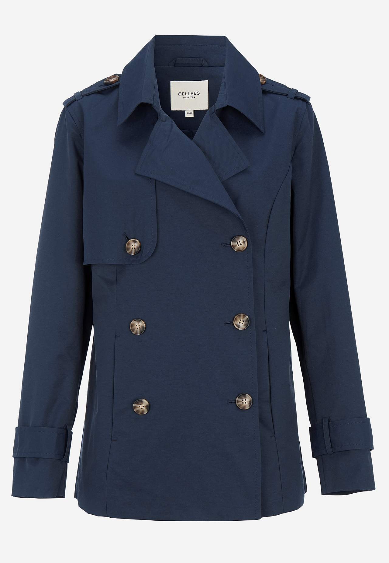 Īss trencis ar divām pogu rindām