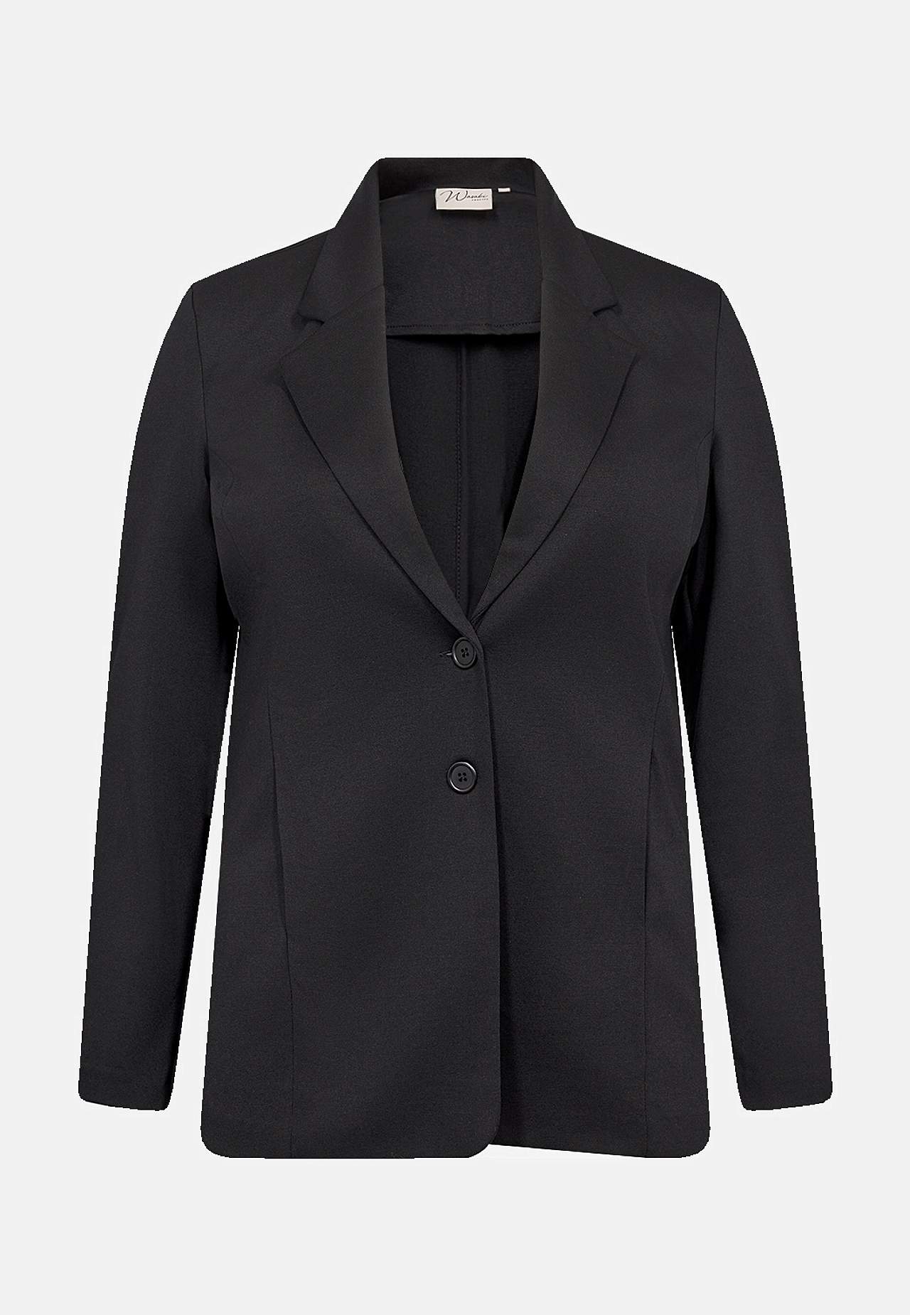 Žakete no elastīgas, formu saglabājošas trikotāžas. Pieguļošs piegriezums. Priekšpusē un mugurpusē šuves labākam izskatam un komfortam. Plāni plecu polsteri. Slēptas kabatas priekšpusē. Aizdare ar divām pogām. Garums no pleca 46./48. (M) izmēram apmēram 73 cm.