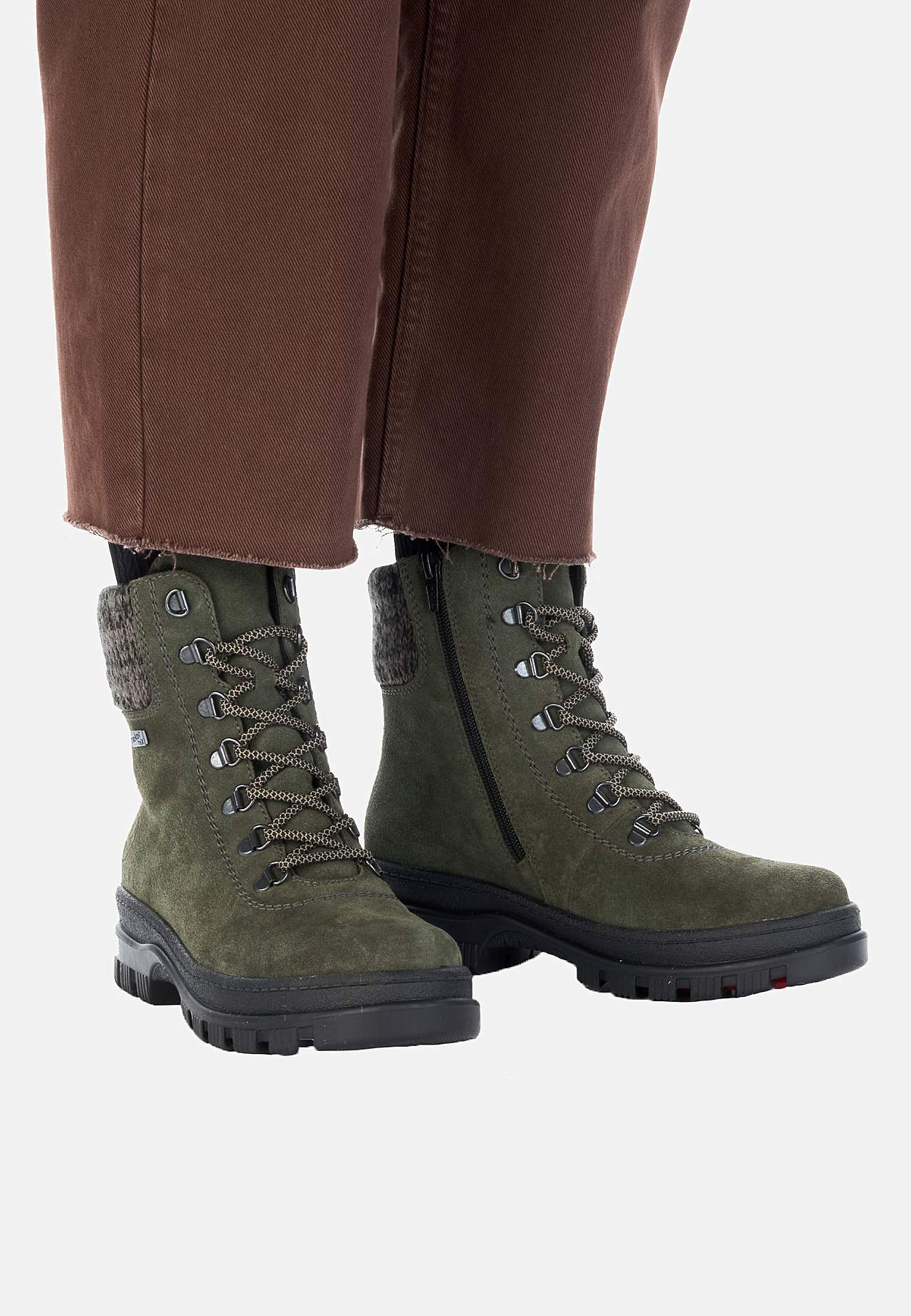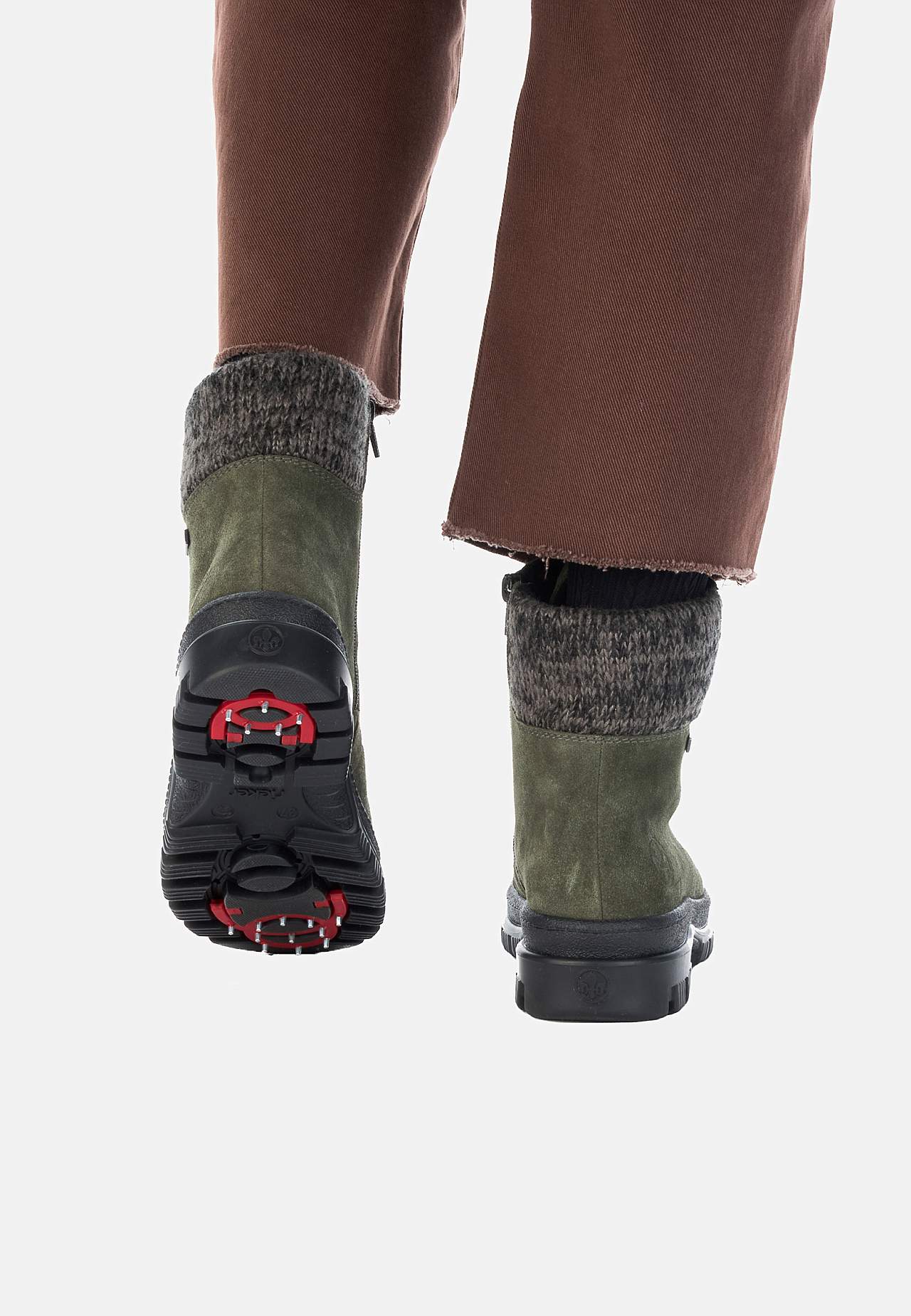 • Ūdens aizturoši zamšādas zābaki ar sildošu mīkstas mākslīgās kažokādas oderi.