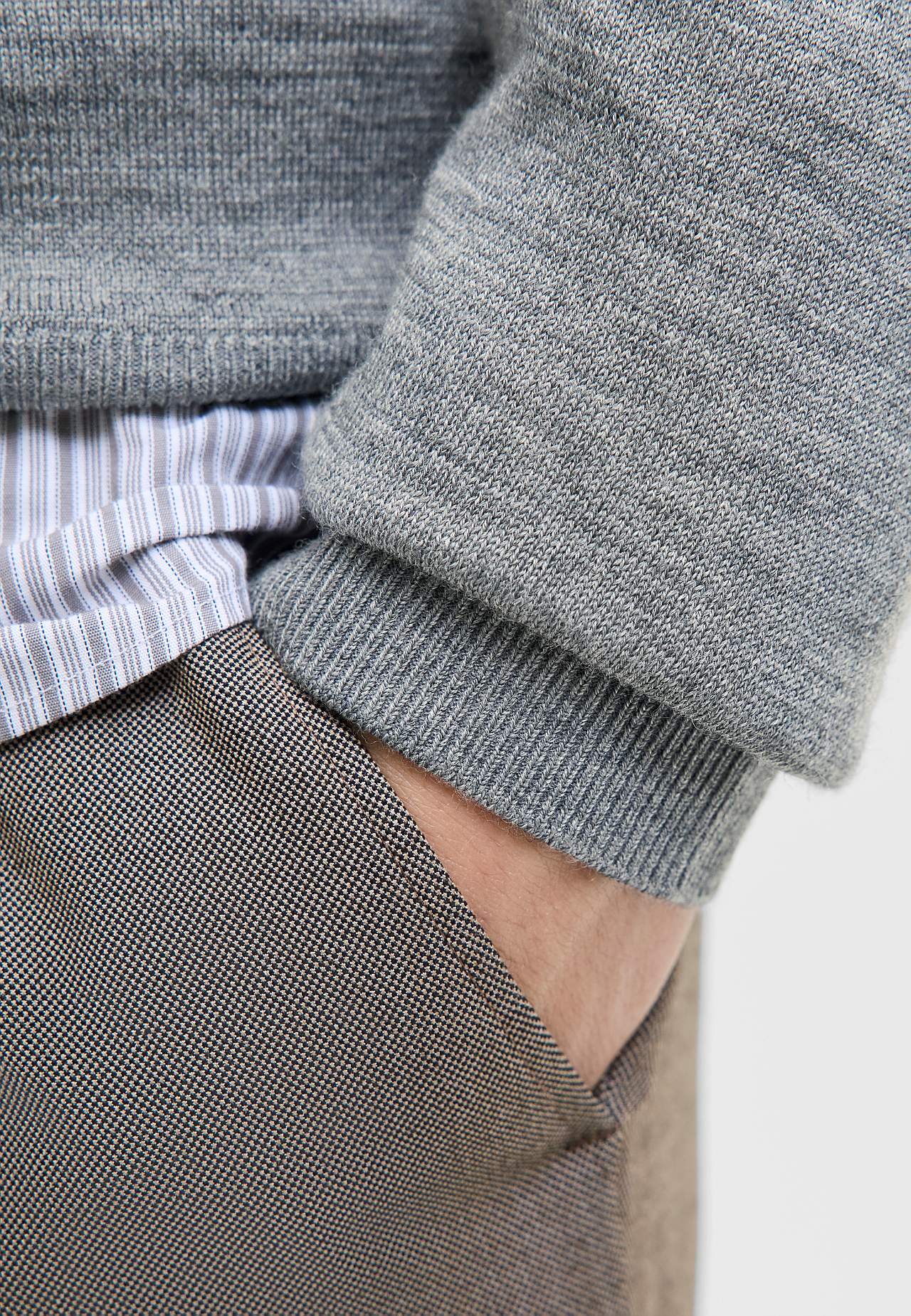 Smalka adījuma džemperis ar garām piedurknēm. Mīksts, jauks merino vilnas materiāls. Apaļš kakla izgriezums ar valnīša apmali. Ērti piedurkņu izgriezumi. Valnītis piedurkņu galā un apakšmalā. Garums no pleca M izmēram apmēram 69 cm.