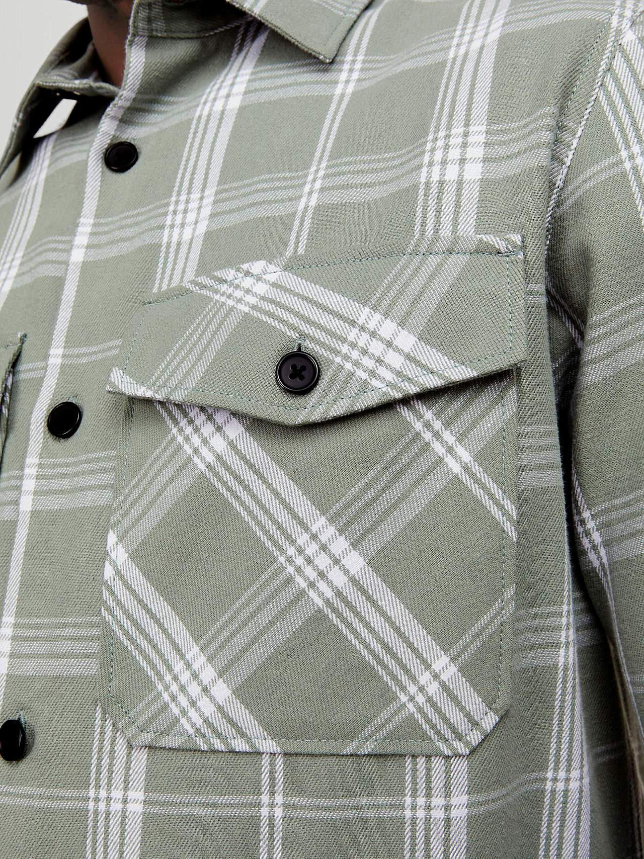 Krekls no mīksta, nedaudz smagnēja kokvilnas auduma. Raksts ar lielām rūtīm. Modelis ar dekoratīvu, krāsotu pogu aizdari. Garas piedurknes ar aproci un aizdares pogu. Atdaļa mugurpusē. Taisna apakšmala. Divas kabatas ar pārloku priekšpusē. Garums no pleca L izmēram apm. 74 cm