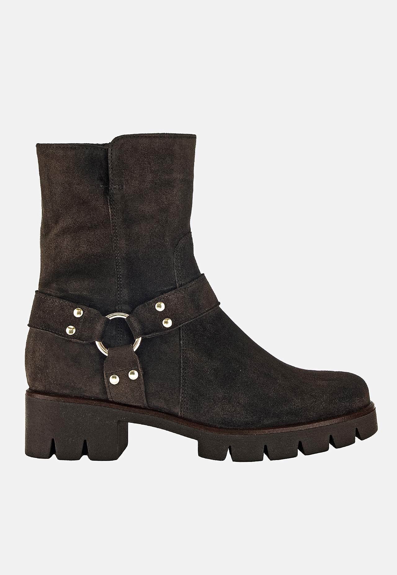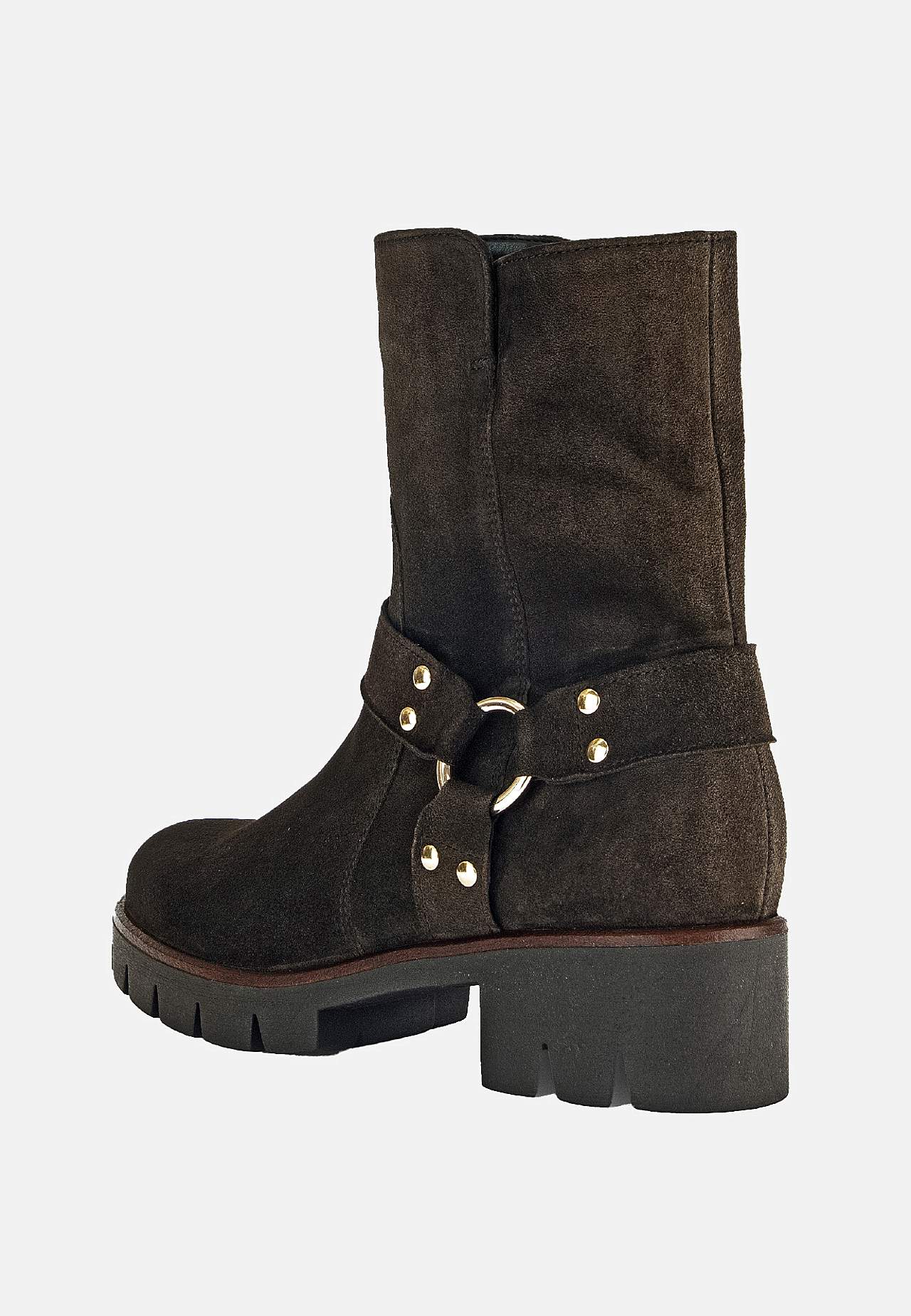 Kovboju stila ādas puszābaki. Melni ādas apavi ar metāla sprādzi. Brūni zamšādas apavi ar zelta krāsas sprādzi. Iekšpusē mīksta mikroflīsa odere. Rāvējslēdzējs pēdas iekšmalā. Nošuves vienādā tonī ar apaviem. Izņemama iekšzolīte. Gumijas zole ar labu saķeri. Virspuse no ādas. Iekšpuse no tekstila. Iekšzolīte no tekstila. Si... Lasīt vairāk