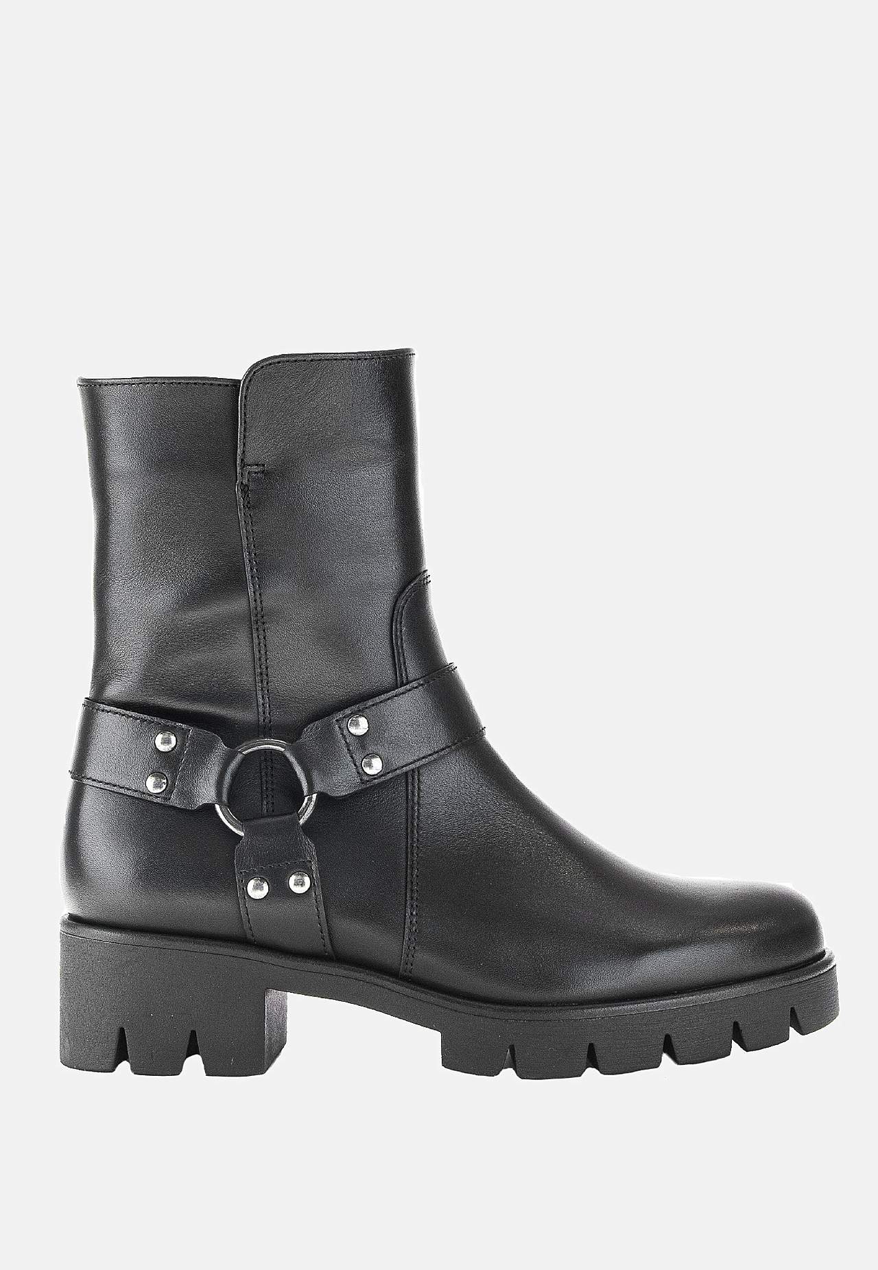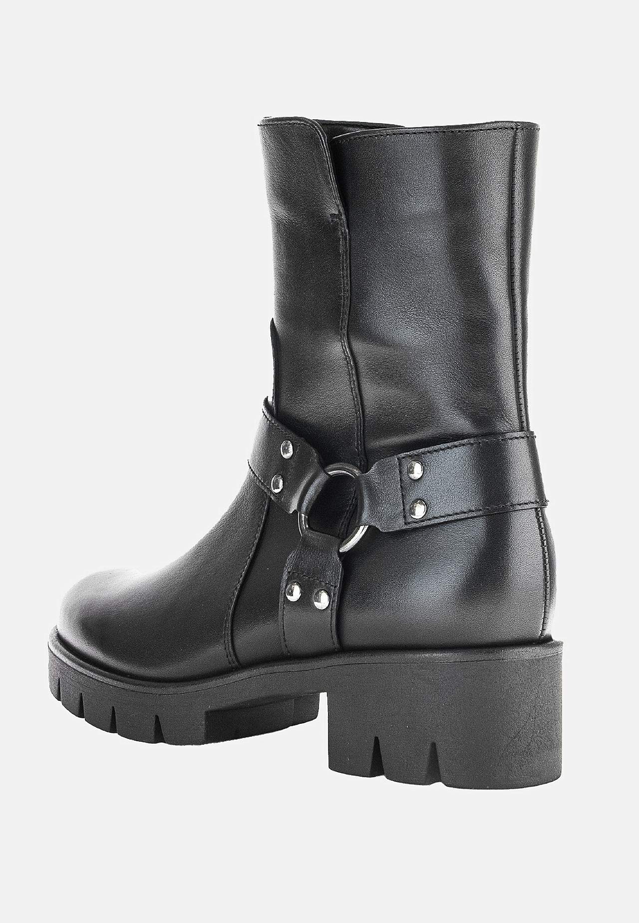 Kovboju stila ādas puszābaki. Melni ādas apavi ar metāla sprādzi. Brūni zamšādas apavi ar zelta krāsas sprādzi. Iekšpusē mīksta mikroflīsa odere. Rāvējslēdzējs pēdas iekšmalā. Nošuves vienādā tonī ar apaviem. Izņemama iekšzolīte. Gumijas zole ar labu saķeri. Virspuse no ādas. Iekšpuse no tekstila. Iekšzolīte no tekstila. Si... Lasīt vairāk